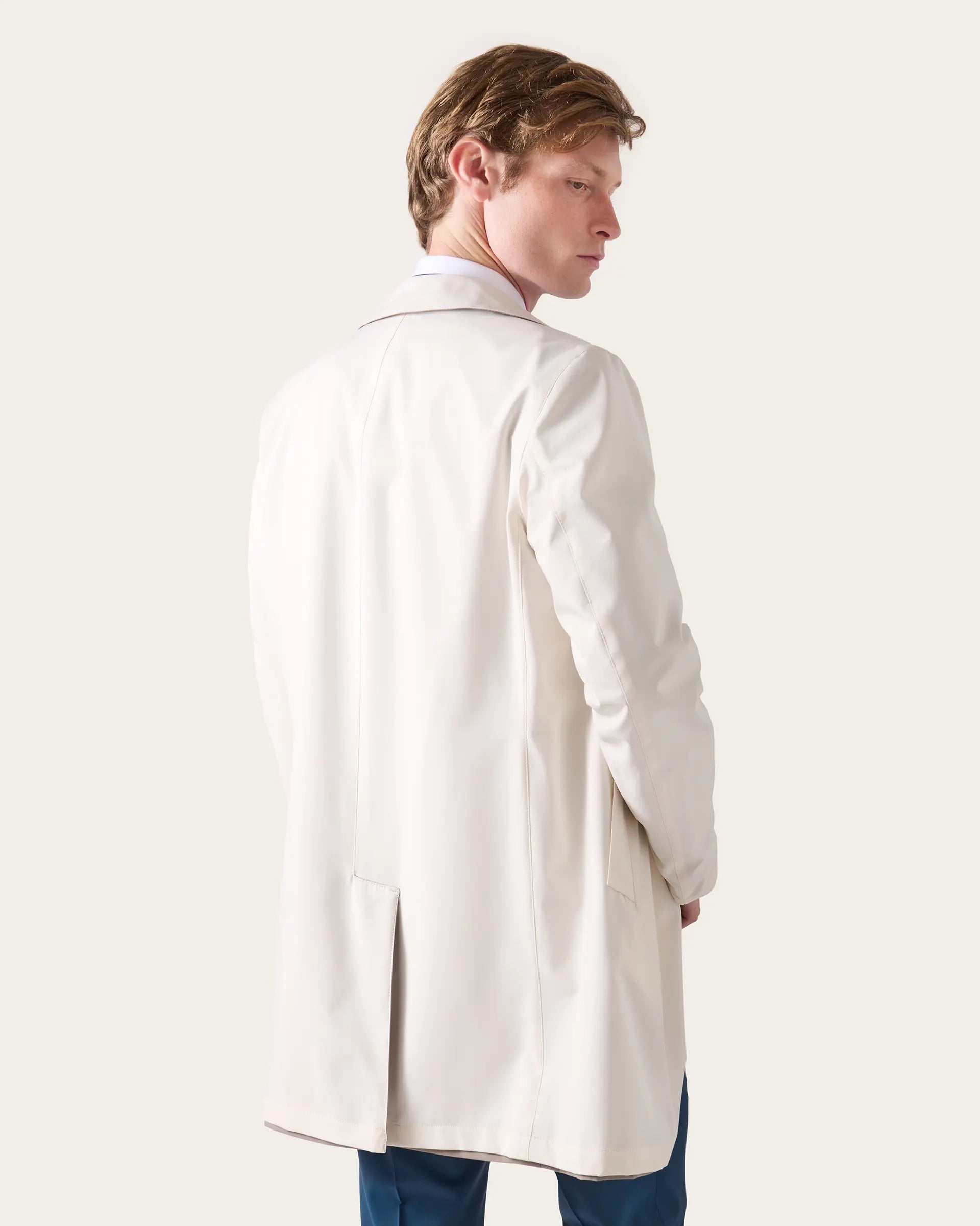 Rain coat reversibile beige / panna in tessuto tecnico Olmetex