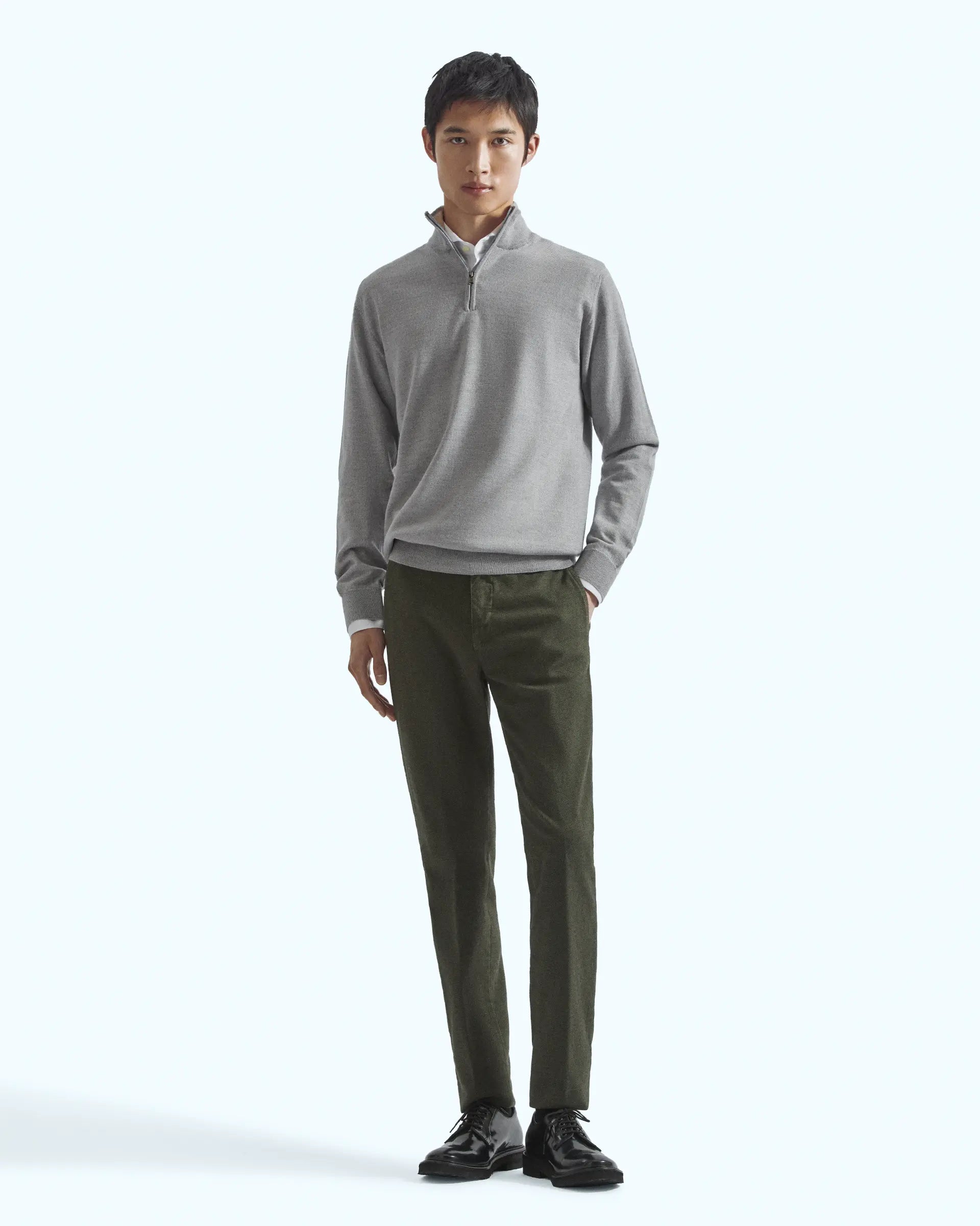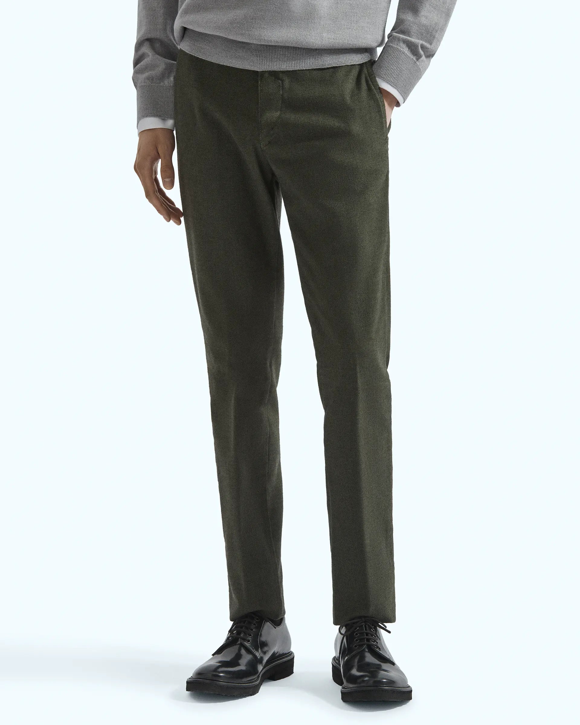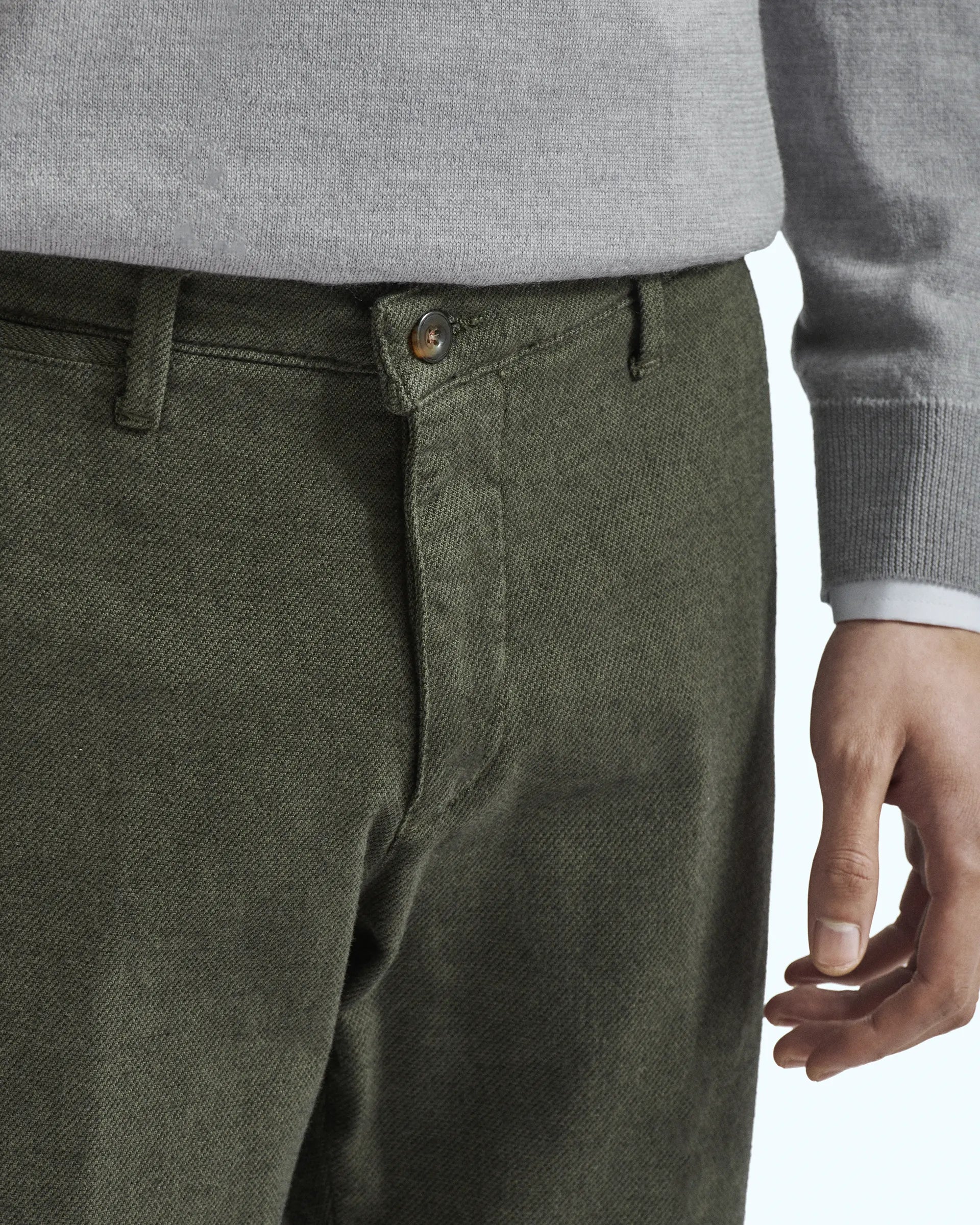 Chinos trousers made of high-weight stretch cotton and combined with a wool-effect texture. The weave and soft feel of the fabric amplify comfort and ensure warmth even on the coldest days while the regular fit guarantees a refined appearance making it perfect for all occasions.