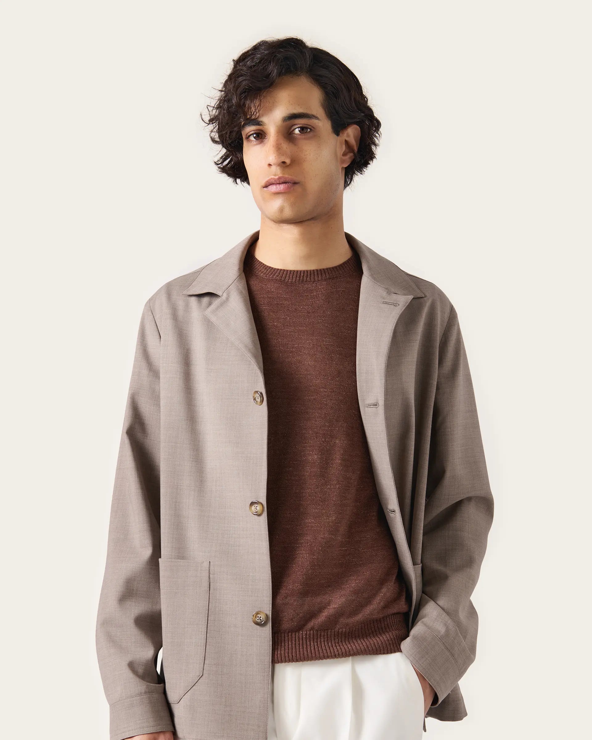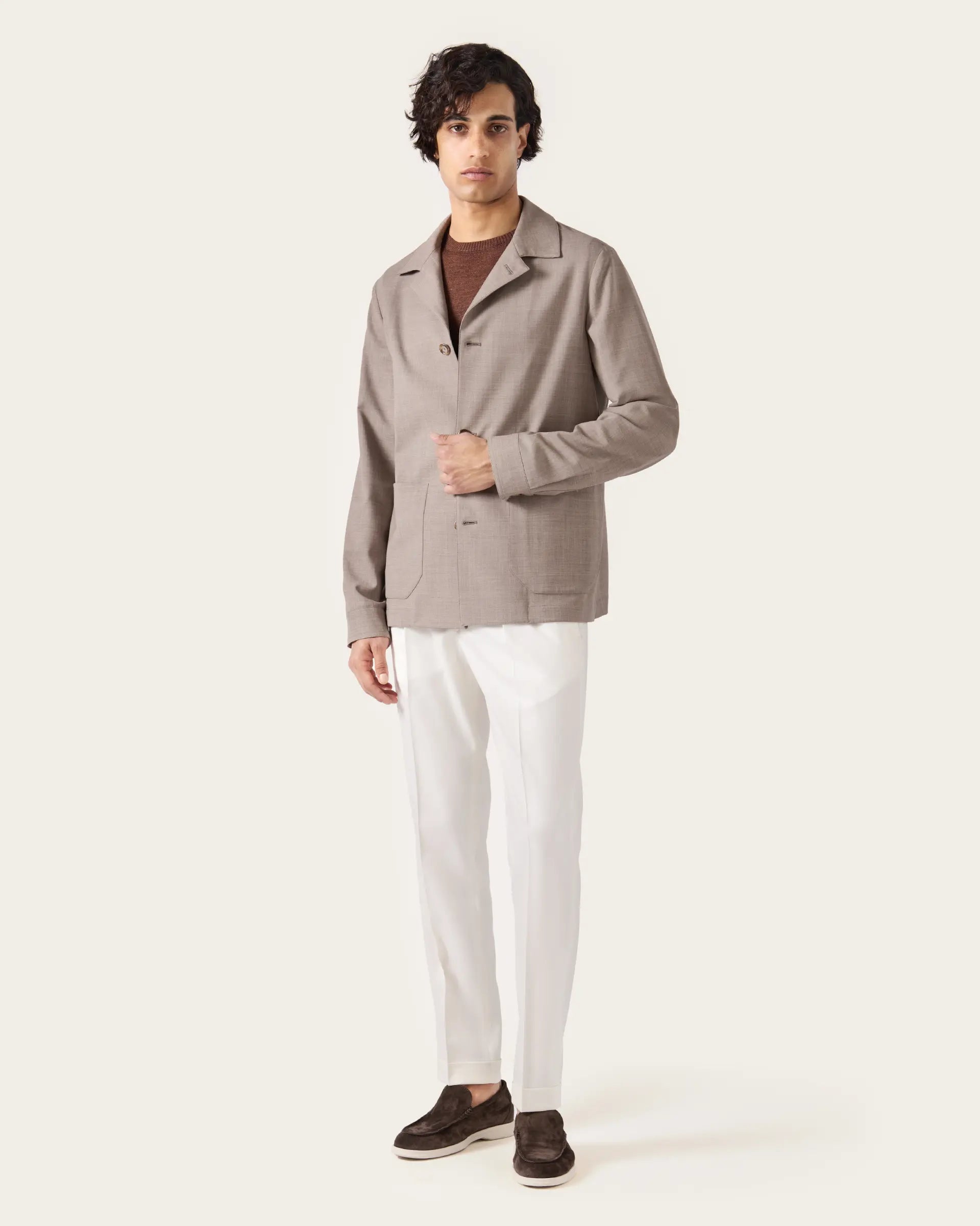 Beige comfortable fit wool shirt jacket from Lanificio Zignone