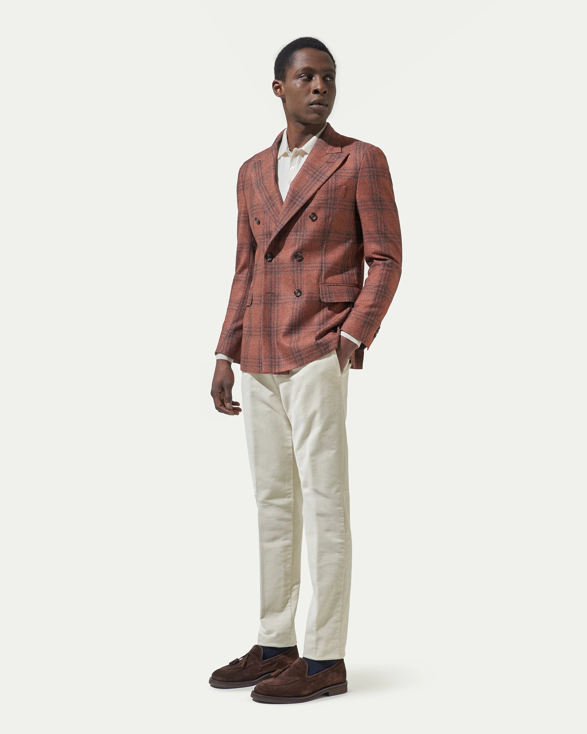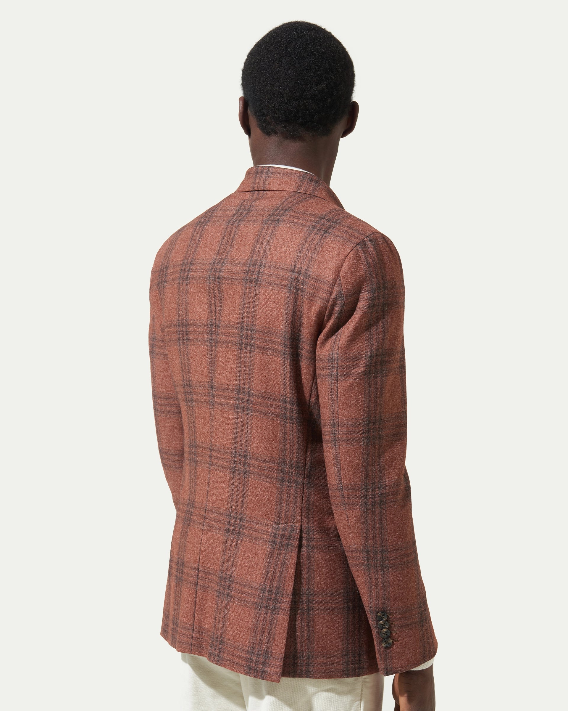 Giacca doppiopetto finestrato arancio in misto lana e cashmere tessuto Vitale Barberis & Canonico