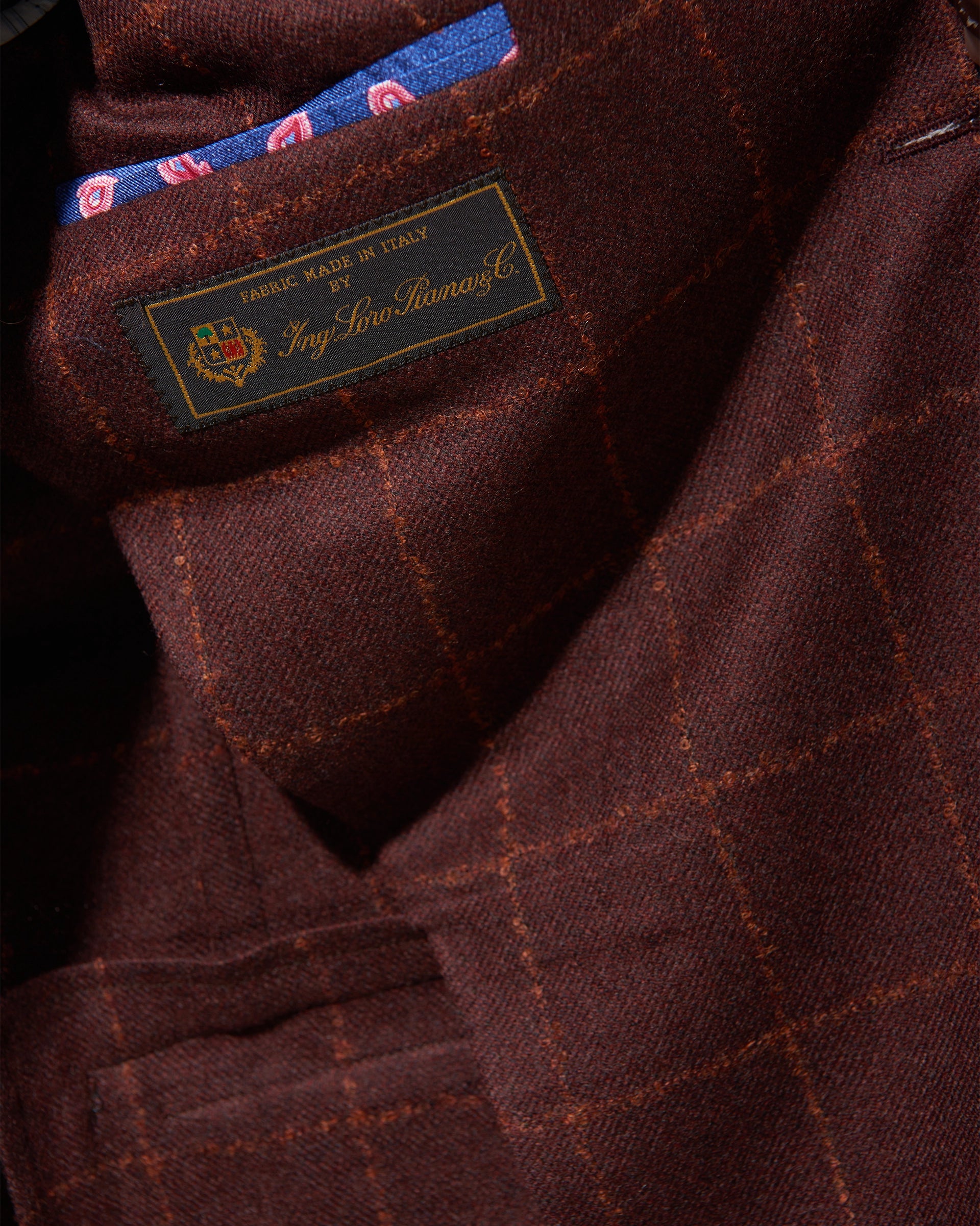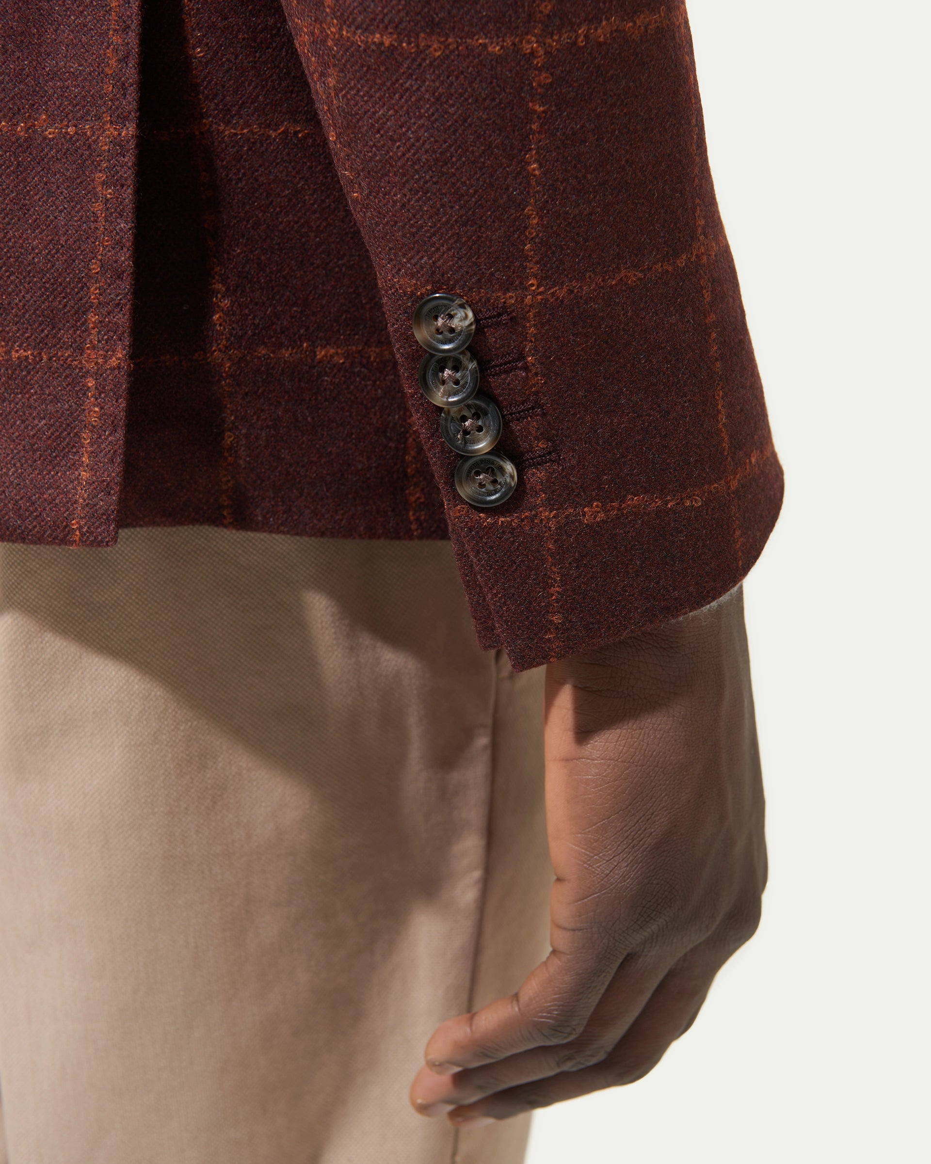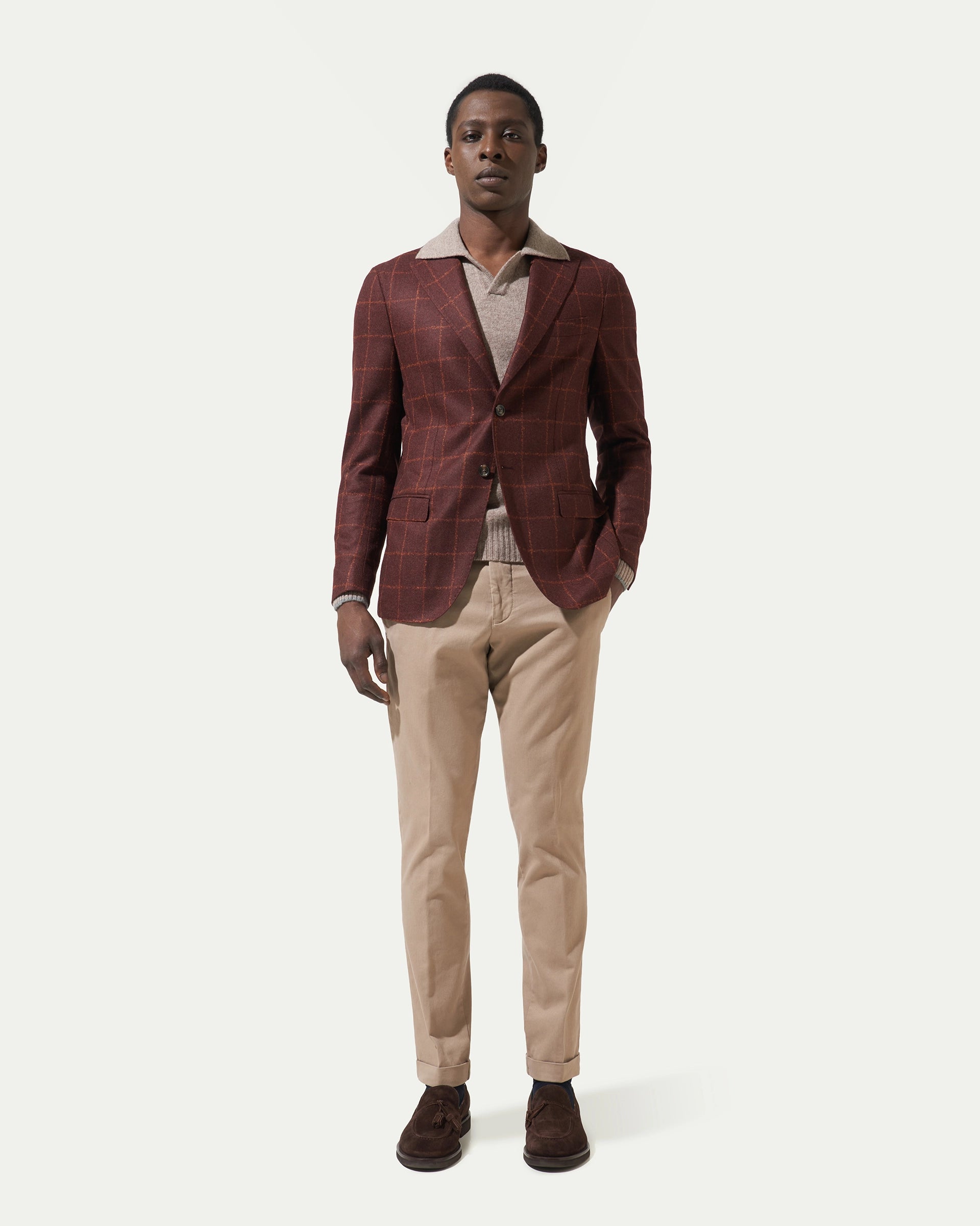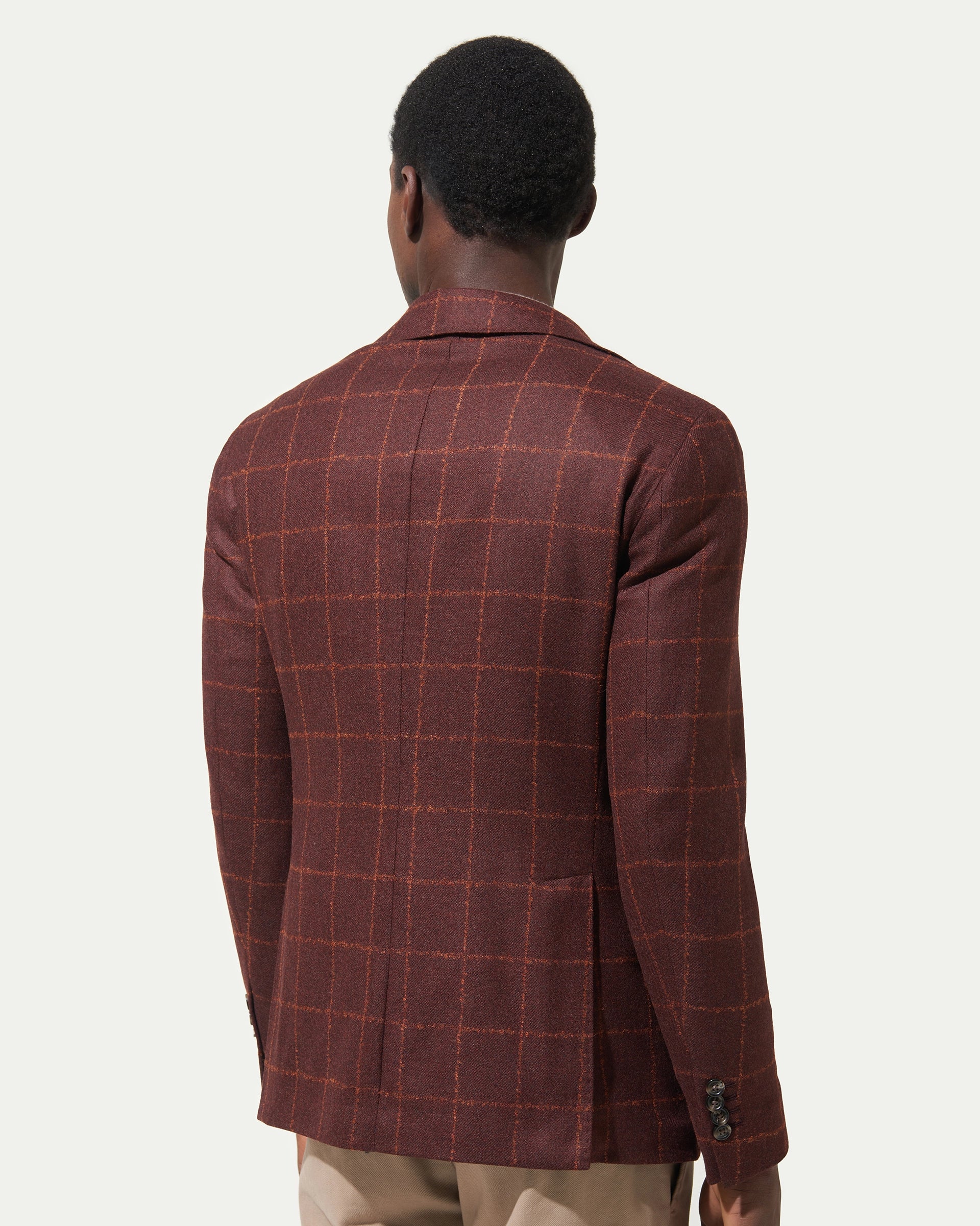 Giacca fantasia quadri ruggine in lana e cashmere tessuto Loro Piana