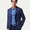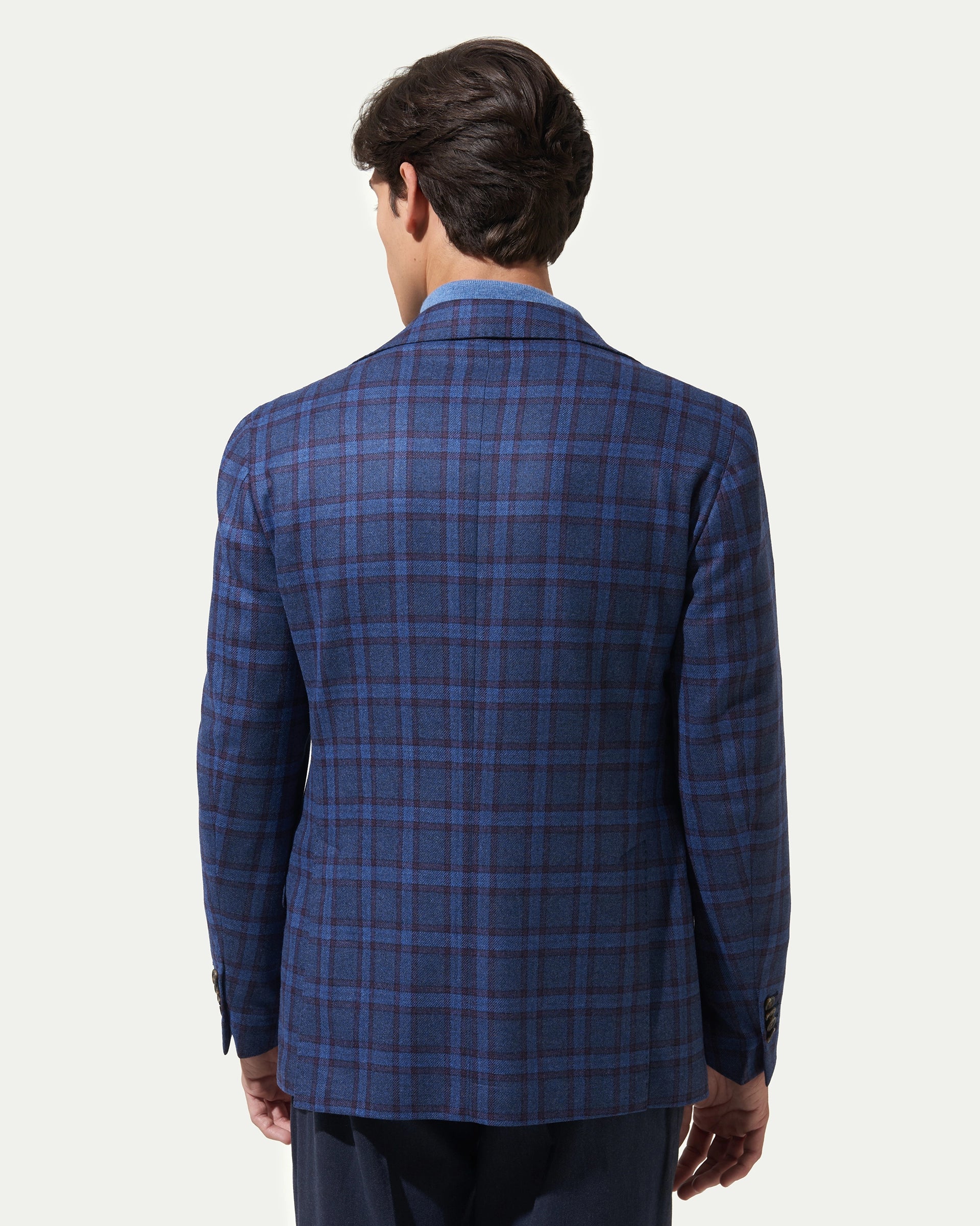 Giacca finestrata blu in lana e cashmere tessuto Loro Piana