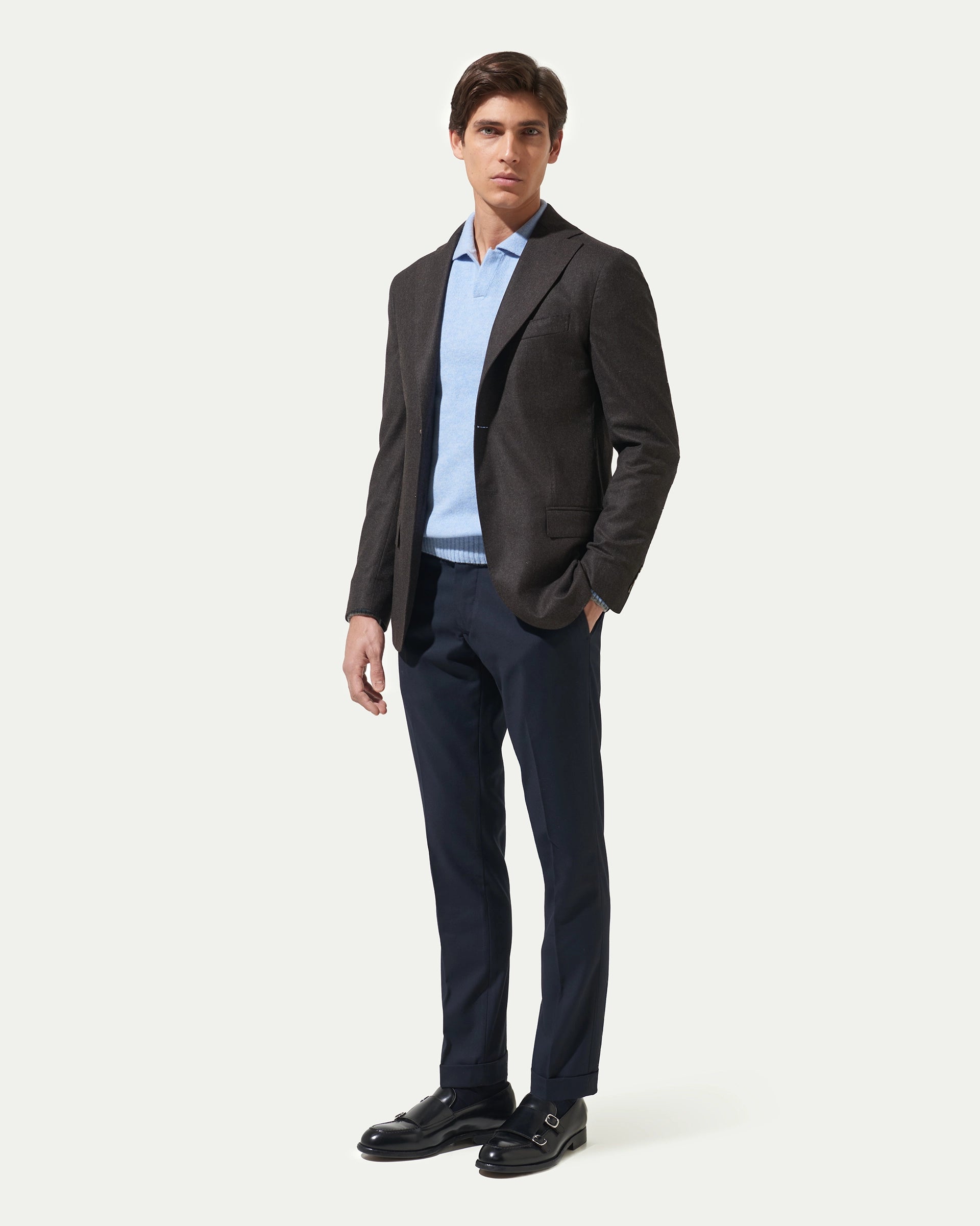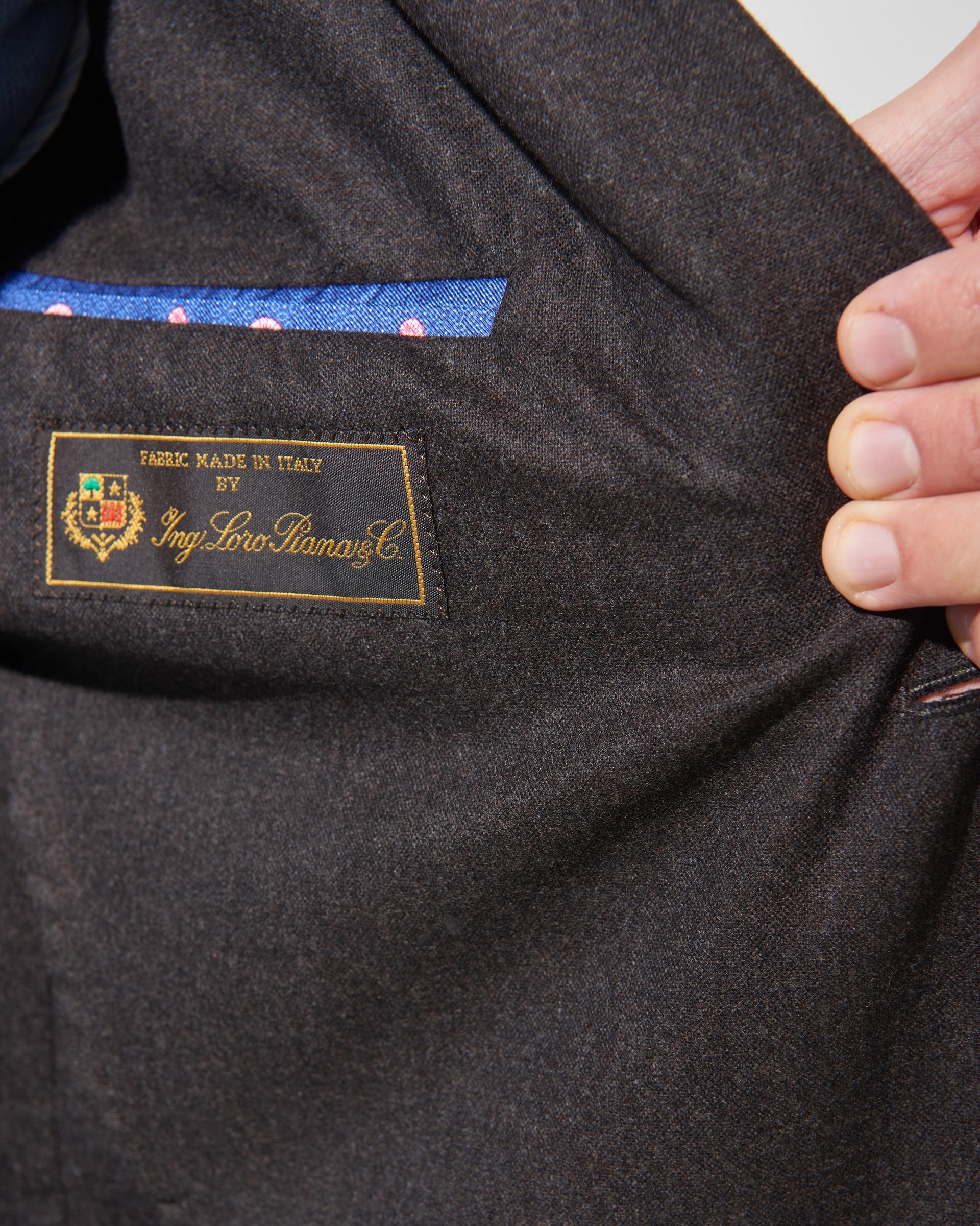 Giacca marrone in lana e cashmere tessuto Loro Piana