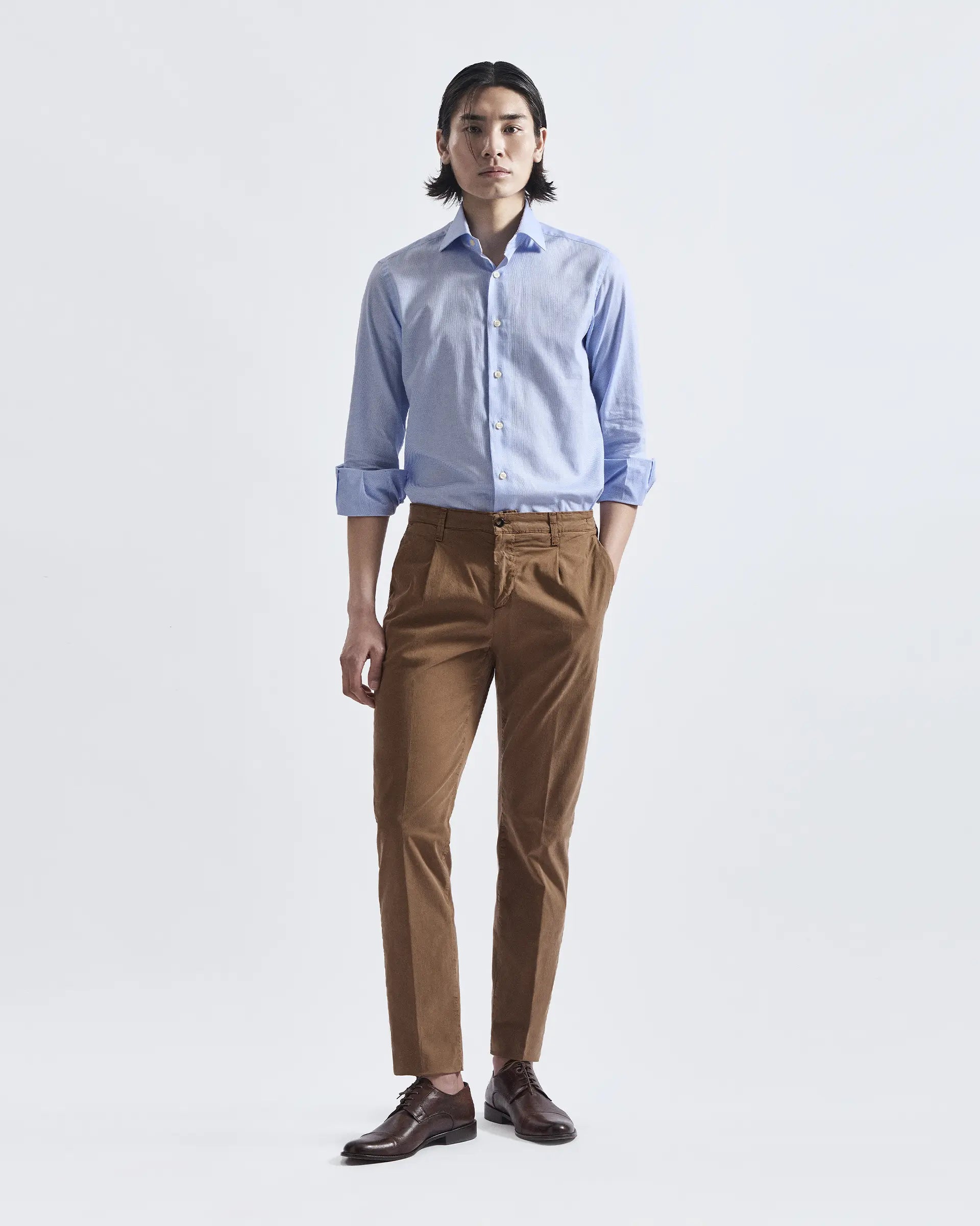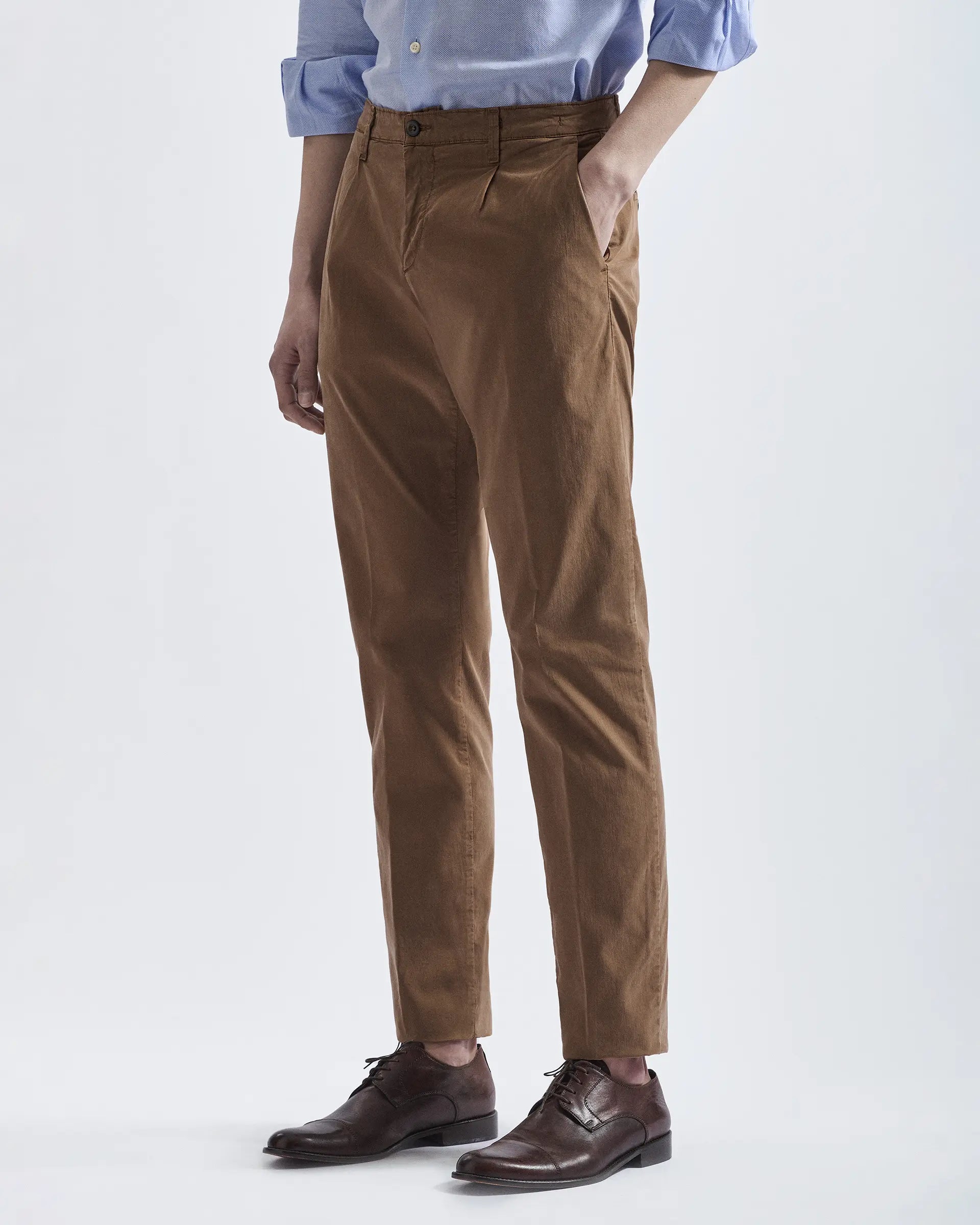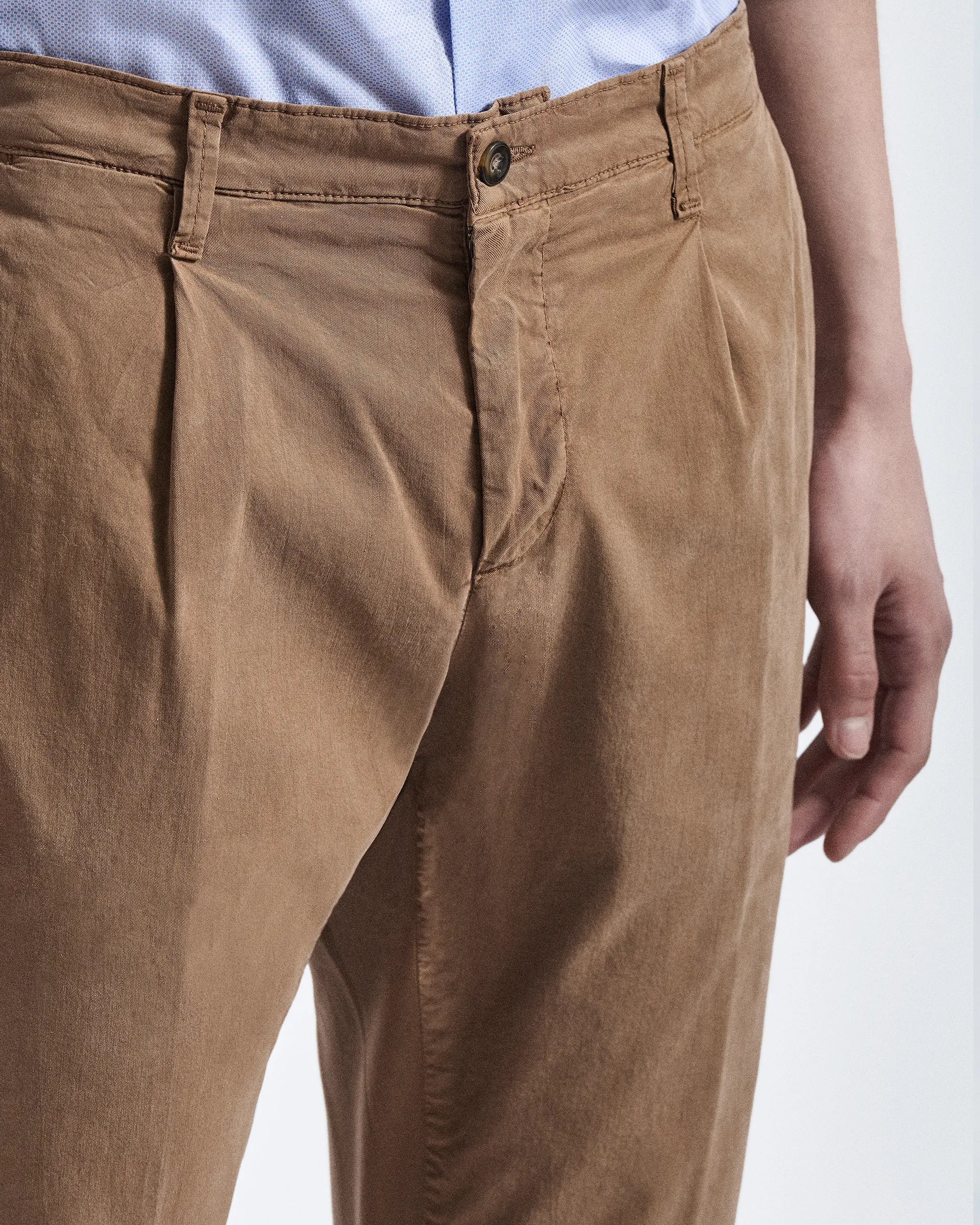 Hazelnut trousers with pleats in tencel and stretch cotton