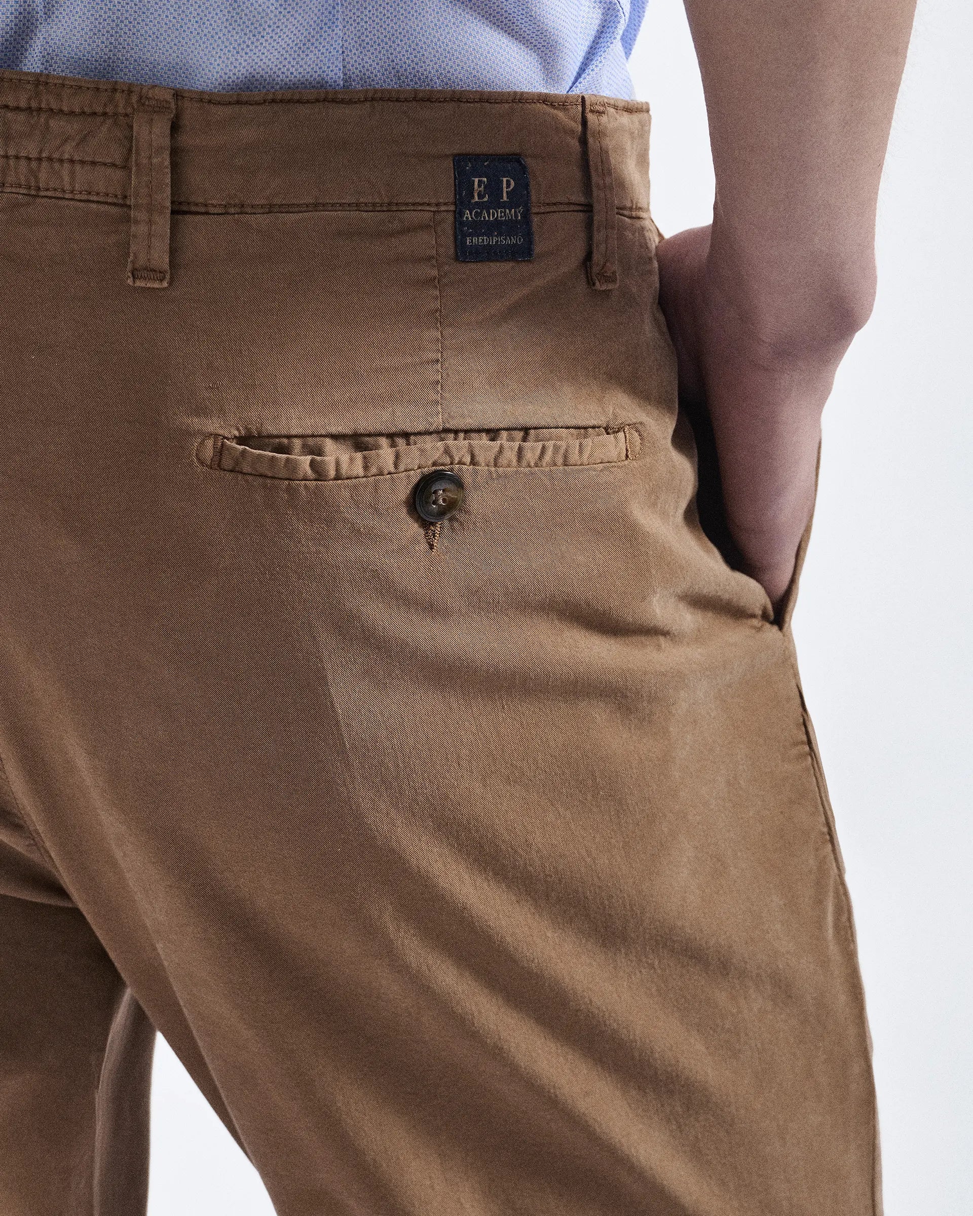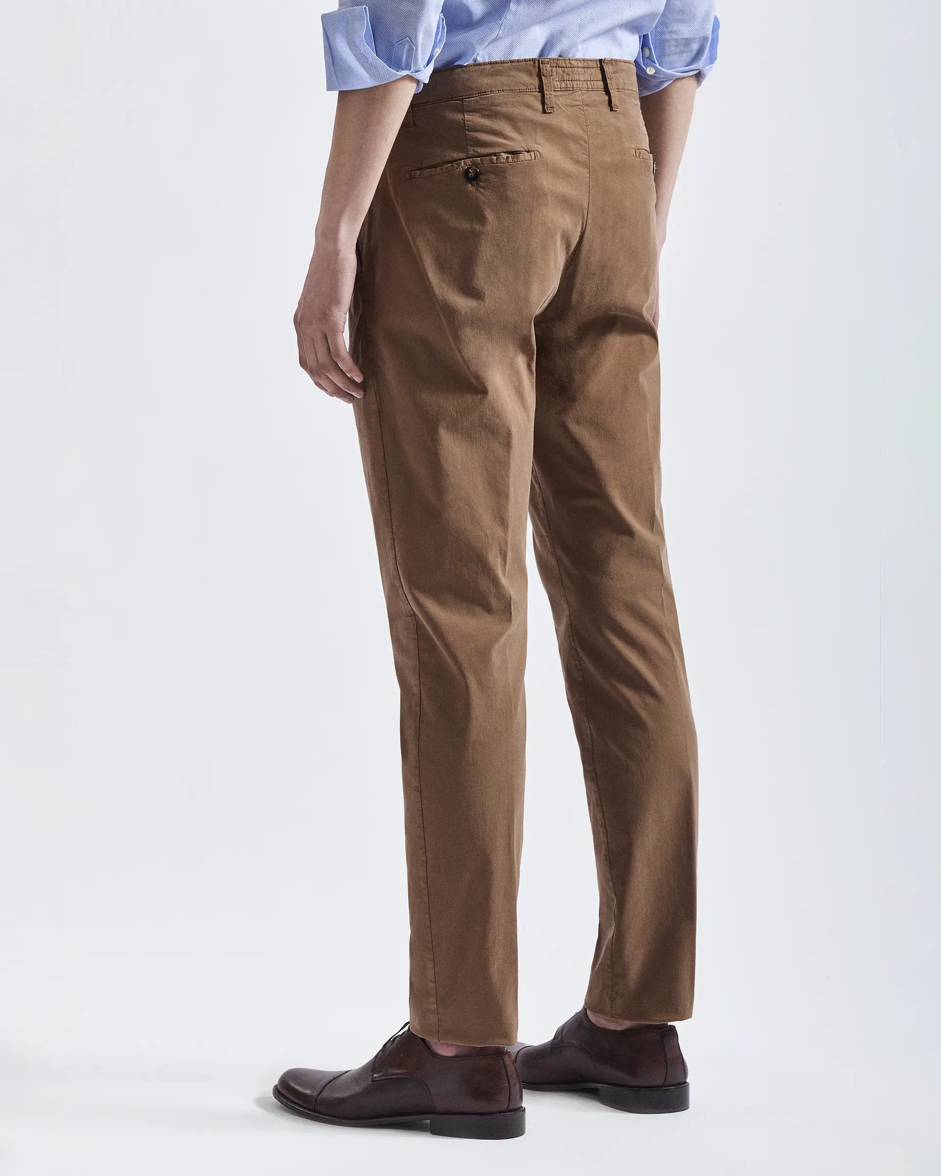 Trousers in light tencel gabardine and directly dyed stretch cotton. Model with a sporty vocation that combines fine tailoring details with a leisure line. The low environmental impact organic tencel and stretch cotton fabric is breathable and thermoregulating. It is completed with a regular fit for a light and fluid touch to leisure looks.