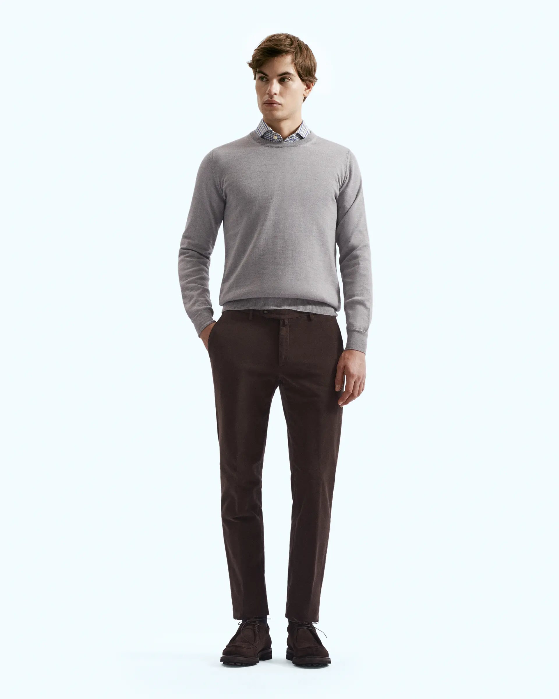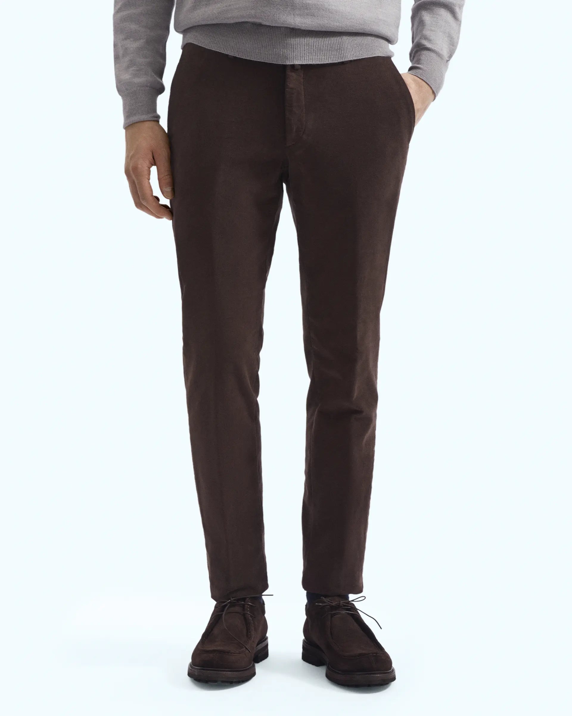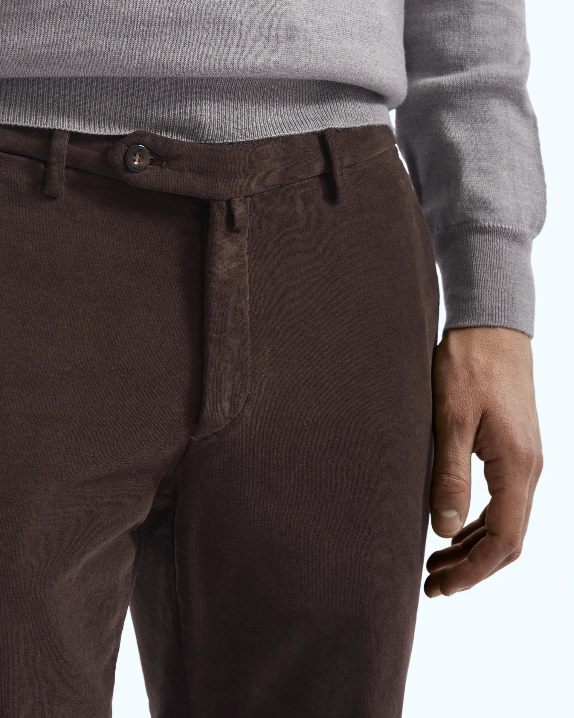 Trousers in ribbed stretch cotton velvet, a soft fabric with a contemporary look. The special wash gives the fabric a soft feel and intense, natural color shades, while the regular fit with slim lines on the leg gives it an original tailored design.