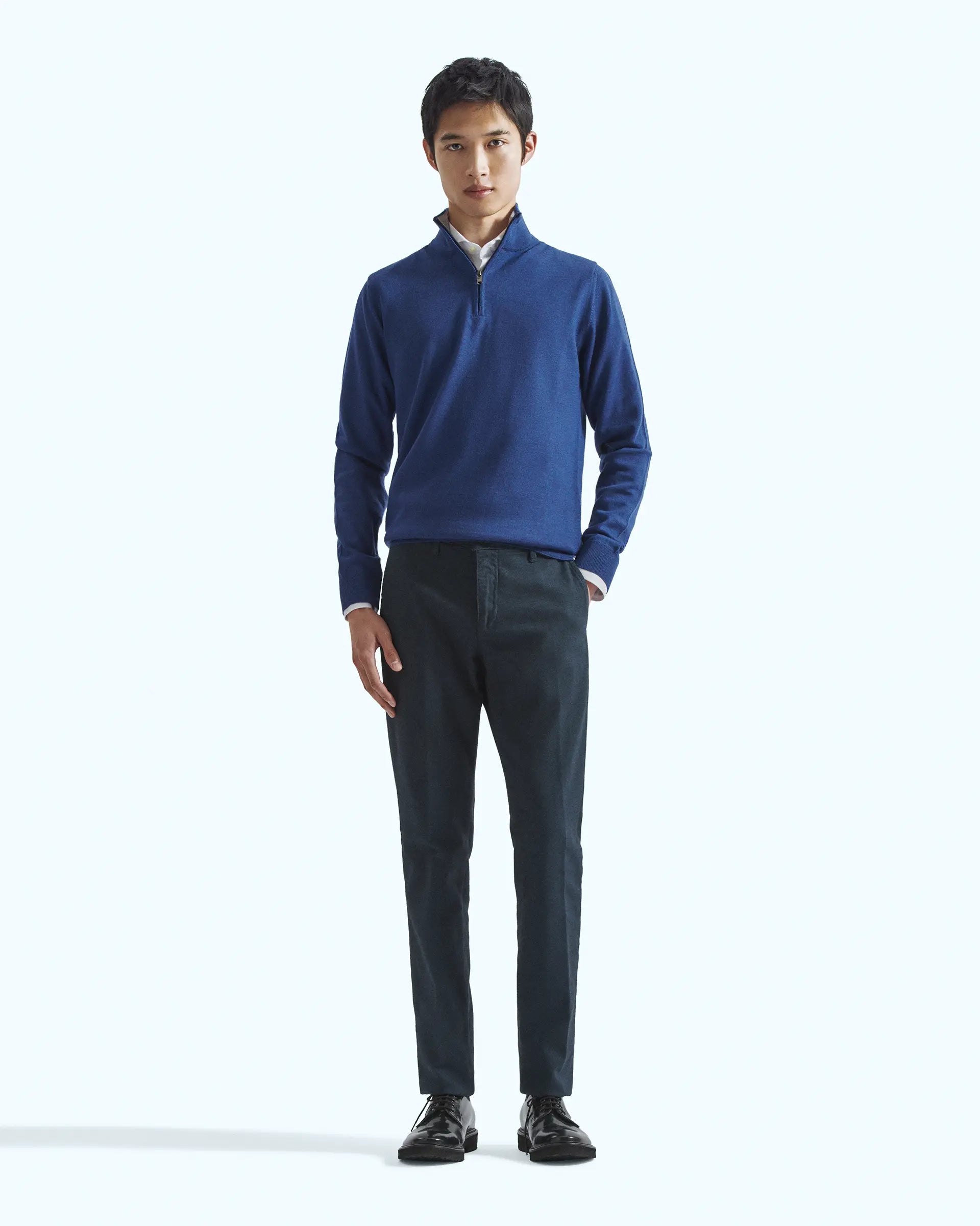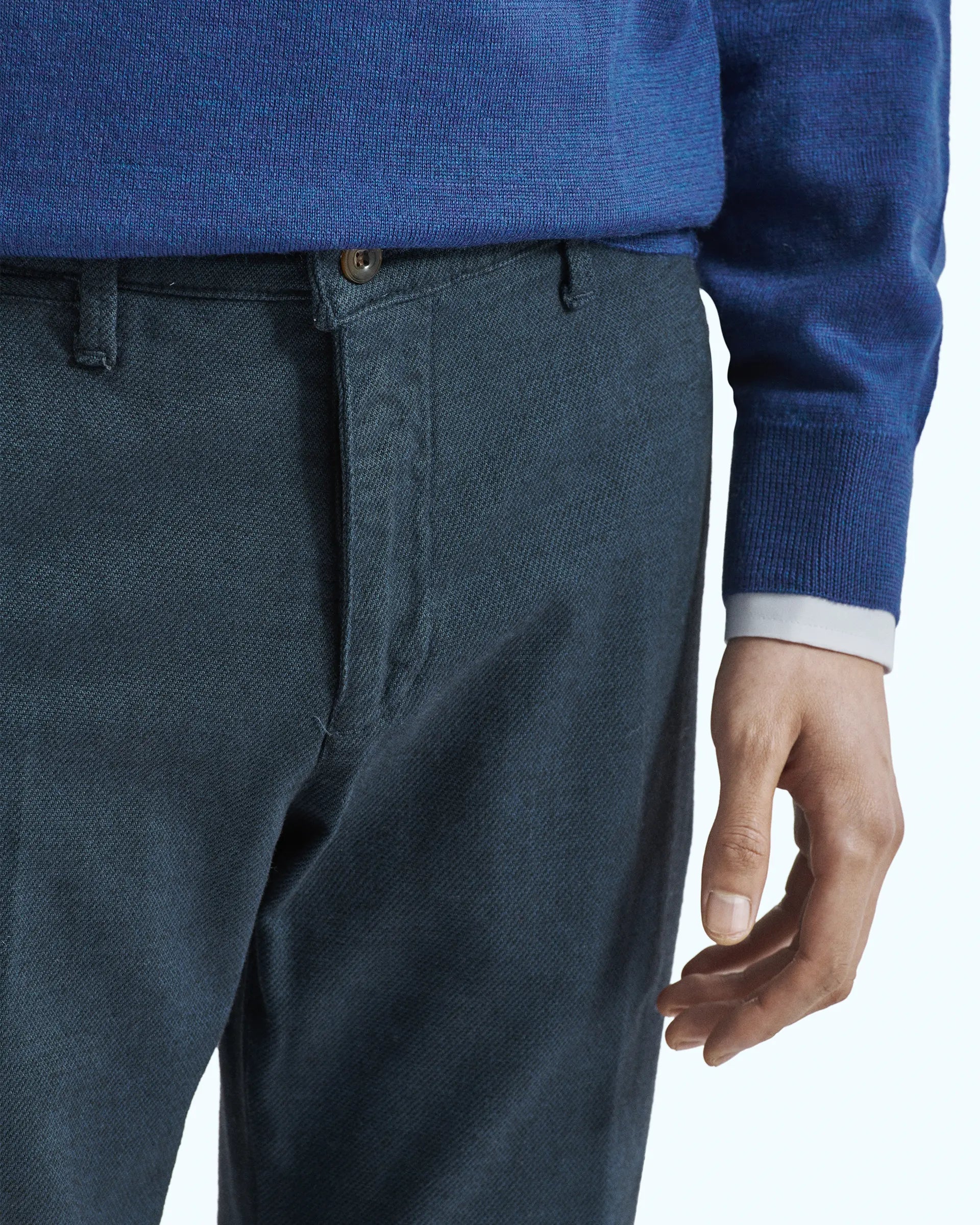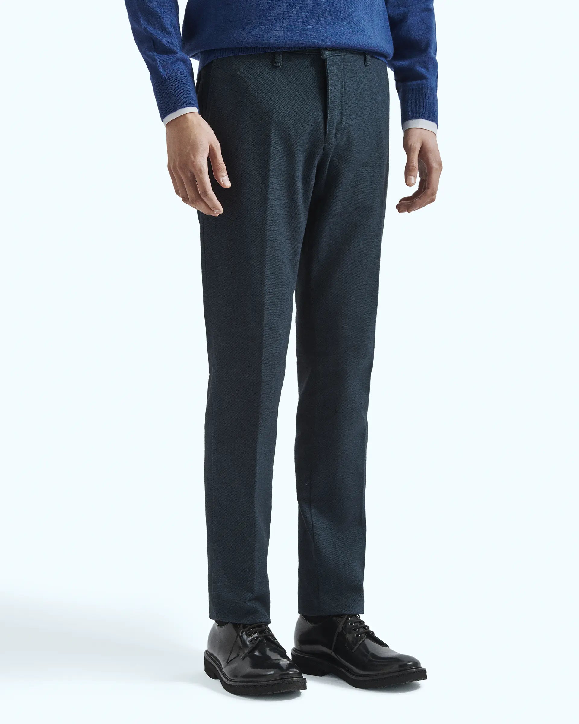Chinos trousers made of high-weight stretch cotton and combined with a wool-effect texture. The weave and soft feel of the fabric amplify comfort and ensure warmth even on the coldest days while the regular fit guarantees a refined appearance making it perfect for all occasions.