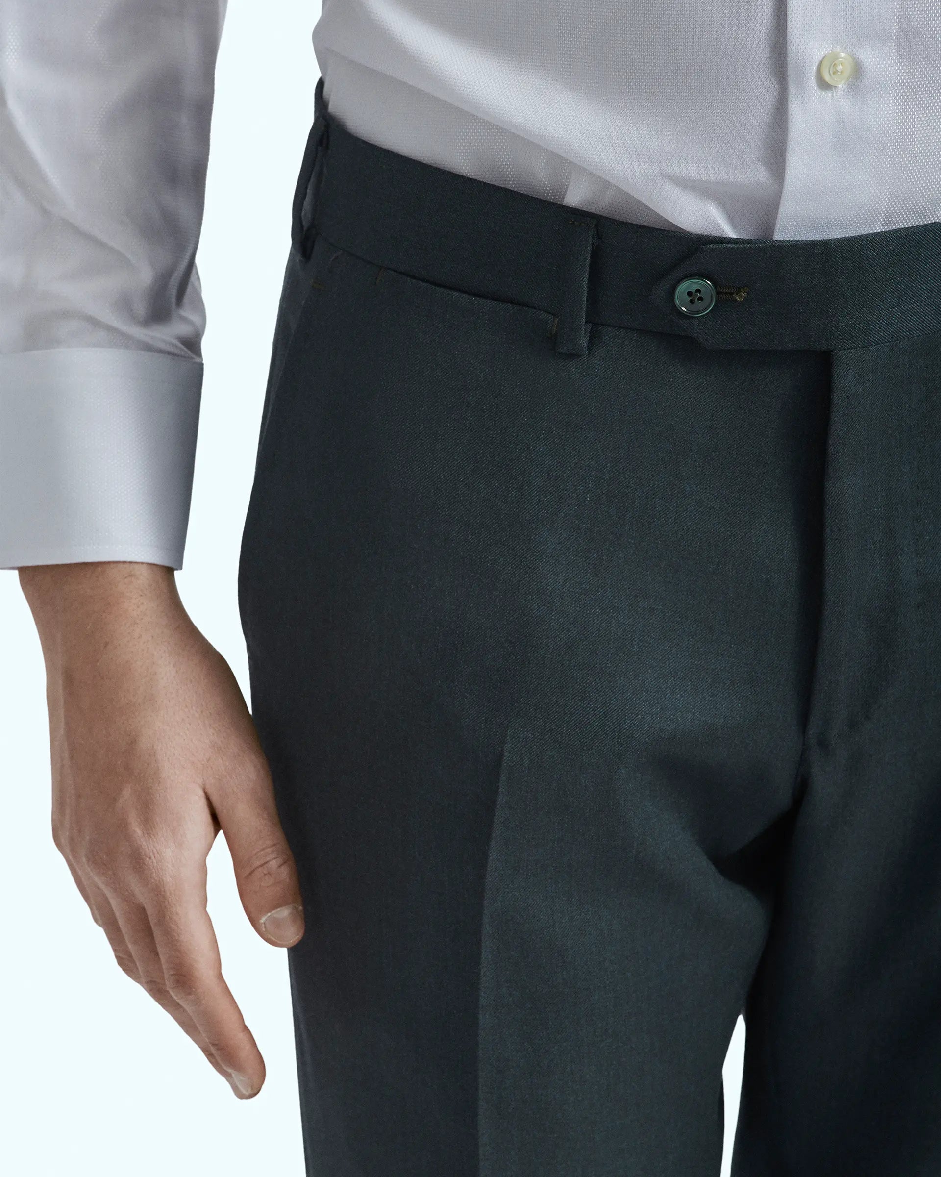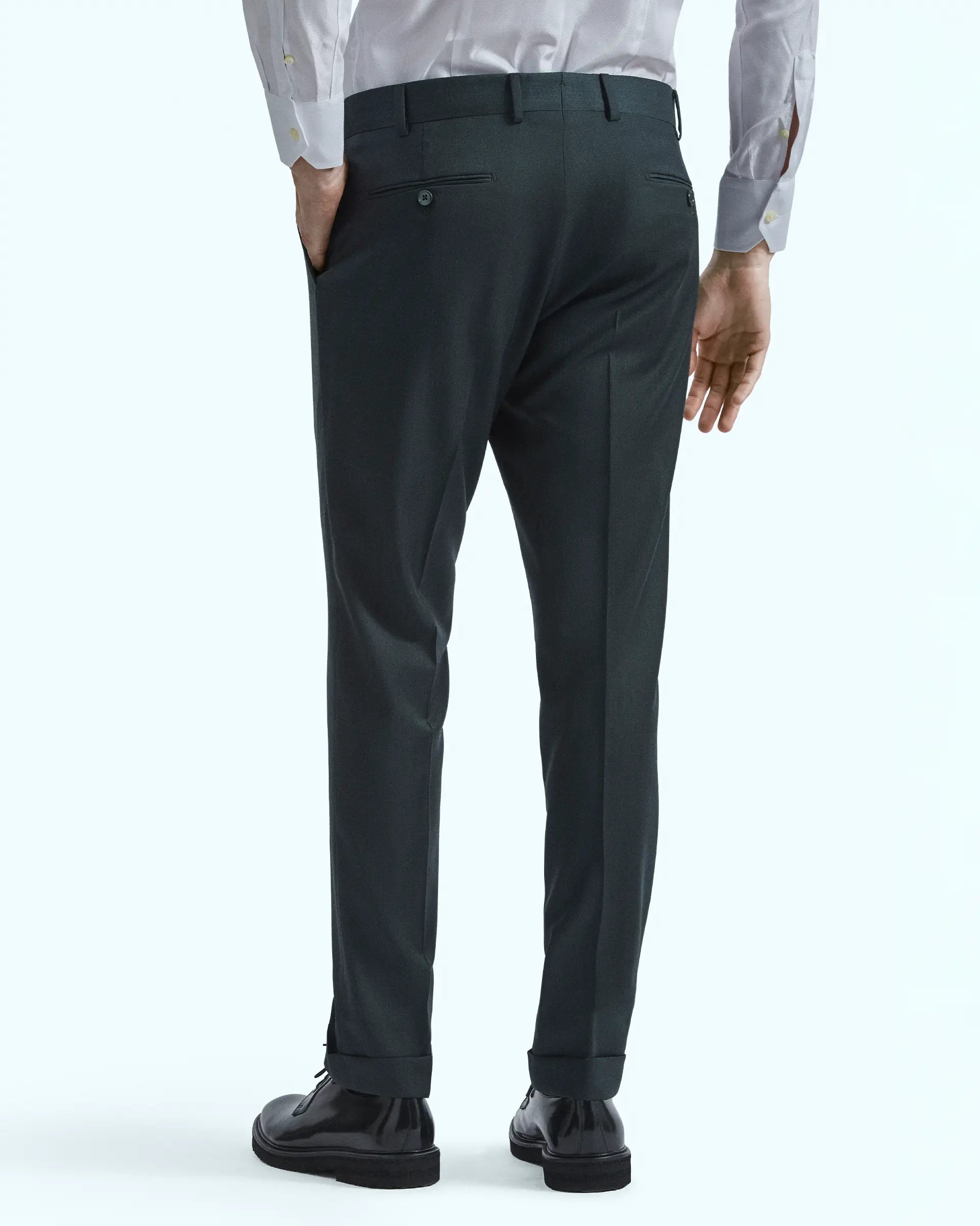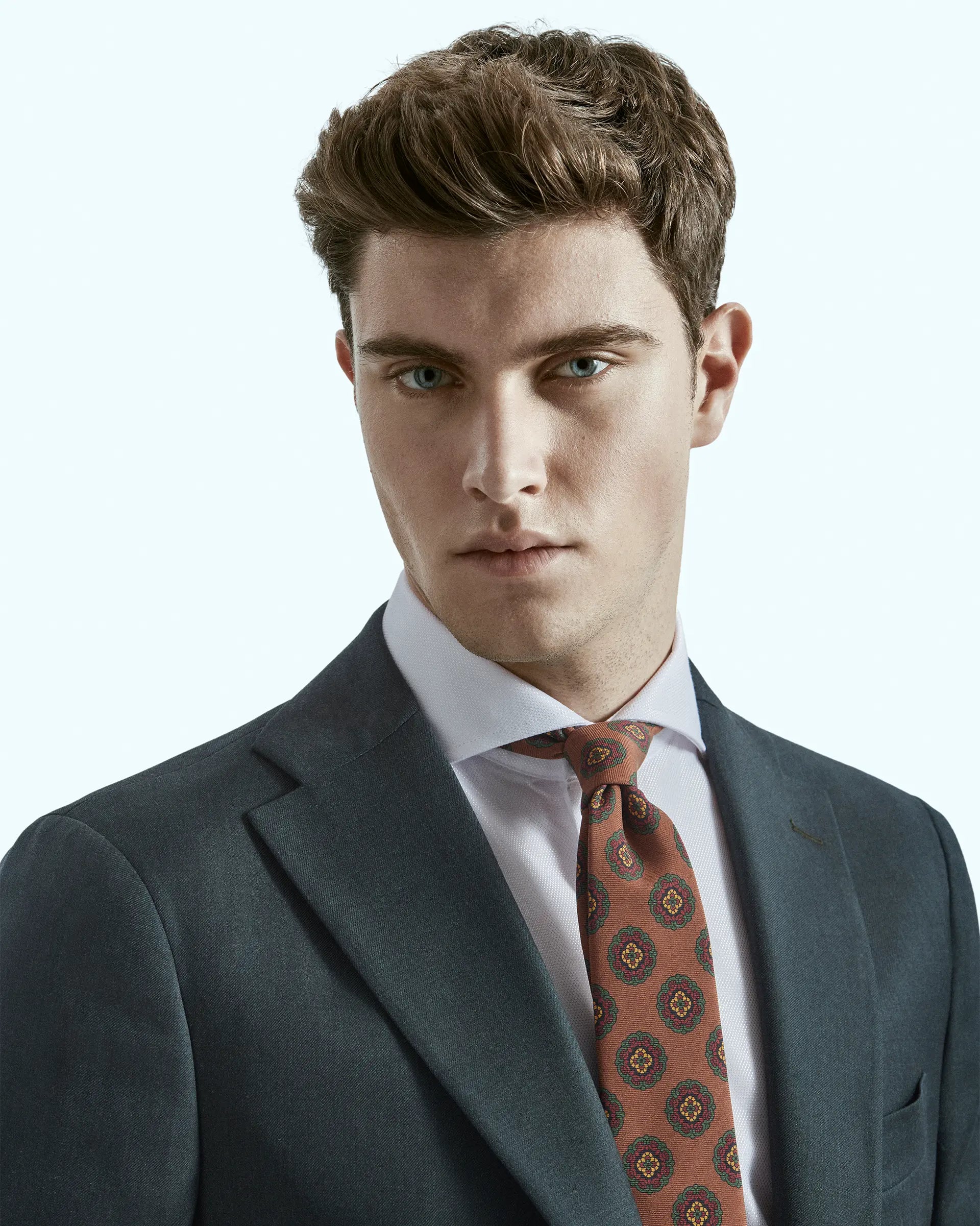 Tailored suit made with exclusive "Zelander Dream" fabric from Lanificio Loro Piana. The lined jacket, with semi-lined construction and light shoulder pad for a comfortable and enveloping fit that adapts perfectly to the body, is combined with crease-free trousers combining aesthetics and functionality. The luxurious details such as the internal silk finishes, the real buttonholes to be finished and the real corozo buttons express the pursuit of excellence in every detail.