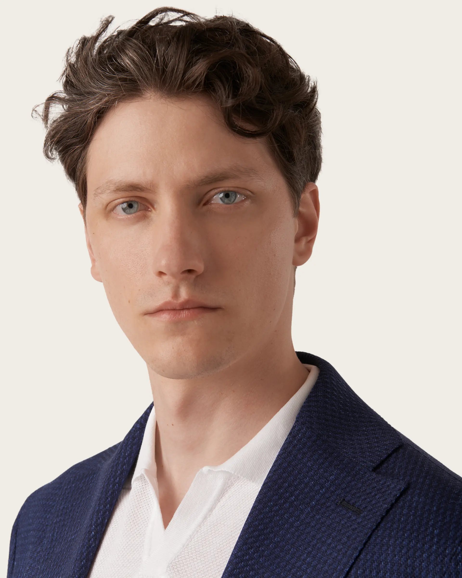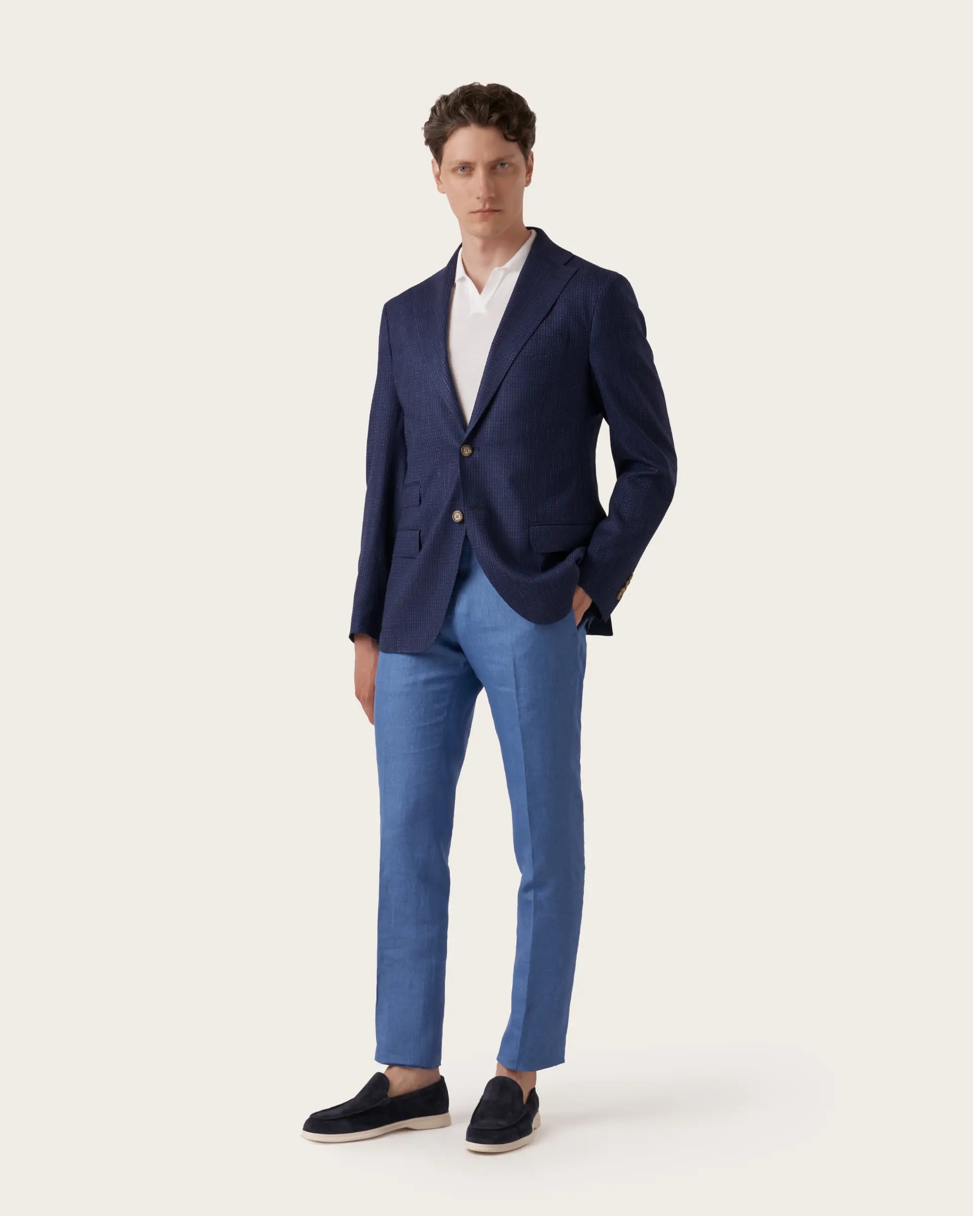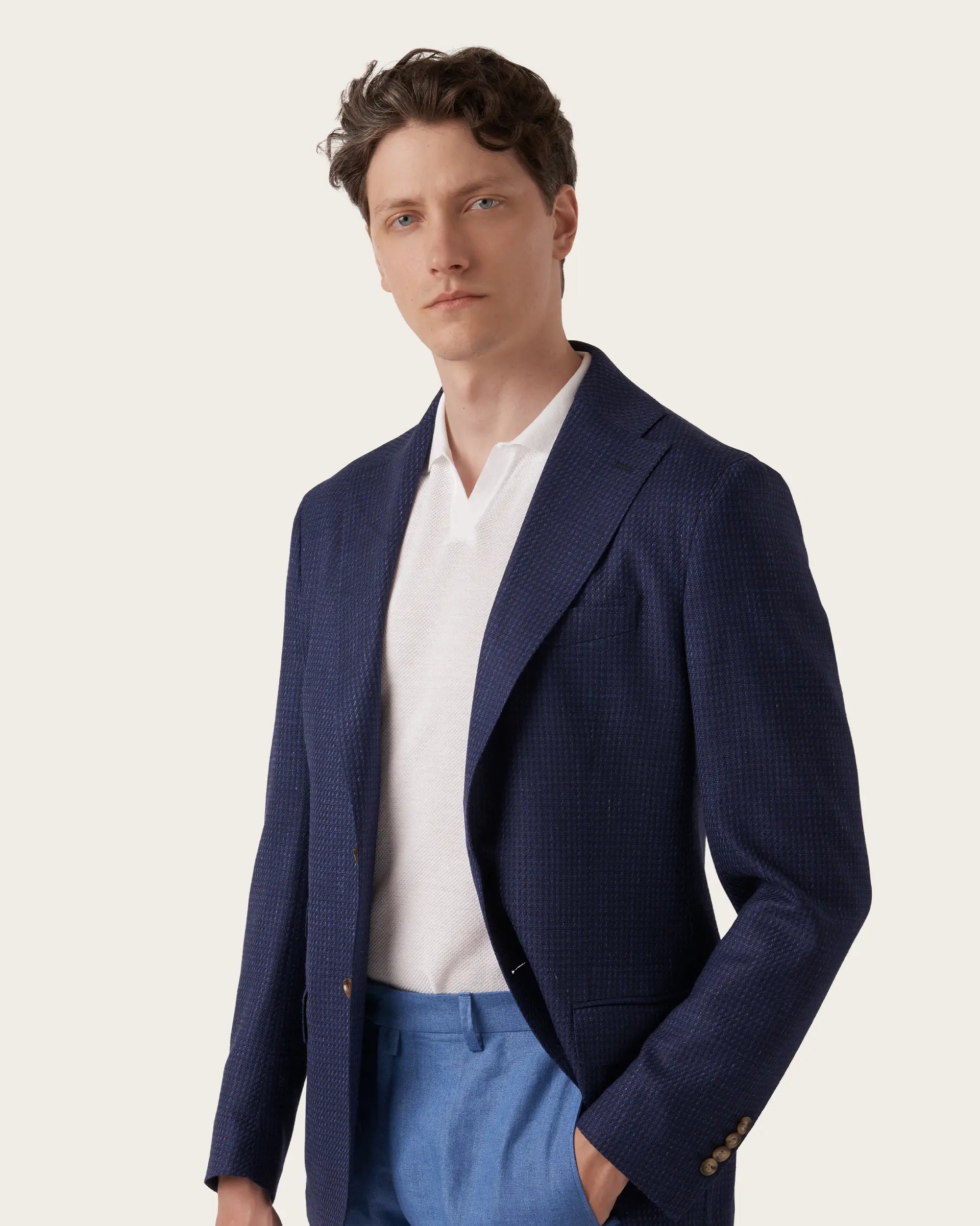 Blue jacket in wool, cotton and linen fabric Loro Piana "Jersely"
