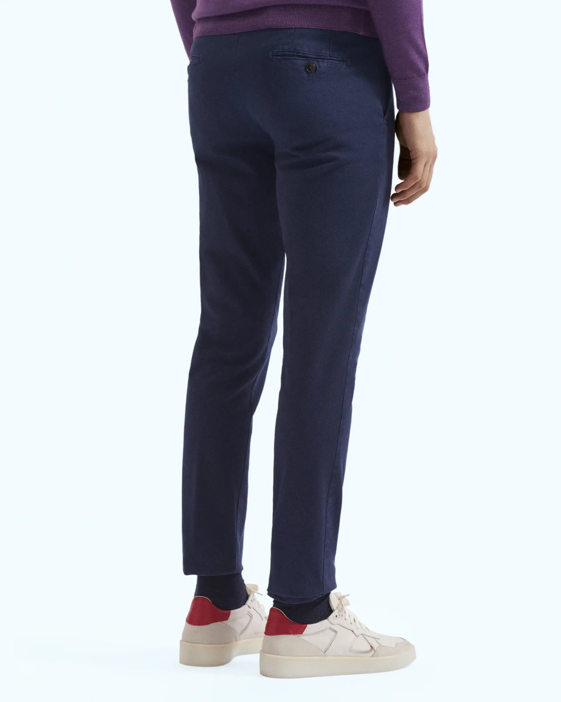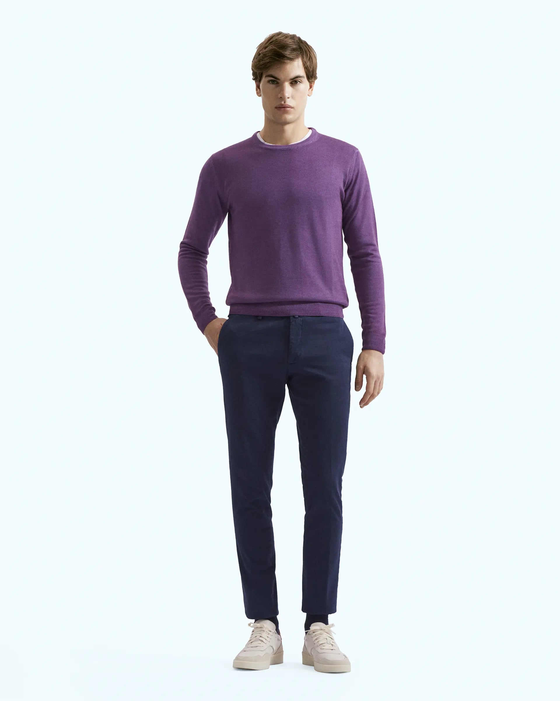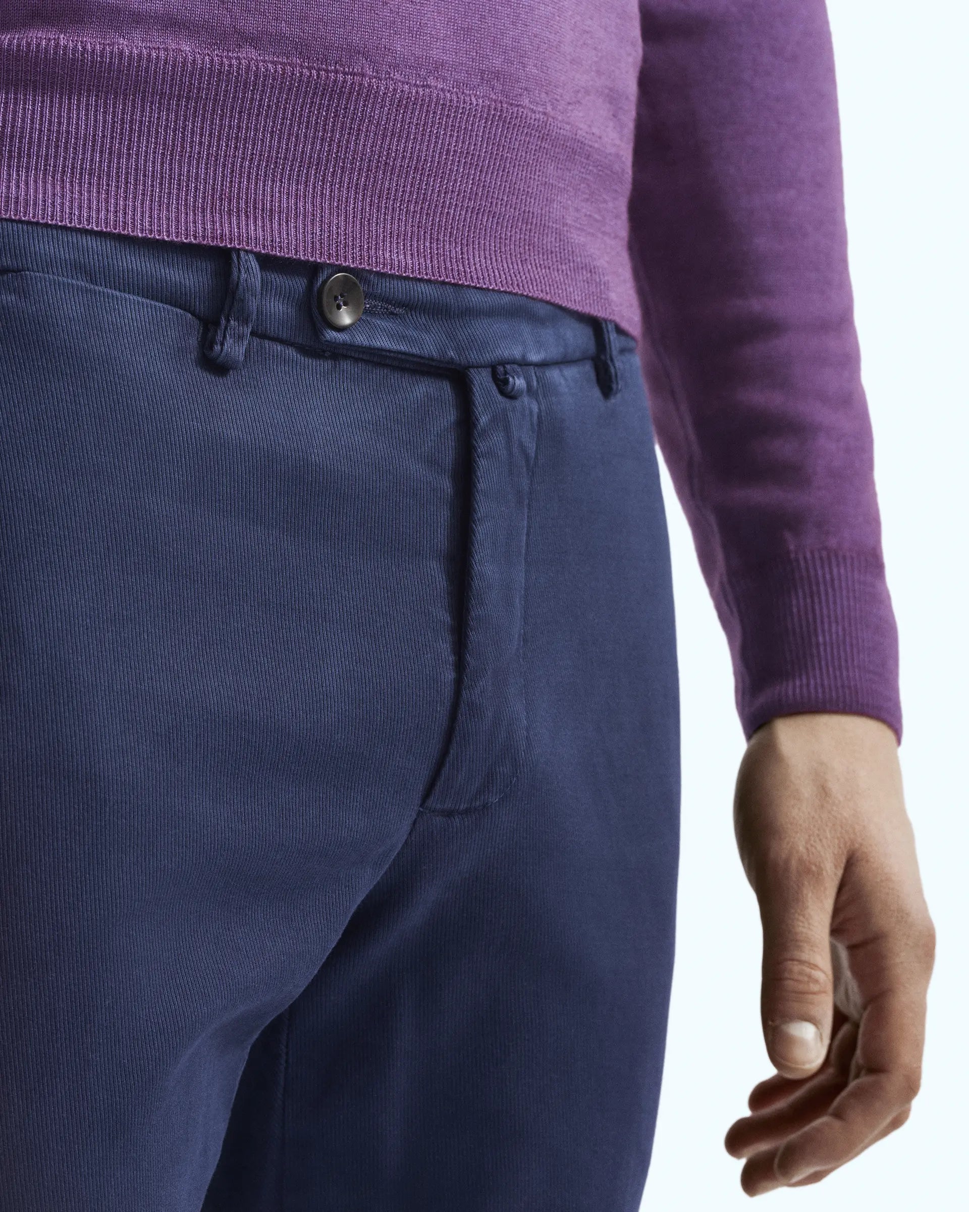 Trousers in stretch cotton tricotine, a fabric that combines a pleasant ribbed texture with resistance and elasticity. Made with artisanal care, these chinos are a must-have for the modern man who does not give up style even on informal occasions. The garment dyeing gives the trousers a unique and distinctive look.