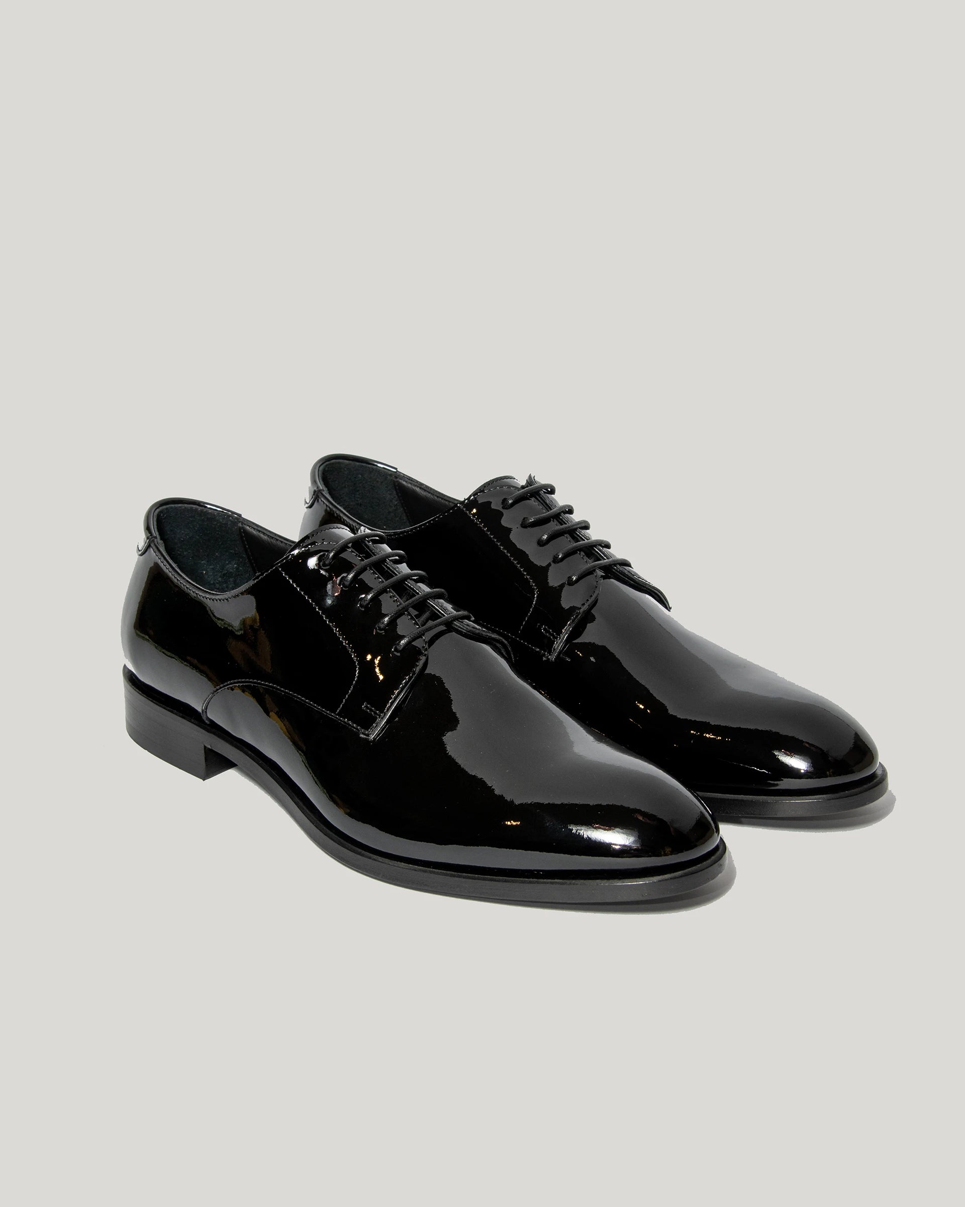 Excellent craftsmanship and premium materials define the style of these sleek, smooth patent leather derbies. The elegant and refined aesthetic is completed by a leather sole and Blake stitching for maximum comfort, even on formal occasions.
