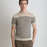 Men's short-sleeved crew-neck pure cotton t-shirt, featuring a refined striped pattern. Made with light and breathable yarns, it ensures comfort and freshness during the spring and summer seasons. The essential and contemporary design makes it a versatile garment, ideal for casual and smart casual outfits. Regular fit and refined finishes complete a perfect knitwear item for a modern and polished look.