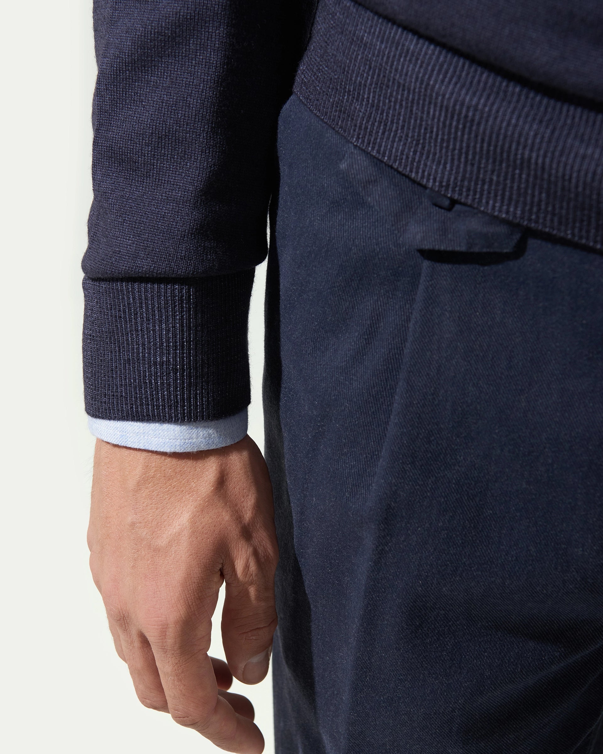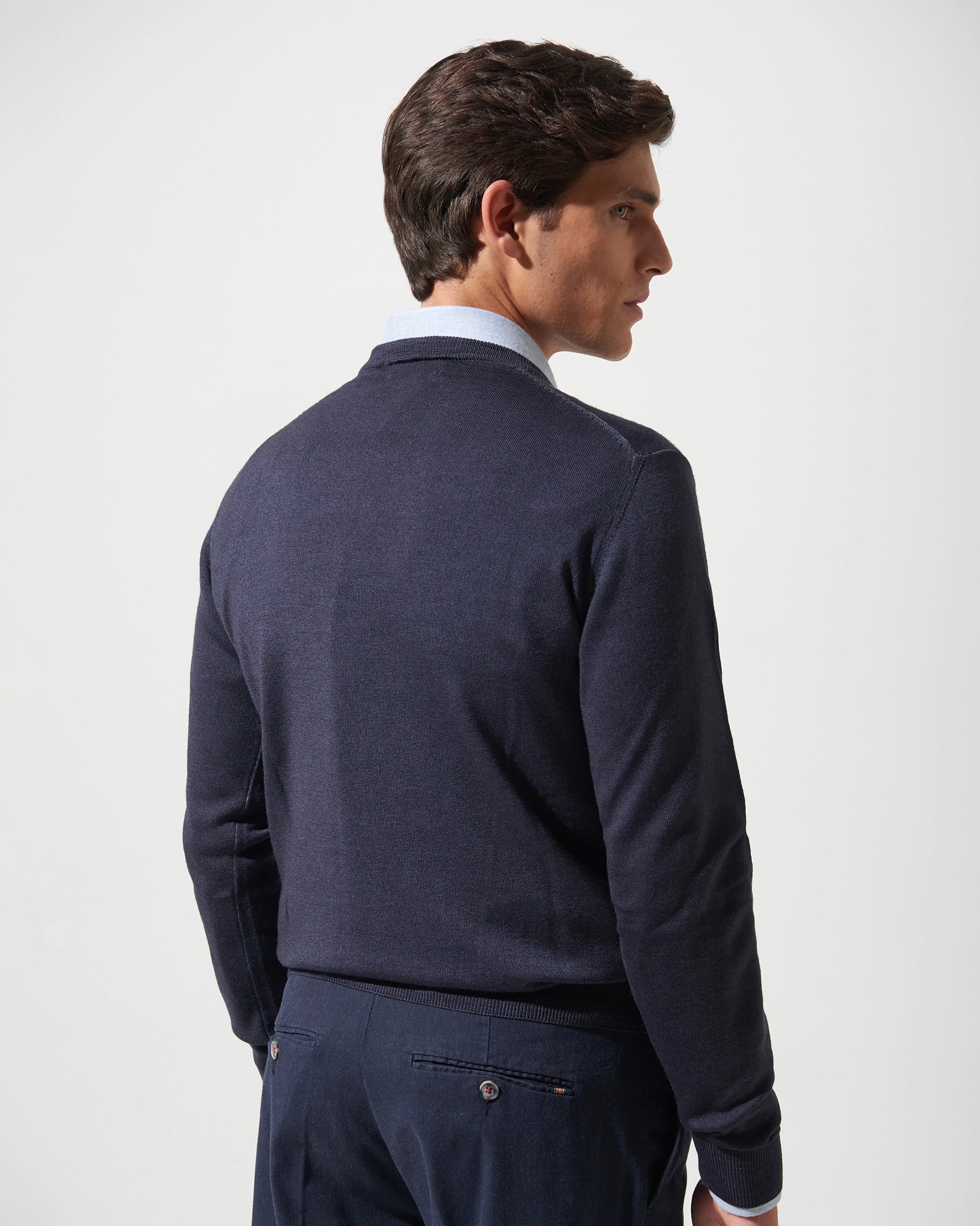 Blue crewneck in pure extra-fine merino wool, gauge 12