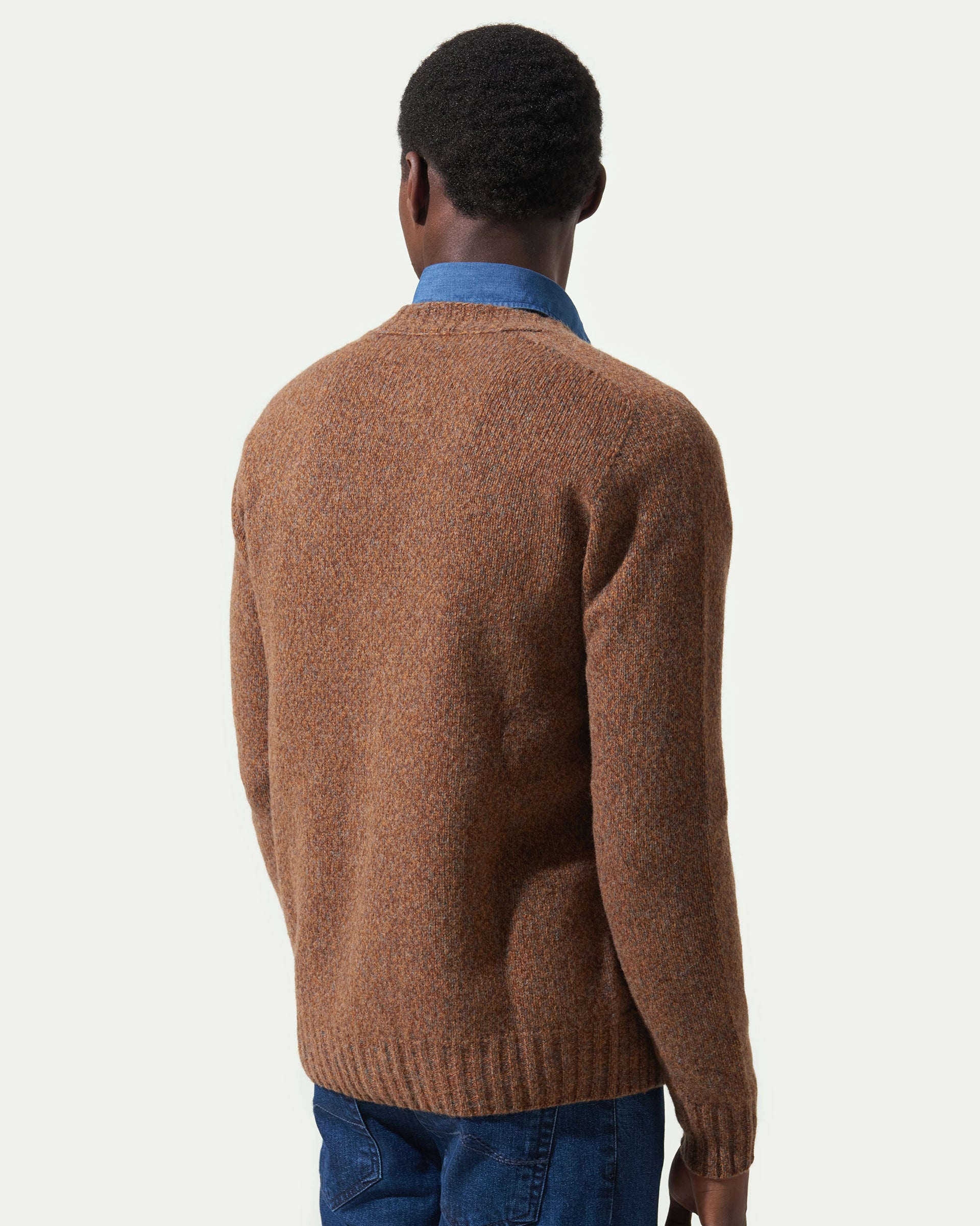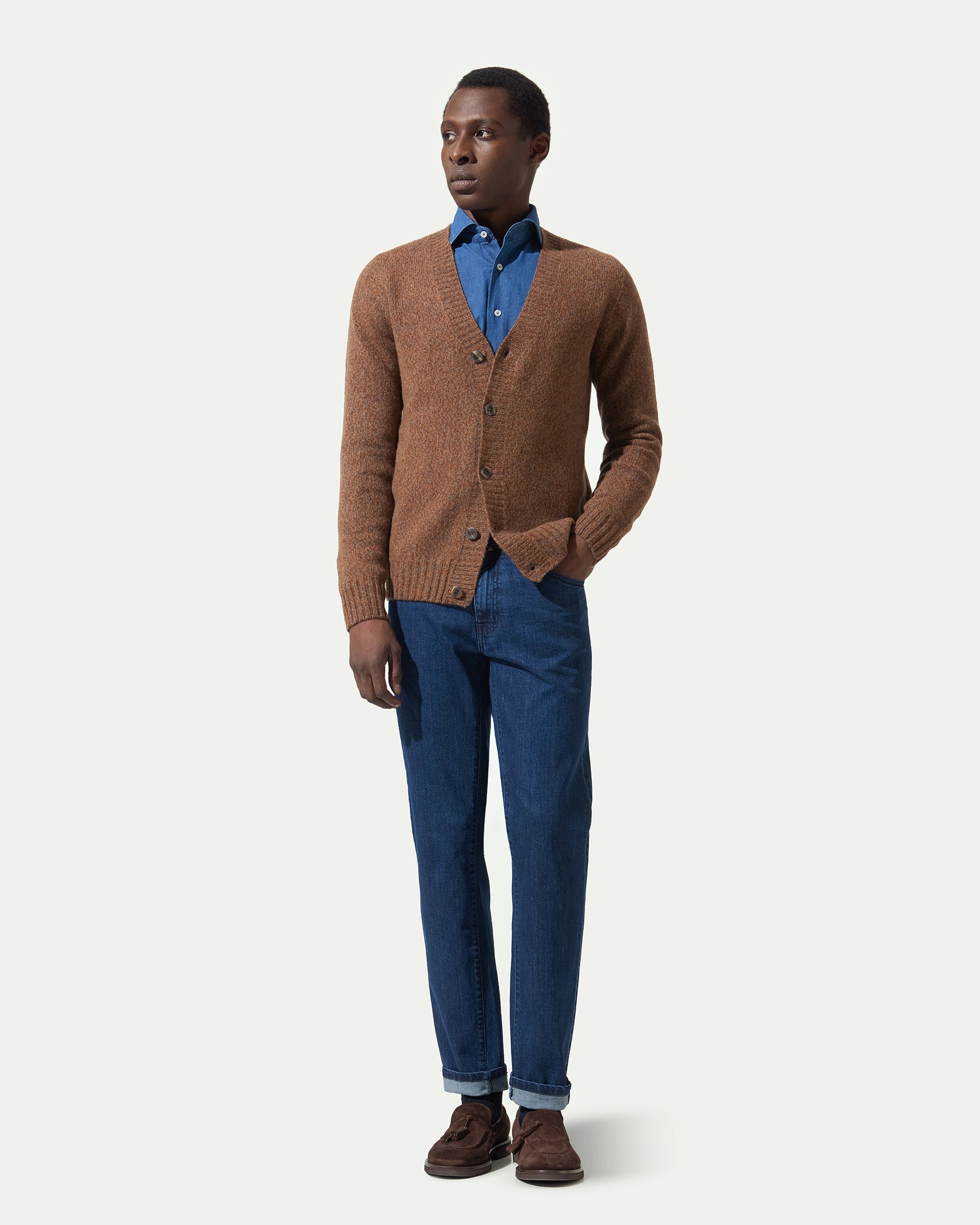 Tobacco cardigan in pure merino wool mouline fineness 5