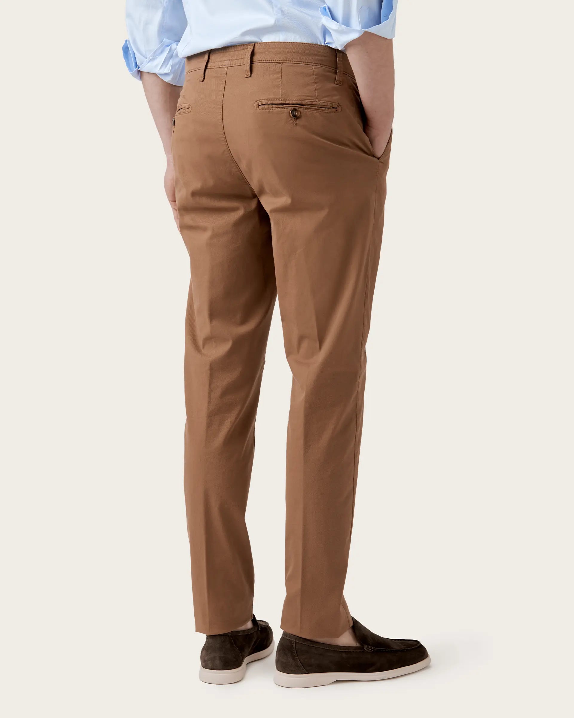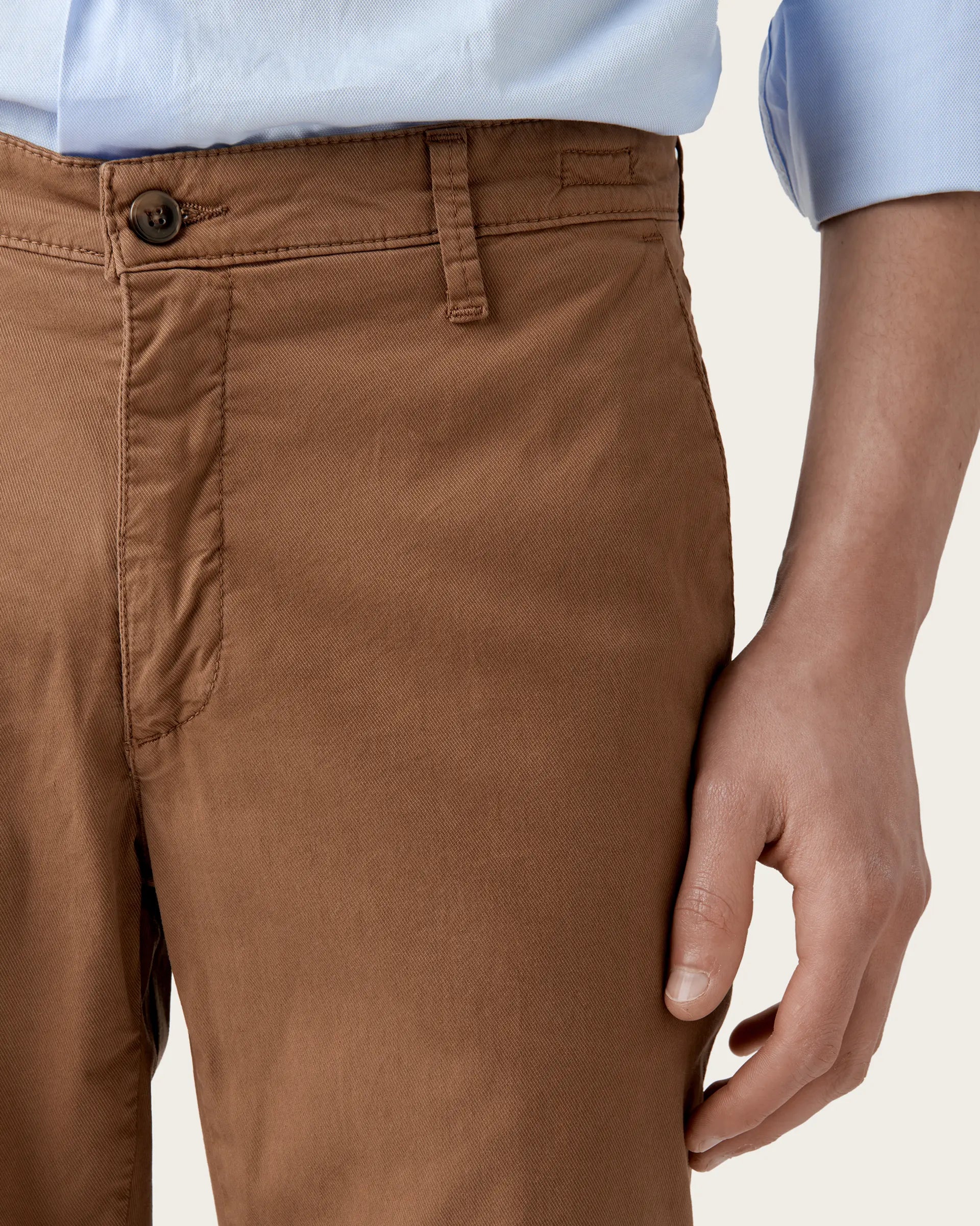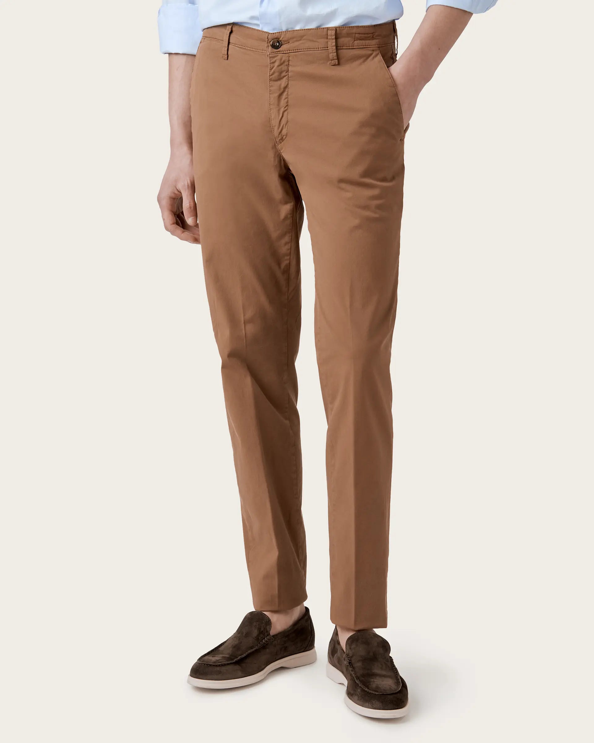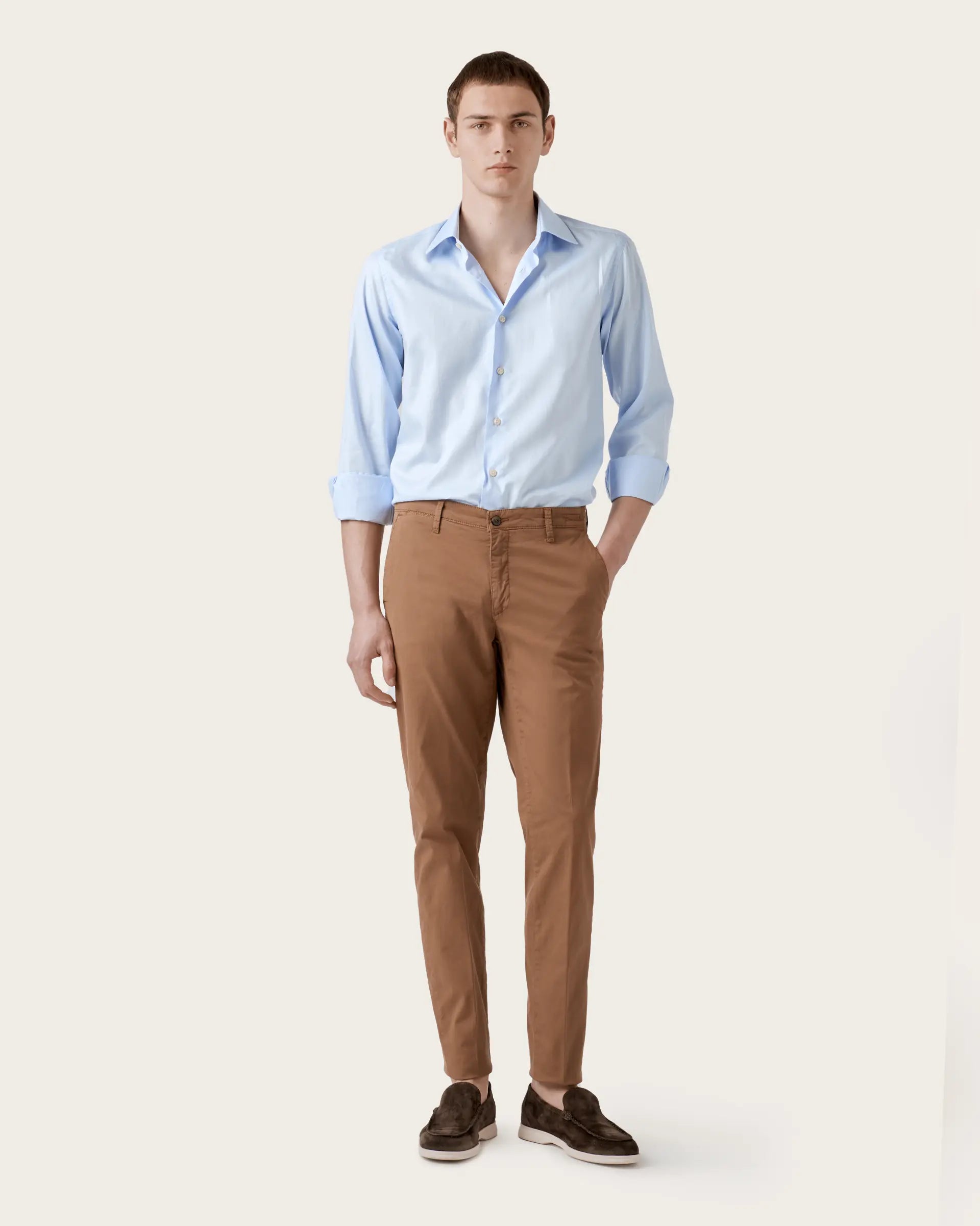Iconic piece of the men's wardrobe made of medium-weight stretch cotton that combines a pleasant worked texture with resistance and elasticity. Essential and with a contemporary cut, it is presented with a "regular slim" fit for a dry but not tight fit that defines its refined appearance. The particular wash guarantees a soft feel and natural color shades.