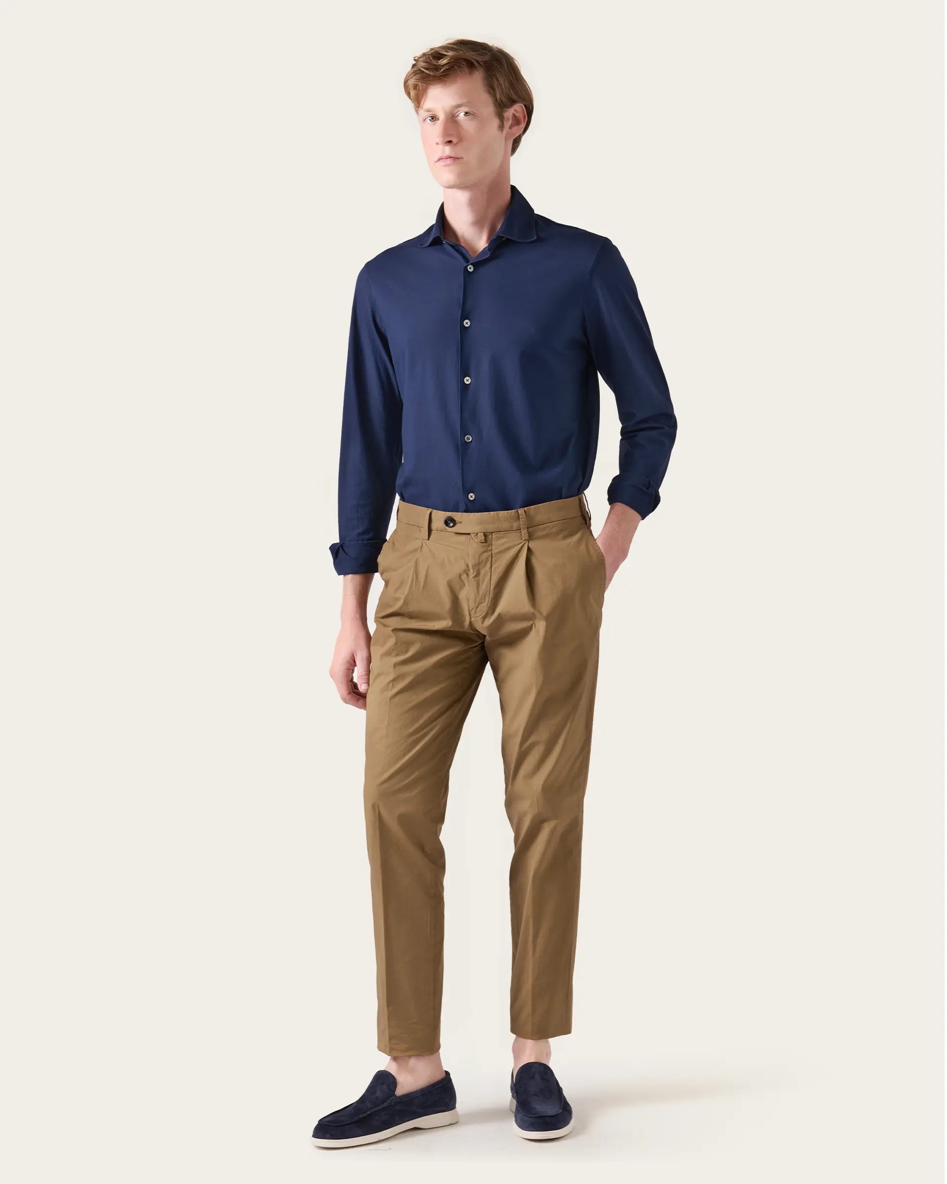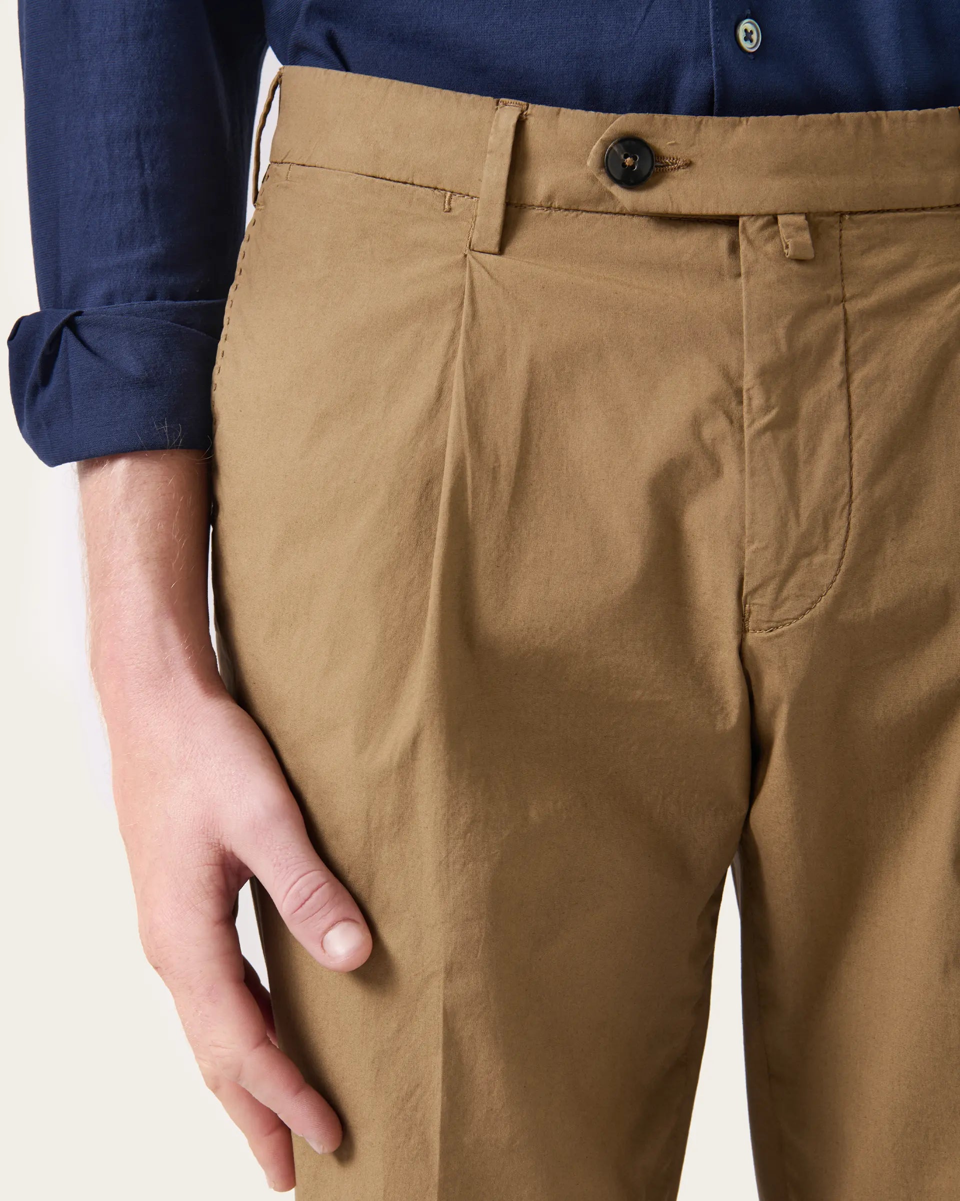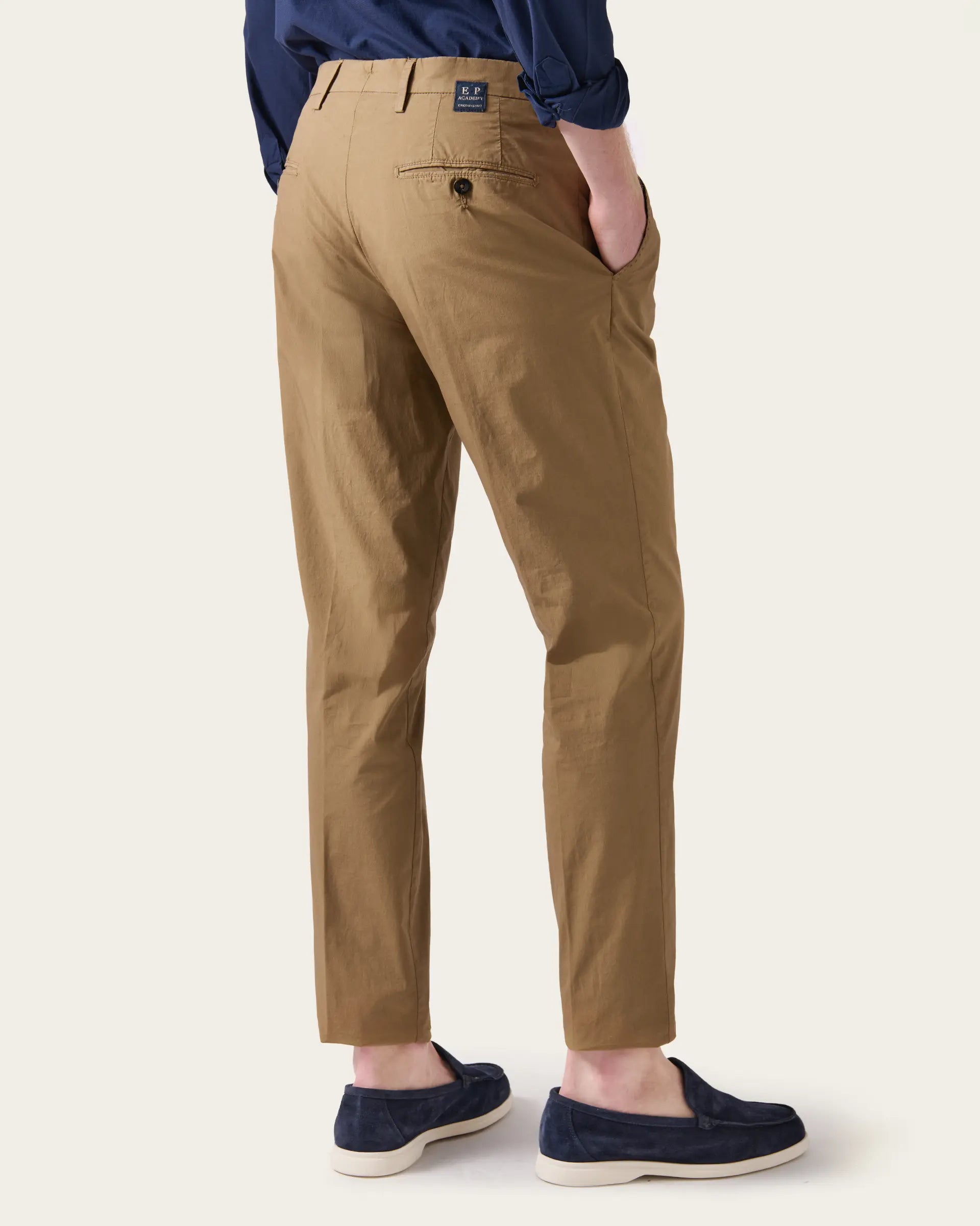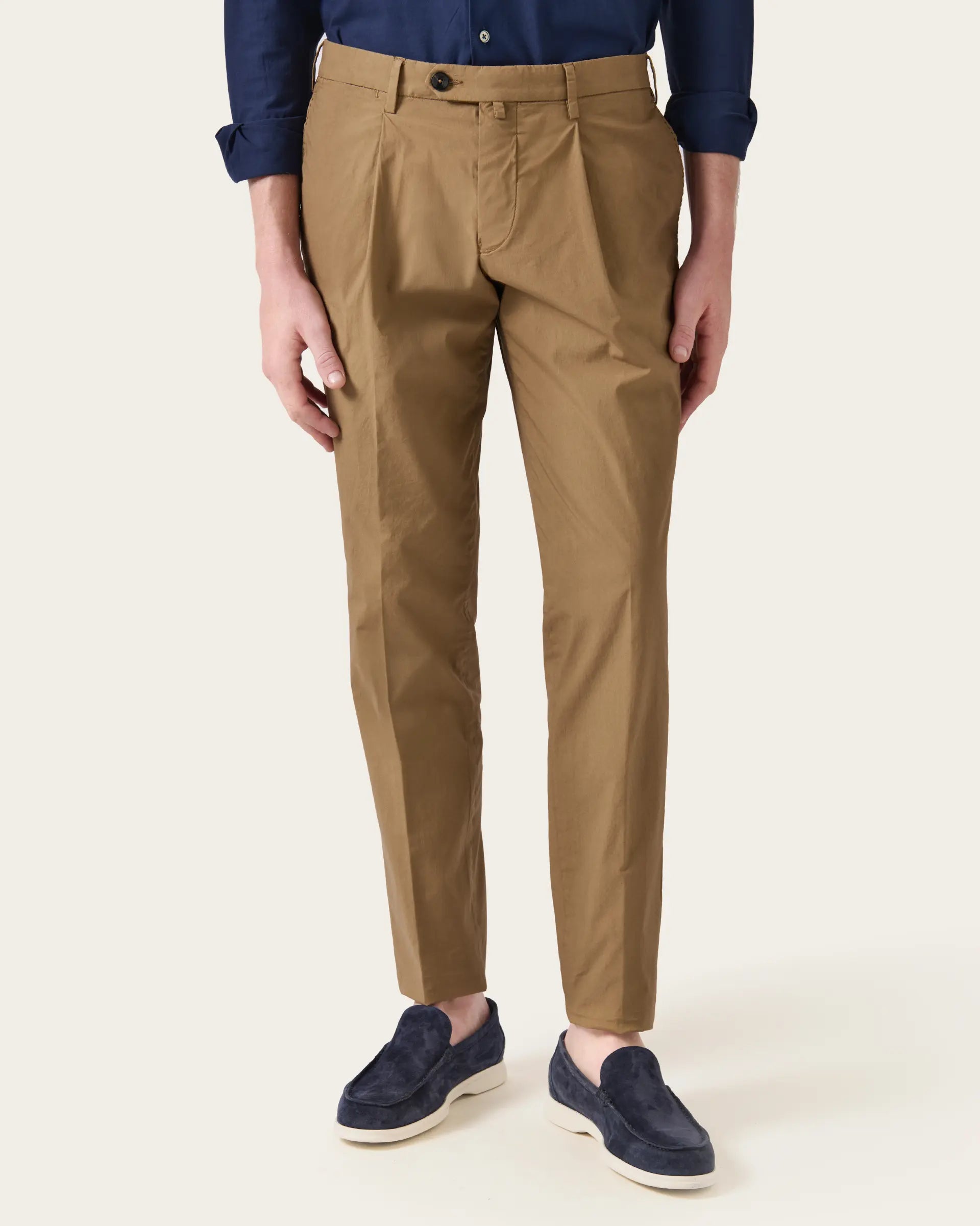 Hazelnut trousers with darts in garment-dyed stretch cotton poplin