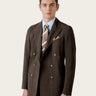 Brown Prince of Wales double-breasted jacket in stretch wool from the Zignone wool mill