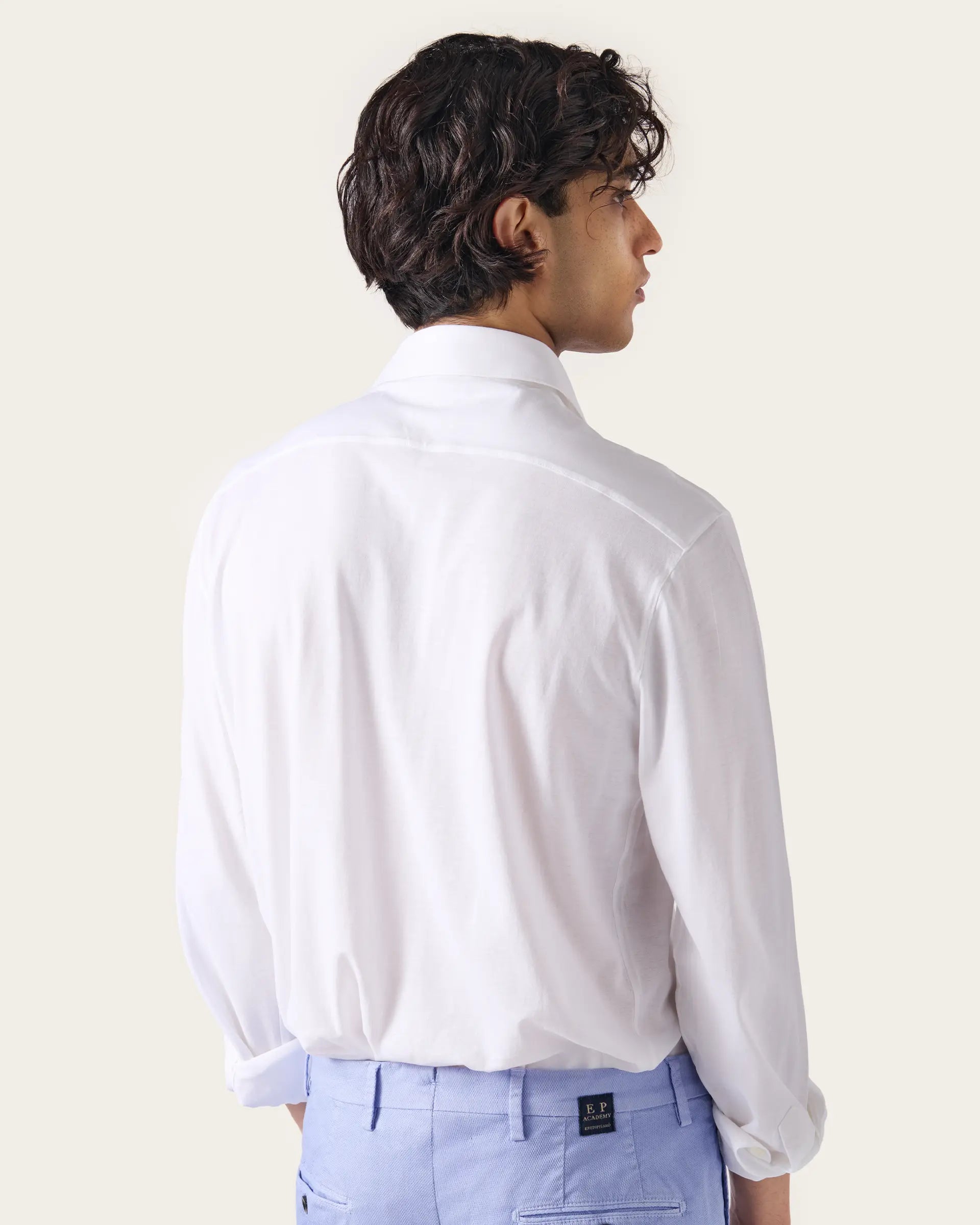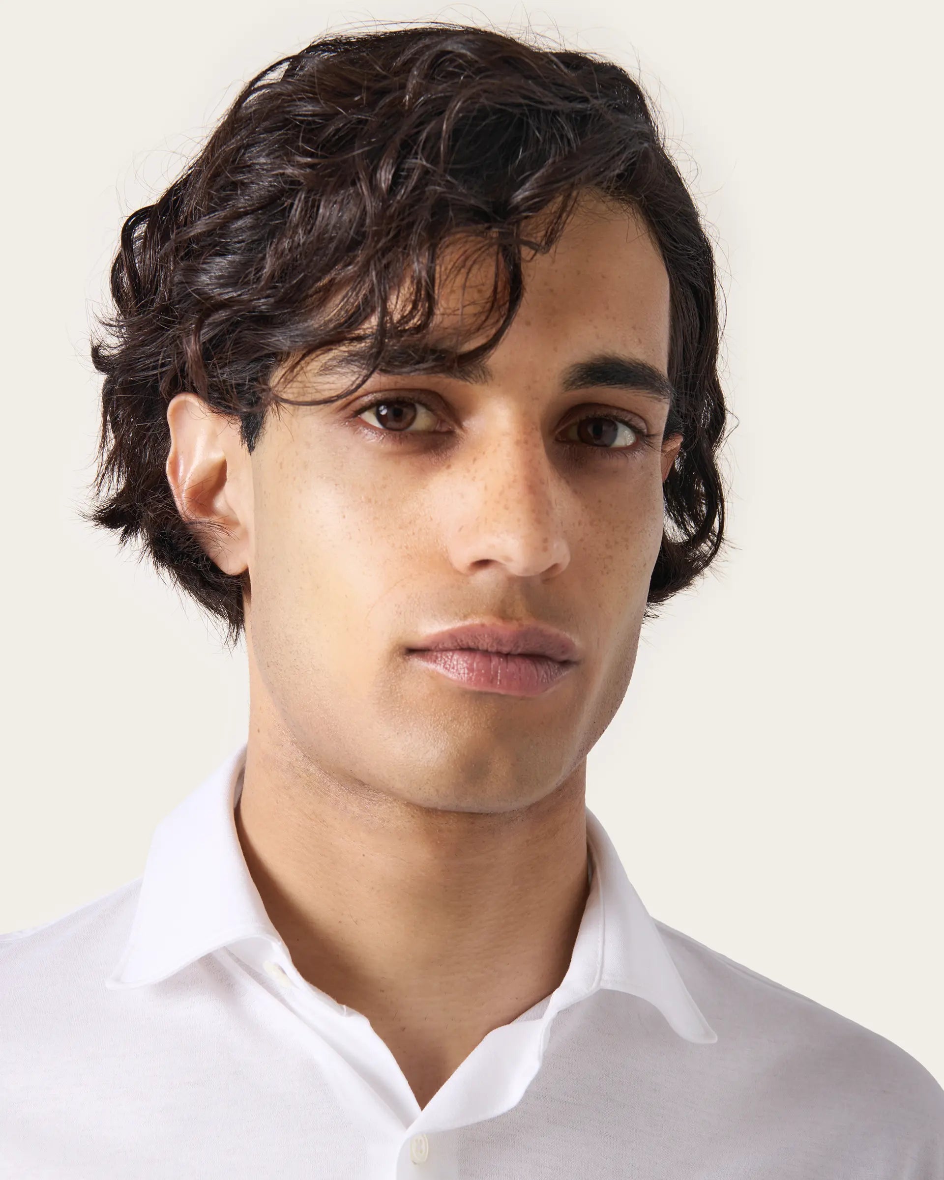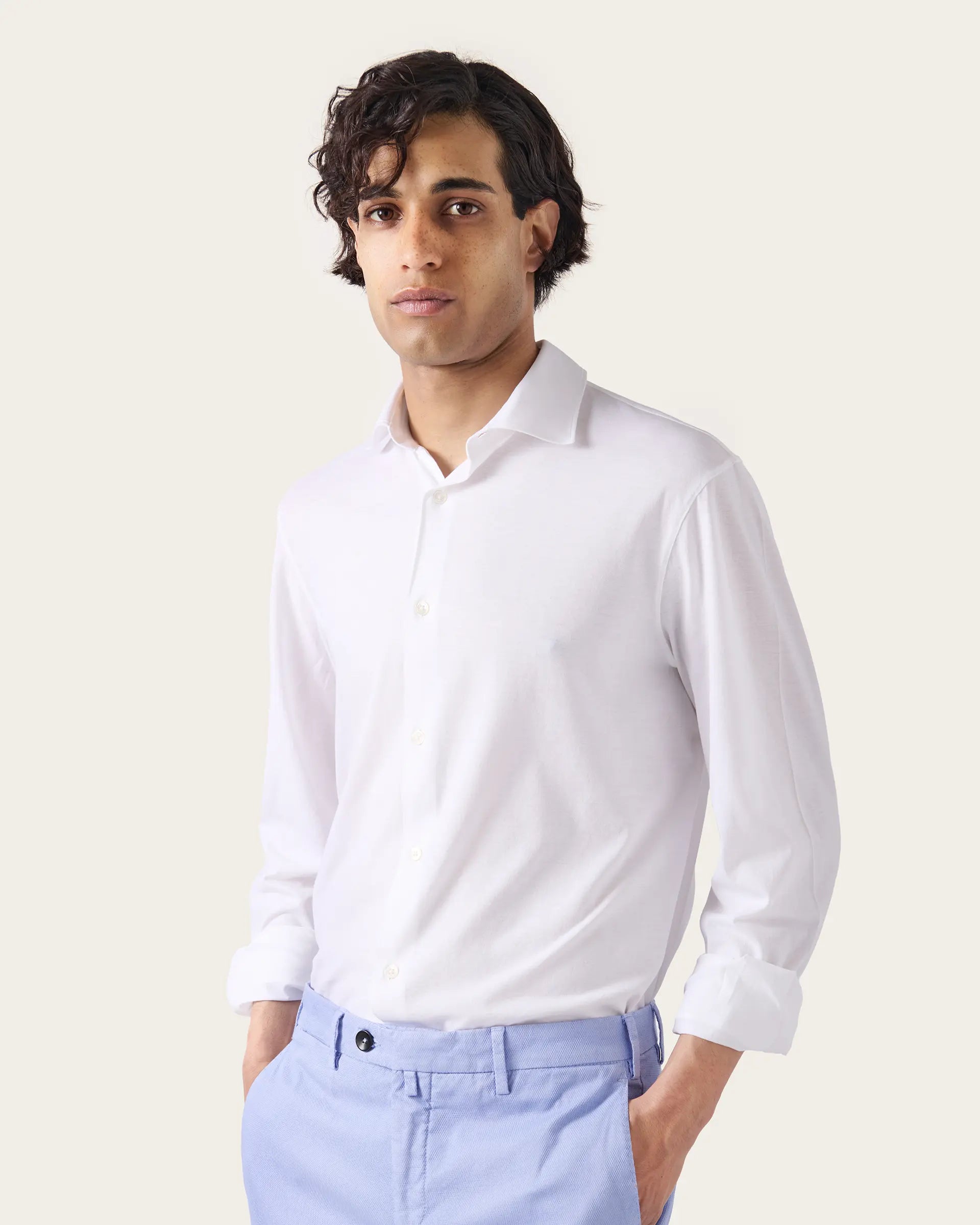 An alternative and seasonal interpretation of the classic shirt, it is made of high-quality pure cotton jersey in a comfortable cut and semi-fitted design. The shirt-style cuffs and collar add a touch of refinement while maintaining a sporty aesthetic, making it perfect to be worn even under a jacket.