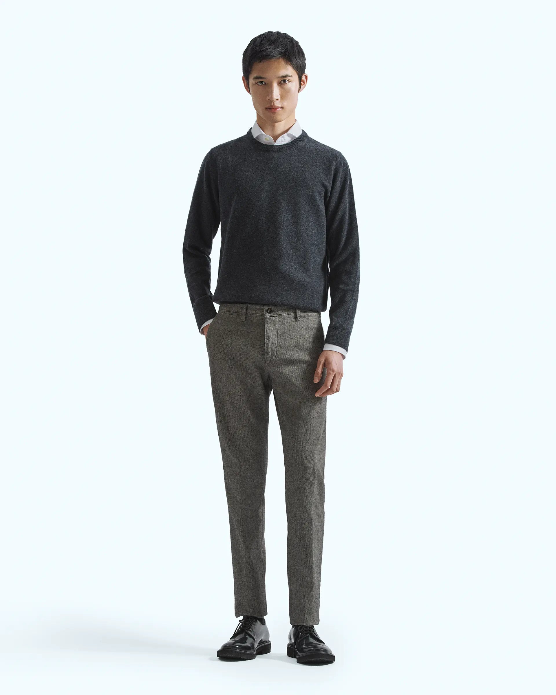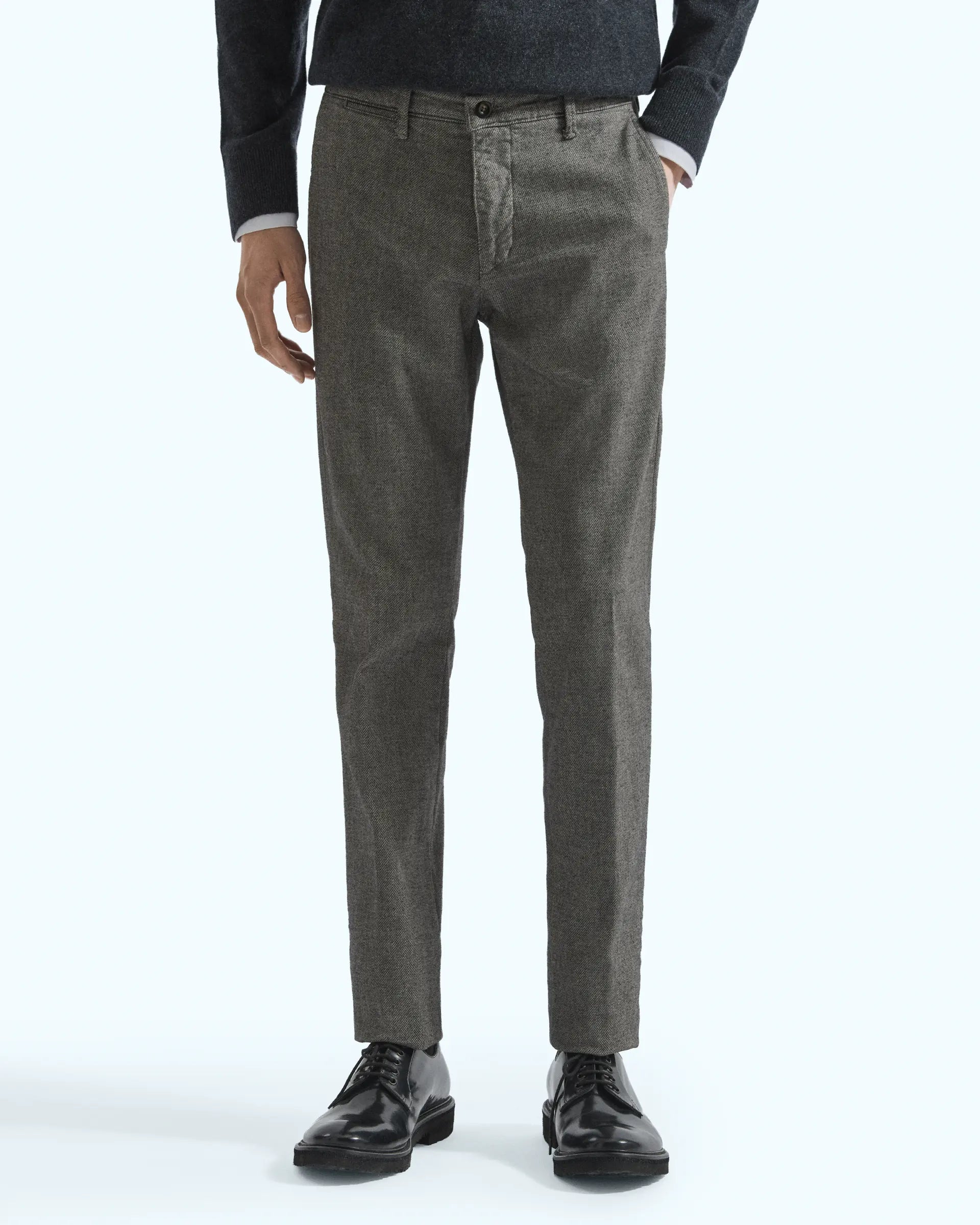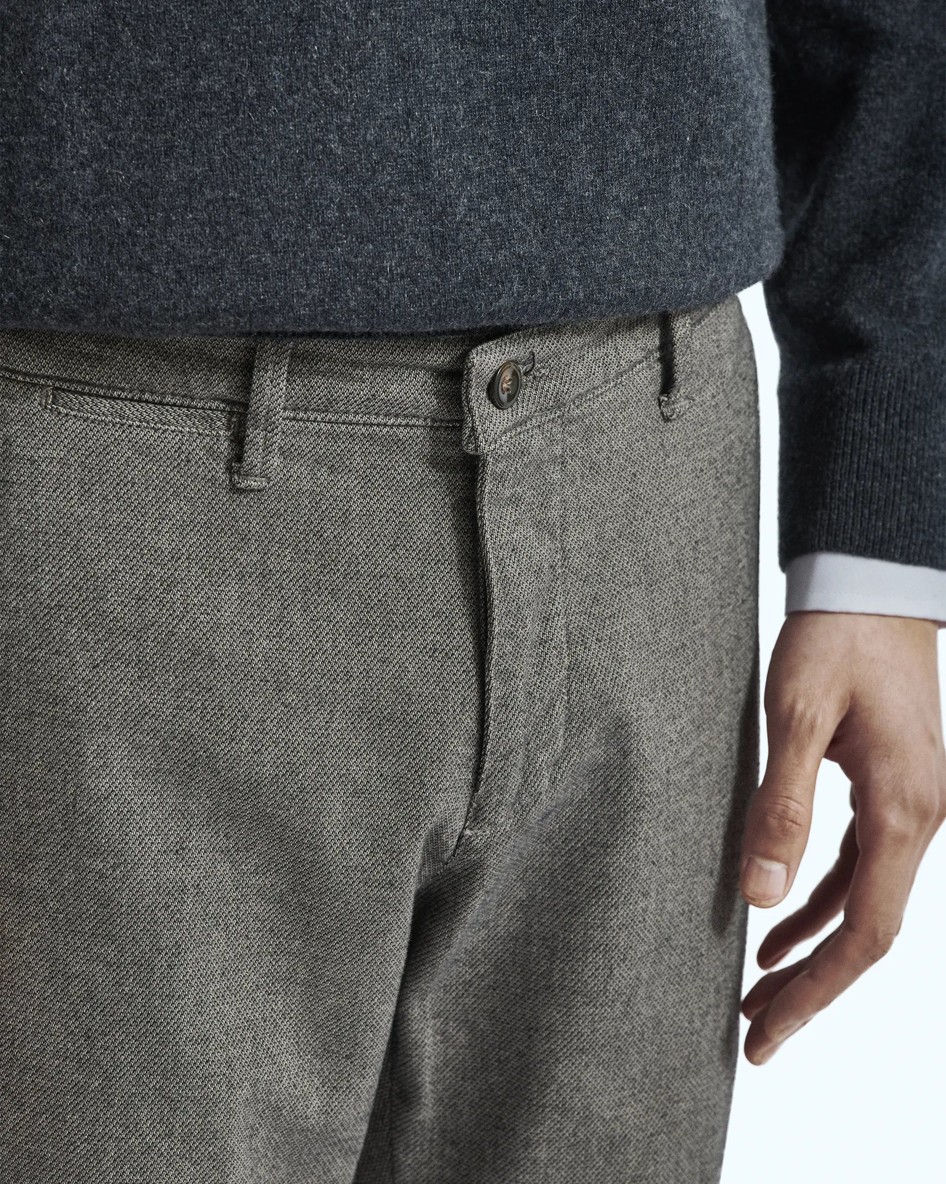 Chinos trousers made of high-weight stretch cotton and combined with a wool-effect texture. The weave and soft feel of the fabric amplify comfort and ensure warmth even on the coldest days while the regular fit guarantees a refined appearance making it perfect for all occasions.