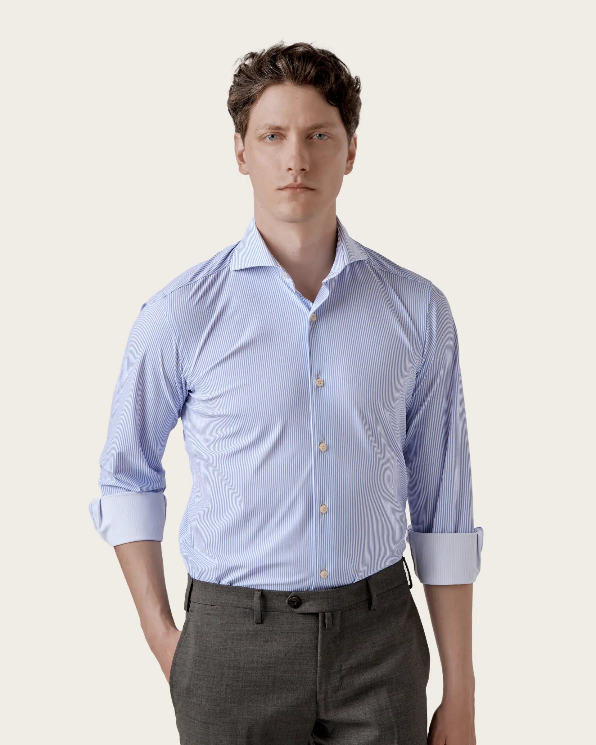 Exclusive and refined shirt made of technical fabric with a sporty vocation that combines with a tailored cut and model to create a garment suitable for different urban and work contexts. The texture is particularly pleasant to the touch and to wear, it offers maximum comfort and allows the freedom of movement of a sports shirt while maintaining a discreet refinement. The functionality of this shirt is completed by a high-performance style, quick drying and anti-crease properties.