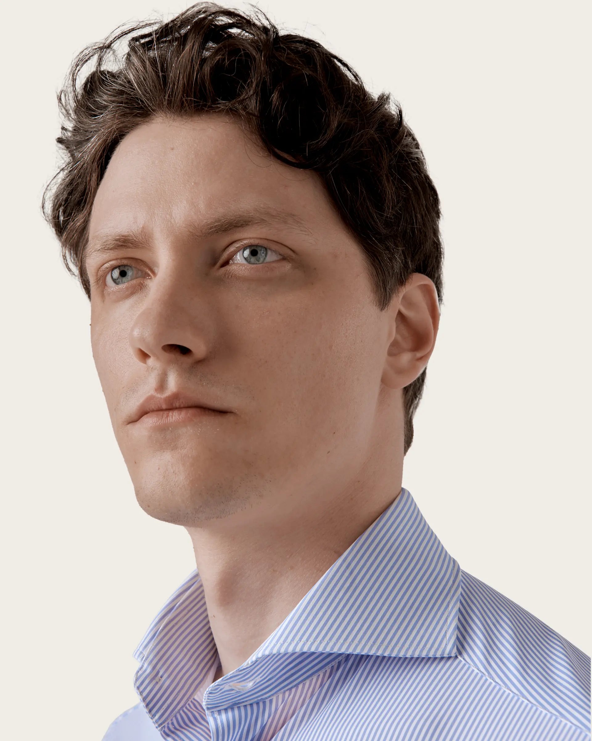 Comfort fit and easy iron blue striped shirt with Florence collar