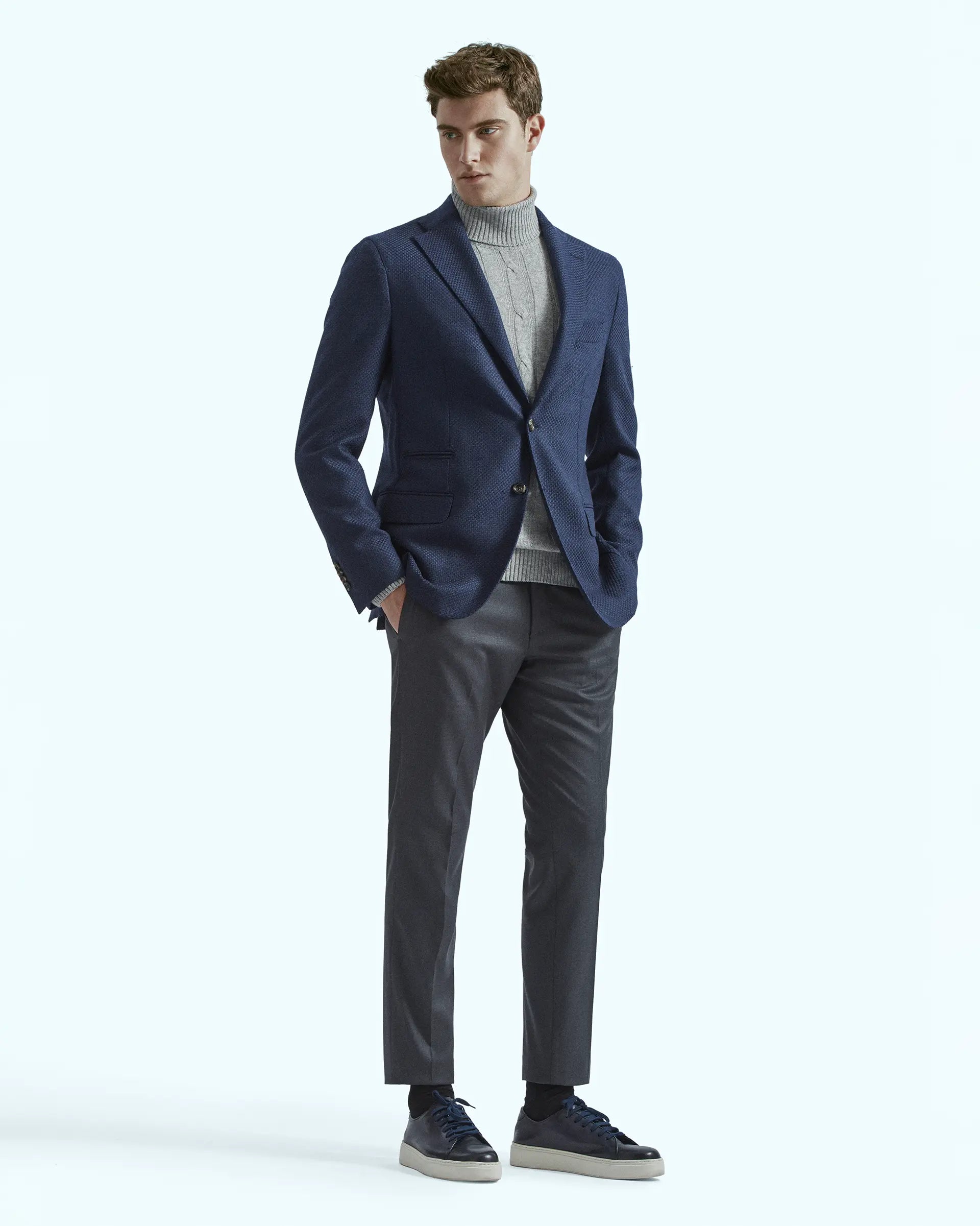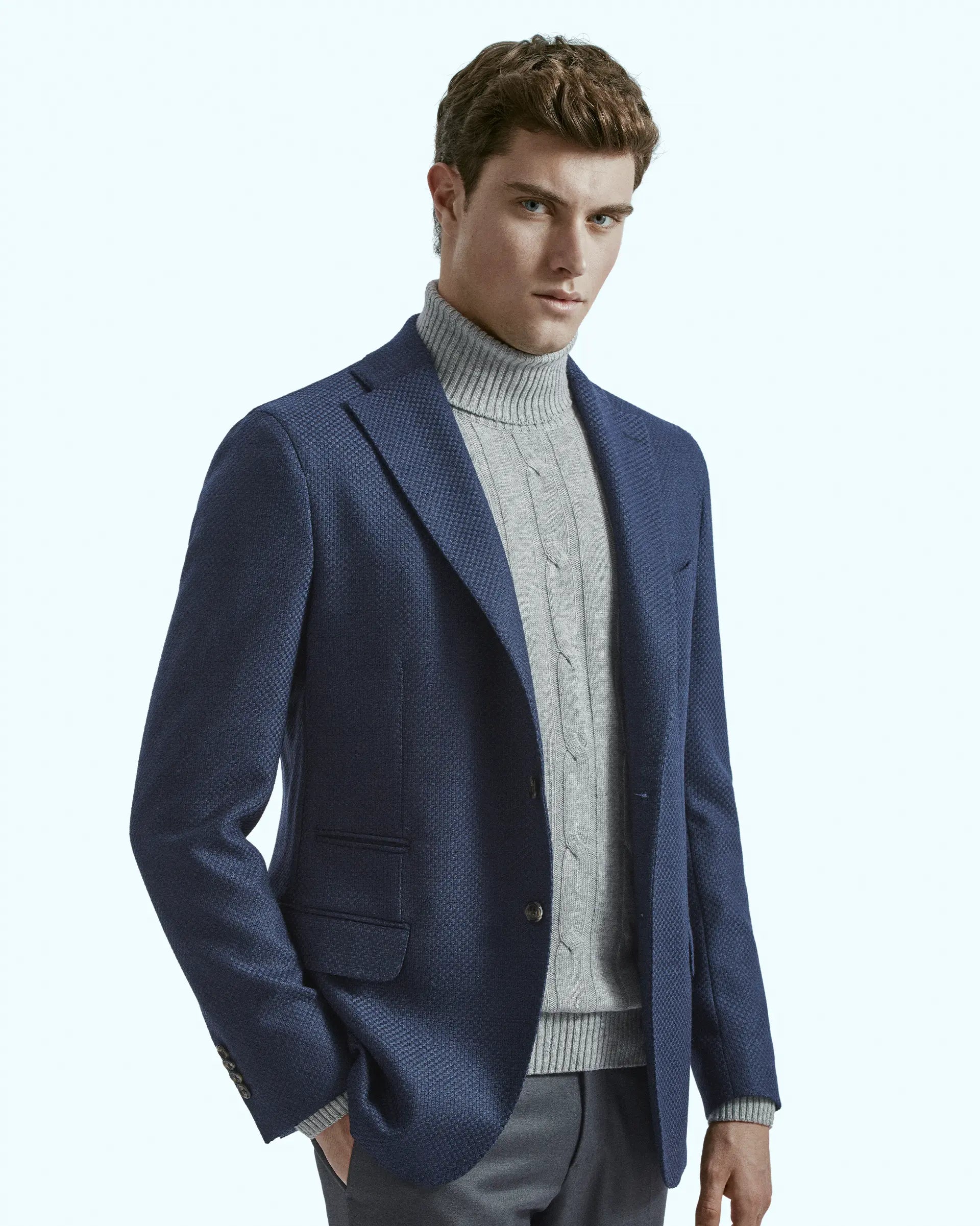 Chaqueta azul en tejido Reda Flexo con textura efecto punto
