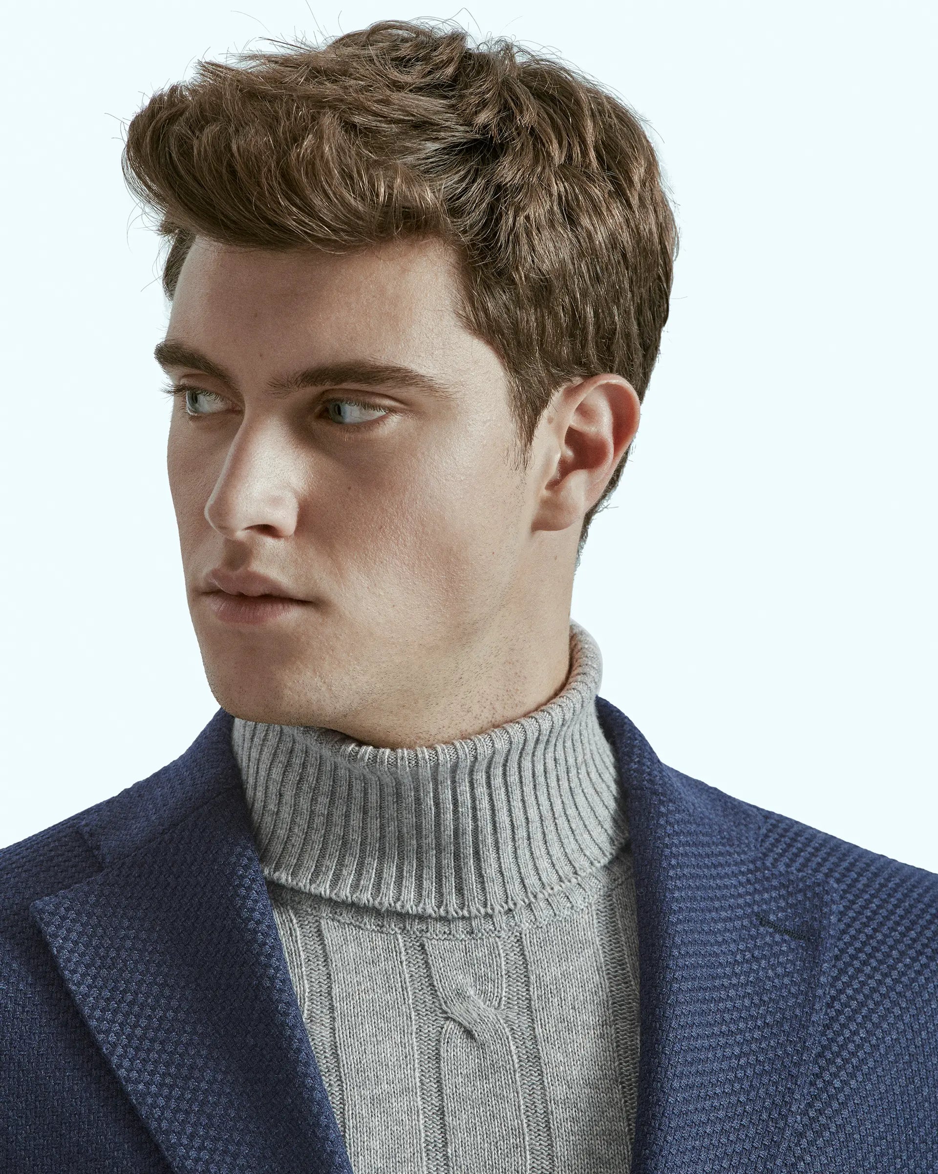 Blazer sencillo sin forro de inspiración sartorial y textura efecto punto confeccionado con tejido Reda de la línea “Flexo” que combina la elegancia natural de la lana con las últimas innovaciones tecnológicas, garantizando un confort, ligereza y transpirabilidad inigualables. Se presenta en el modelo de dos botones con doble abertura, solapa clásica, bolsillos de solapa y bolsillo para billetes. Una prenda capaz de adaptarse a cualquier ocasión.