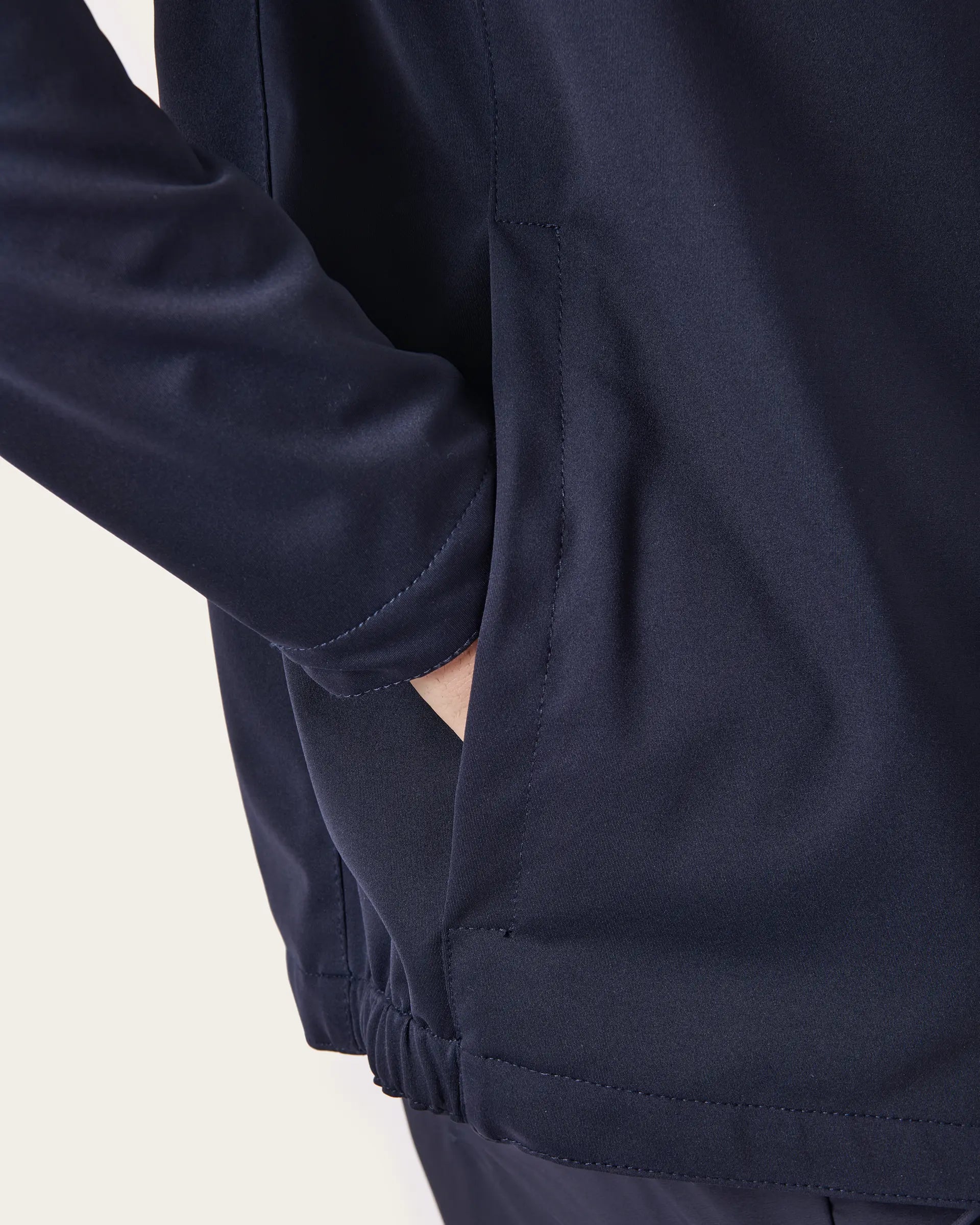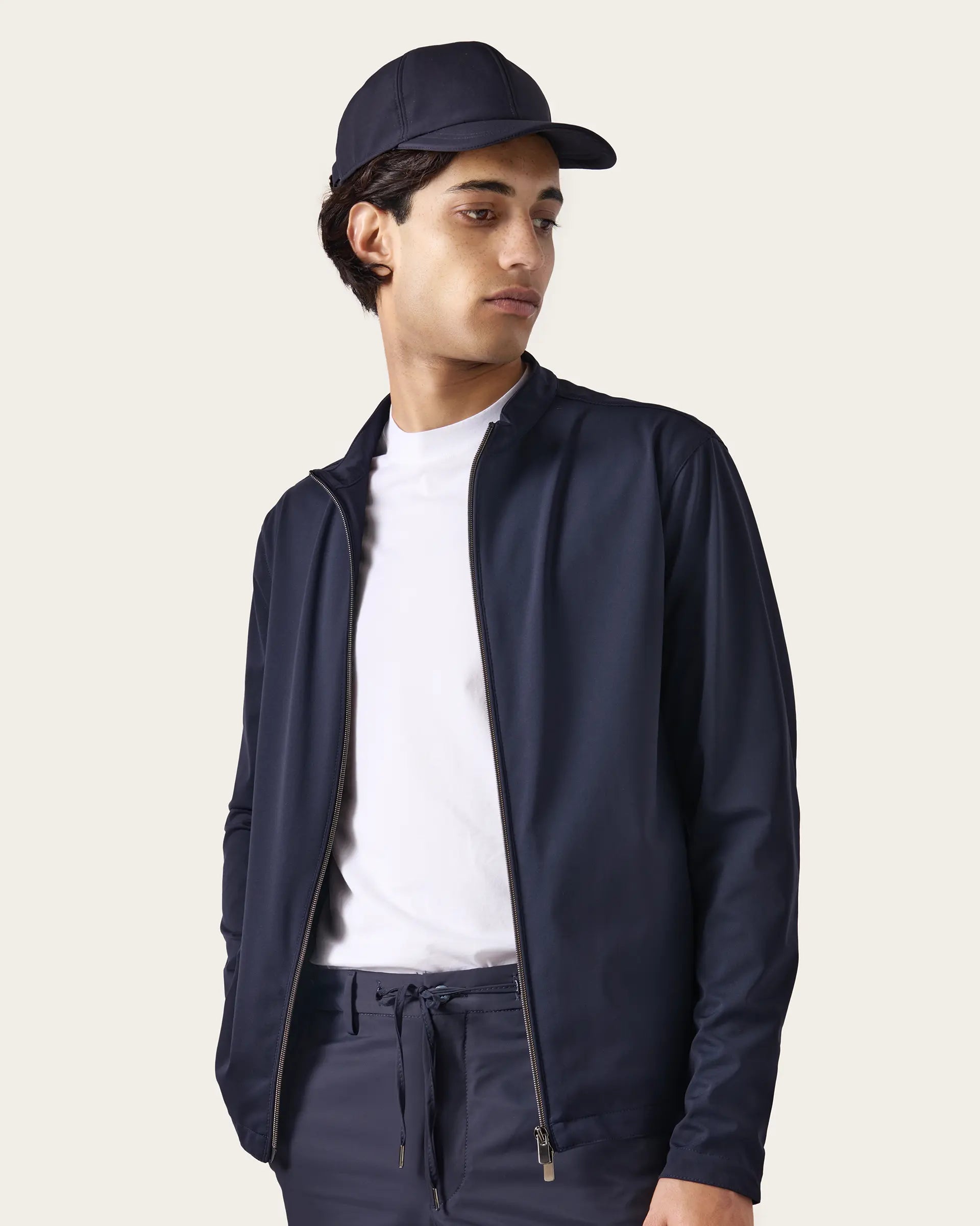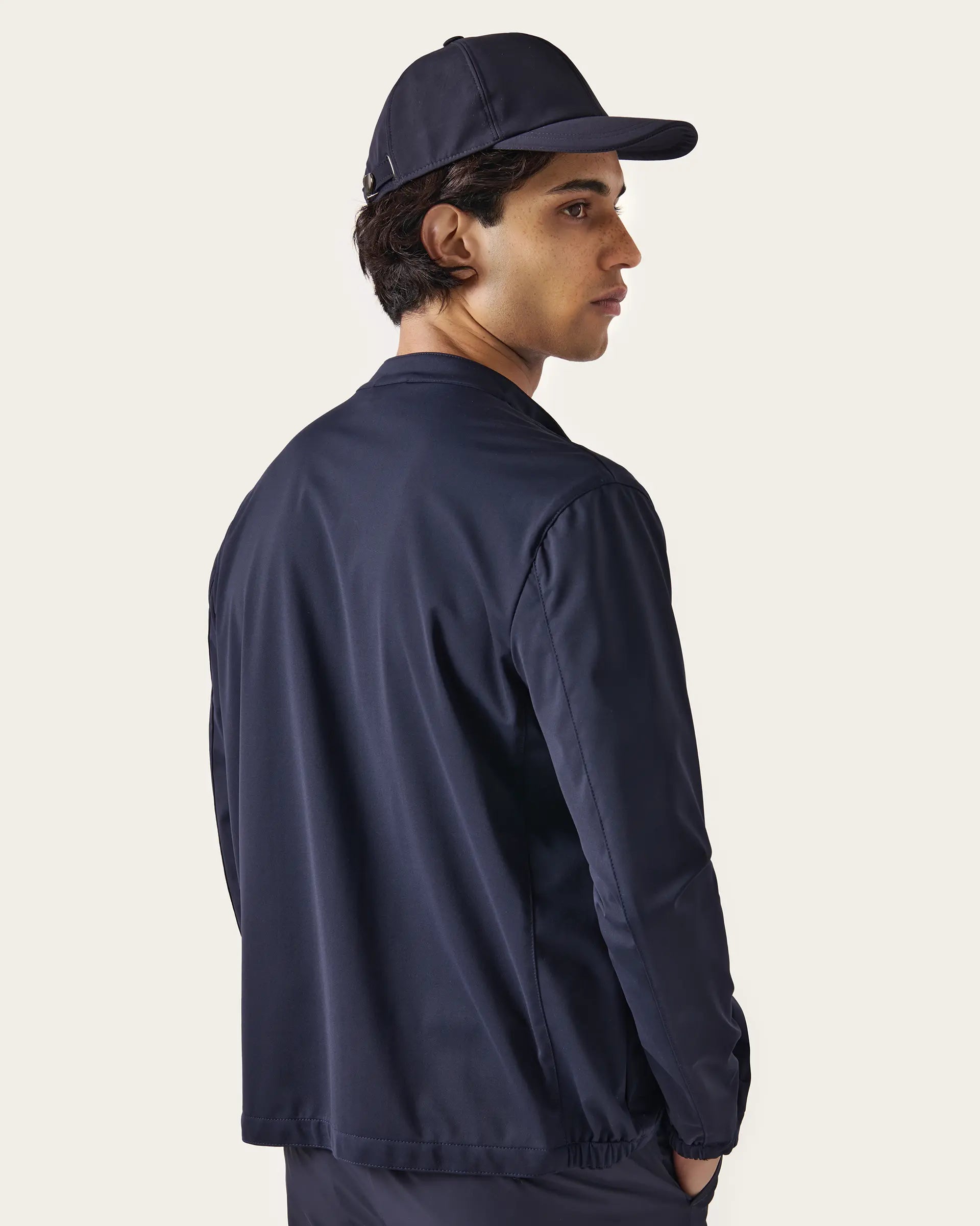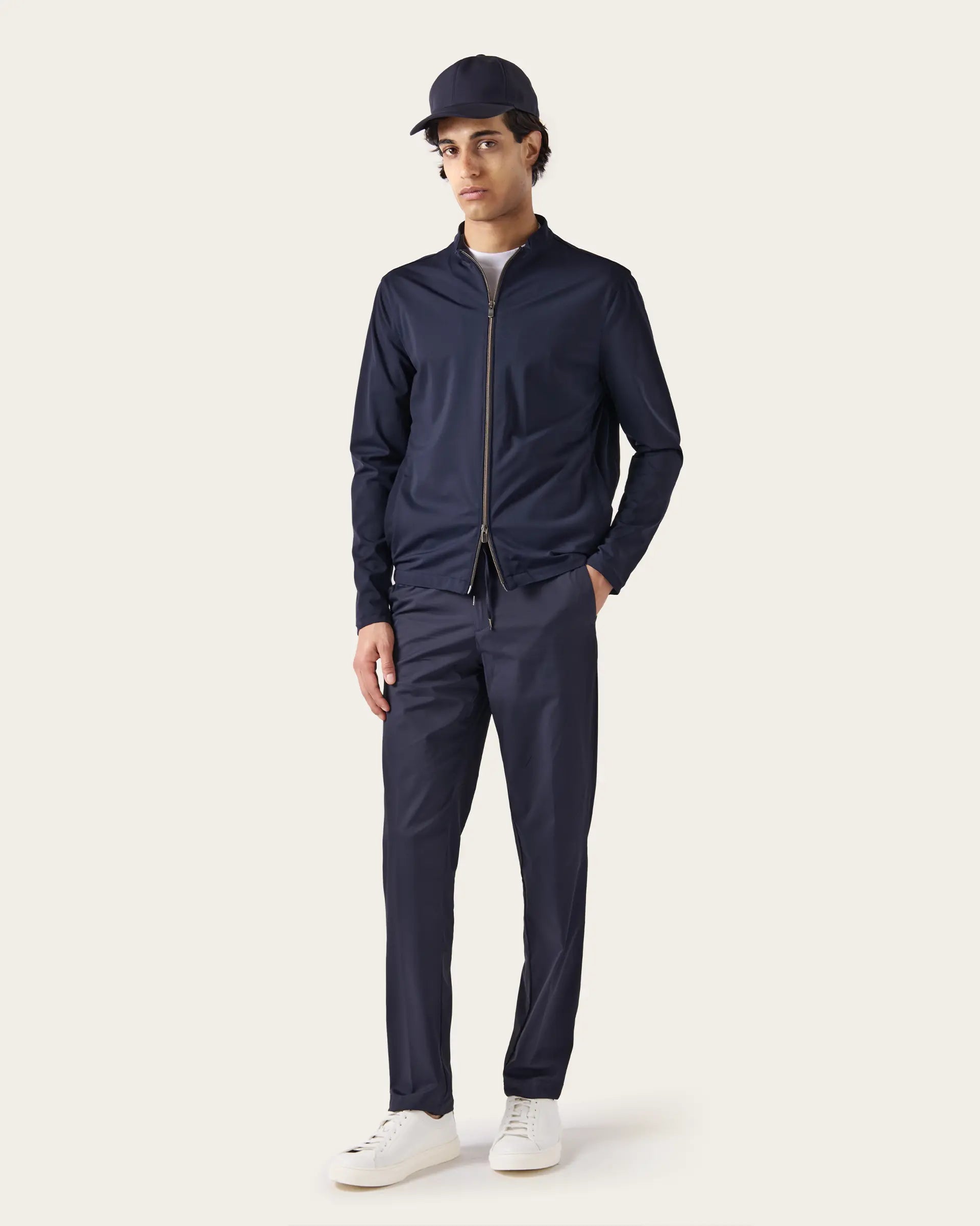The sporty and essential taste of this jacket is enriched by an innovative technical fabric that combines a highly breathable stretch material with a rain and windproof treatment. Lightweight and completely unlined, it is designed to experience outdoor and metropolitan situations with a personal and refined style. The straight fit slightly tapered at the bottom guarantees a functional and elegant line.
