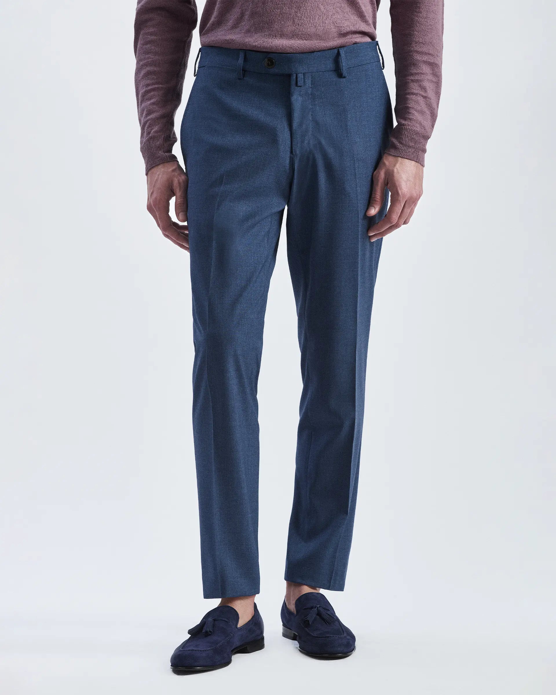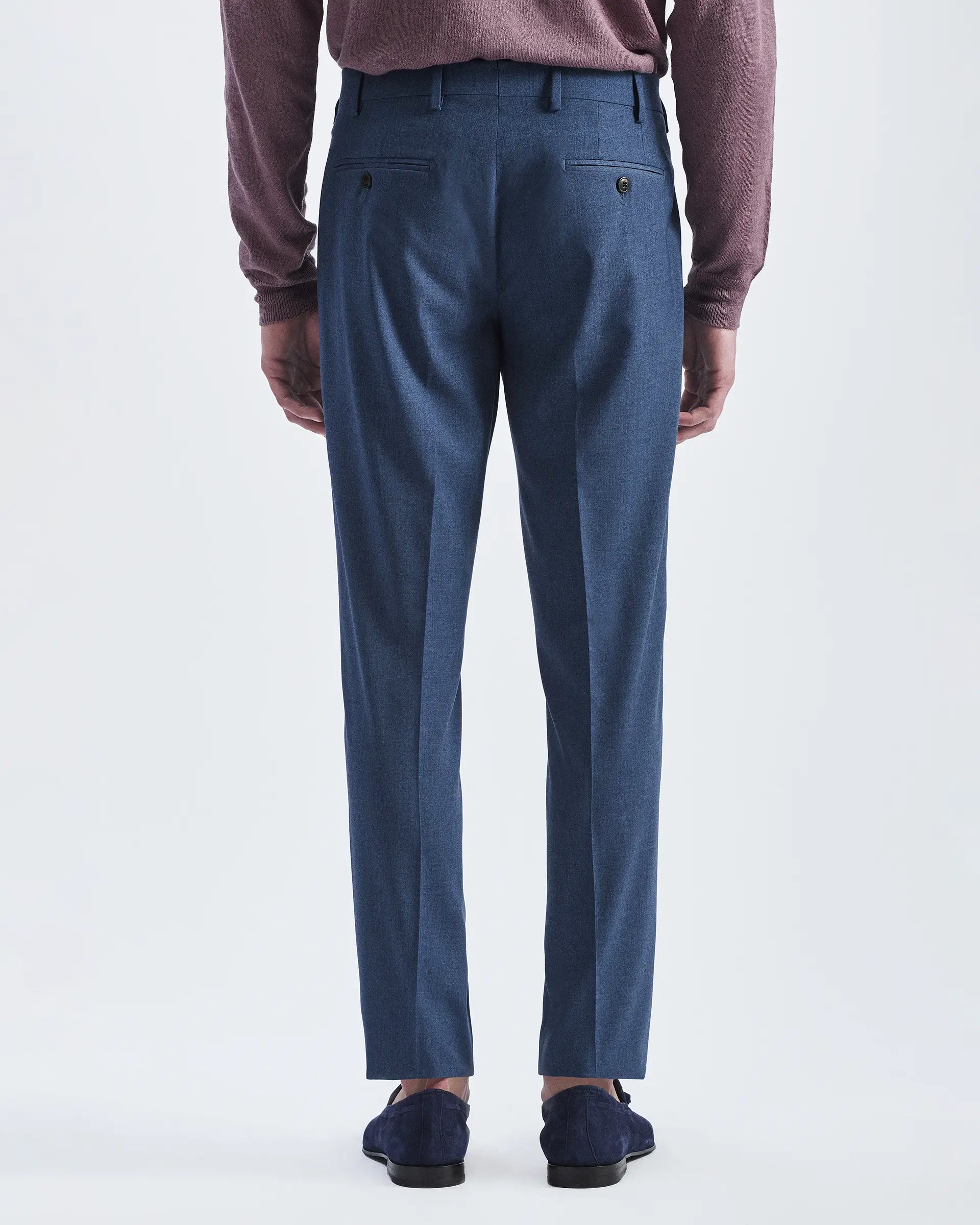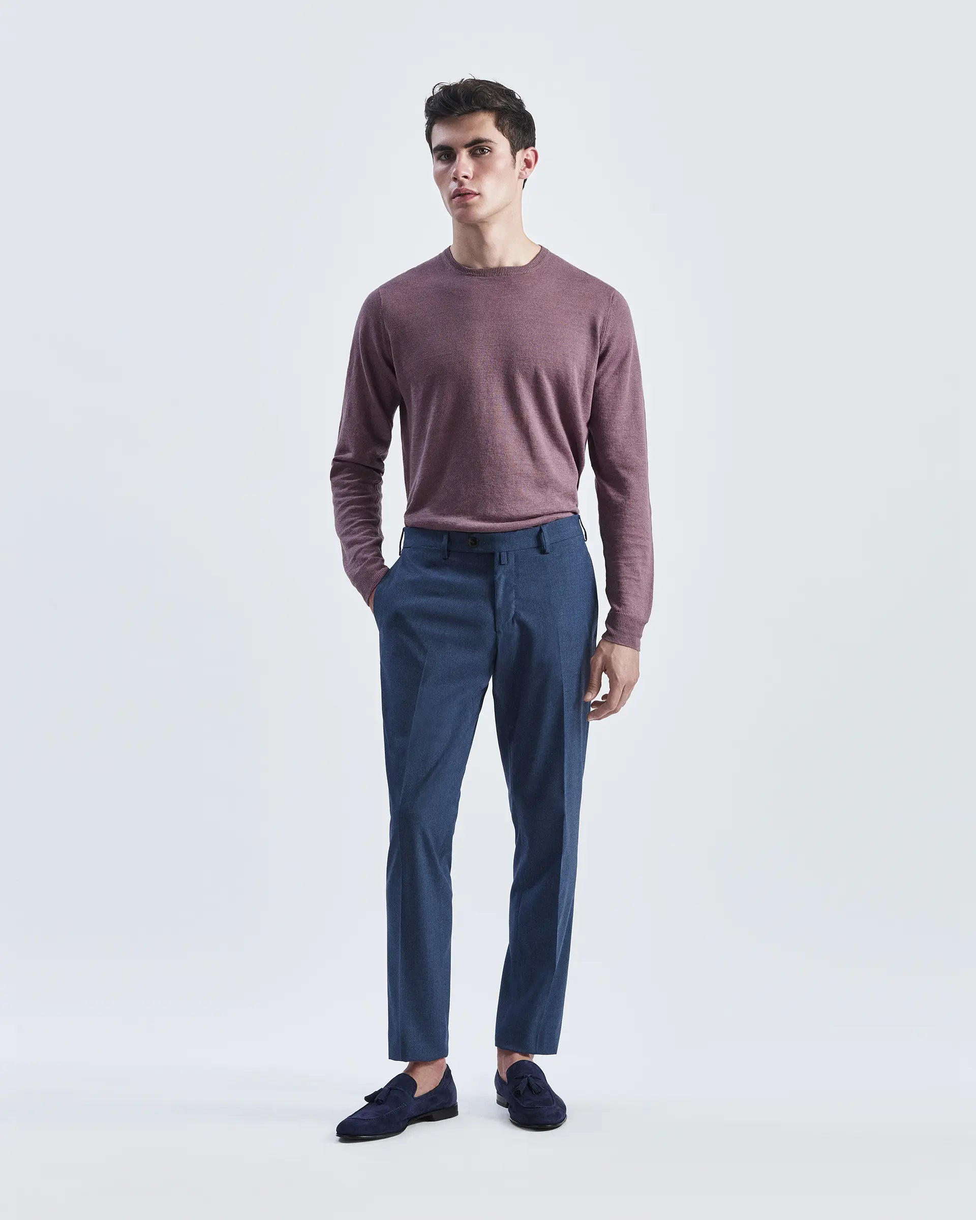 Pantalón elegante, un imprescindible atemporal en el armario masculino. El corte sastre se presenta en una suave mezcla de lana y viscosa, dando vida a un pantalón clásico de líneas limpias y un ajuste perfecto en la pierna. Una garantía de estilo para todas las ocasiones.