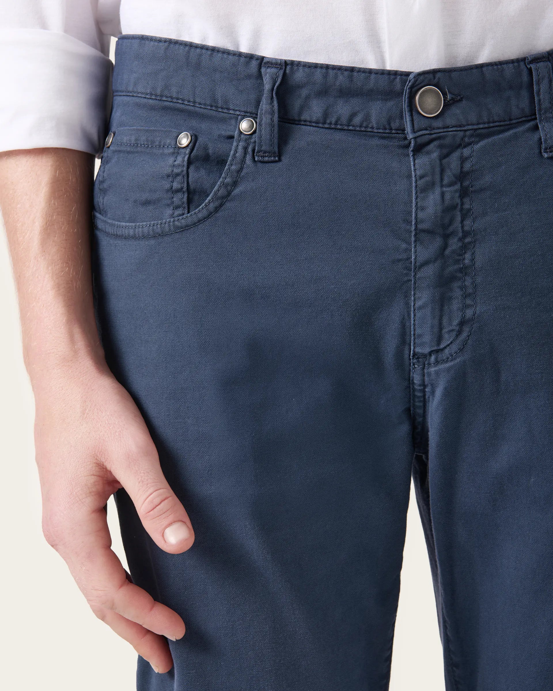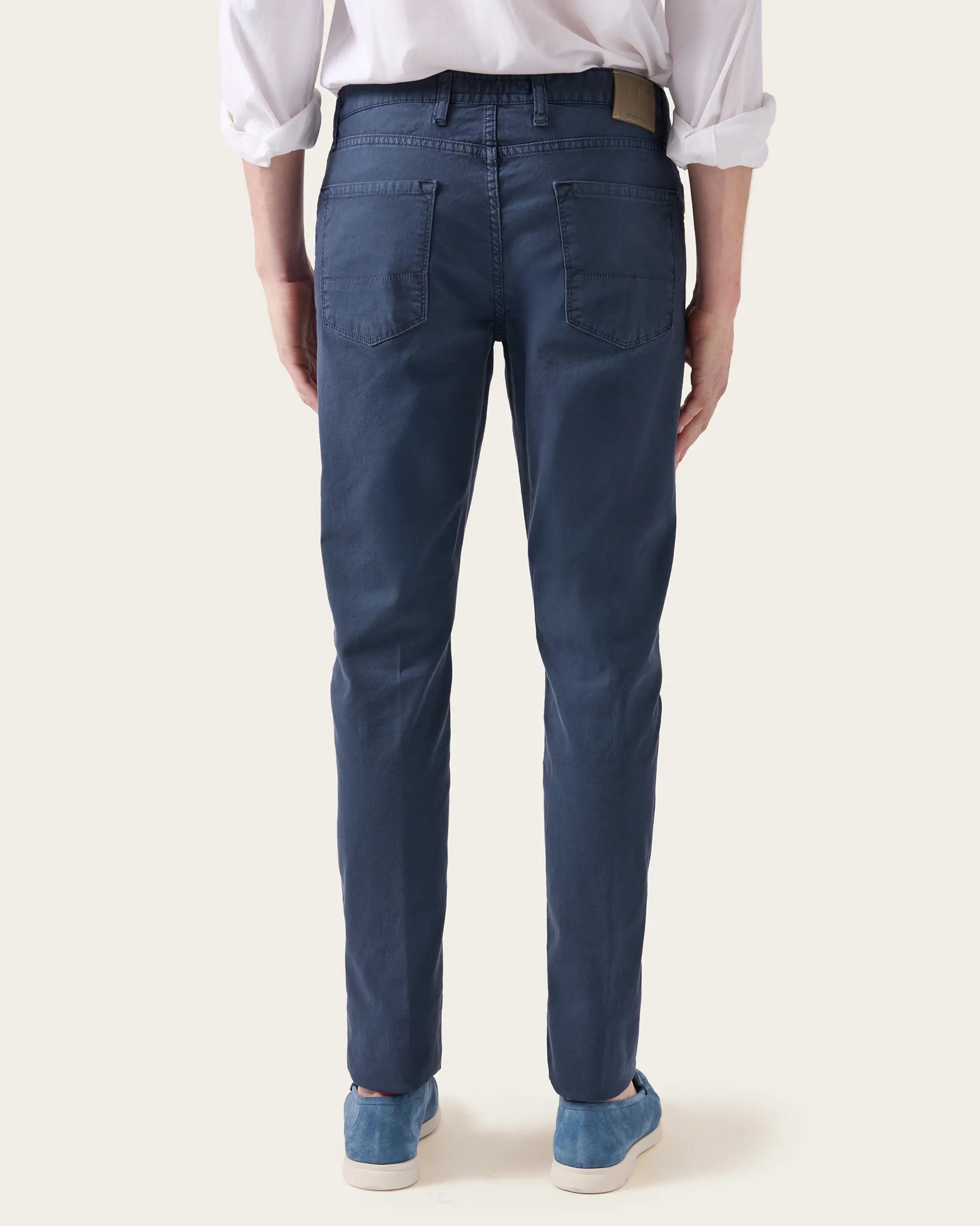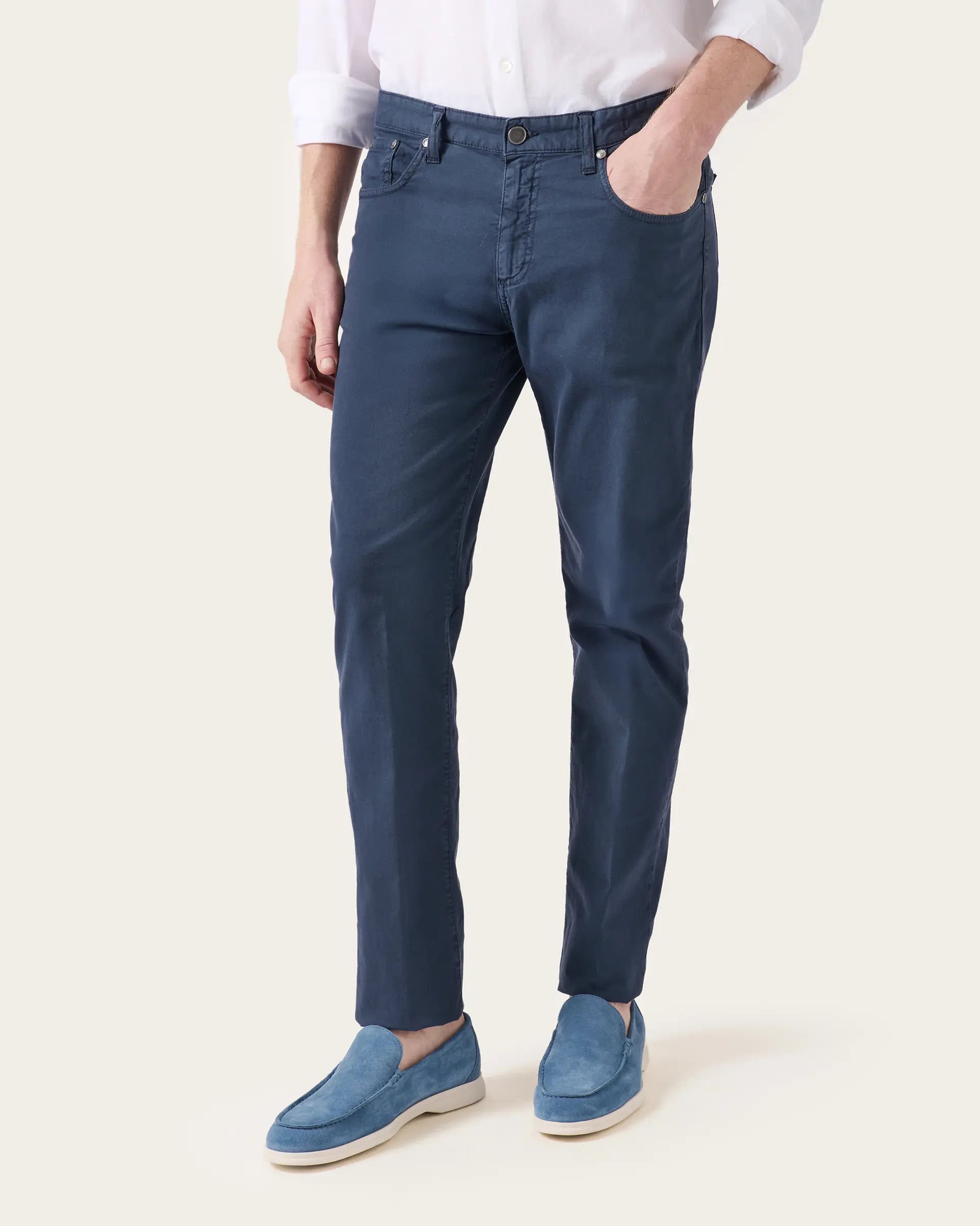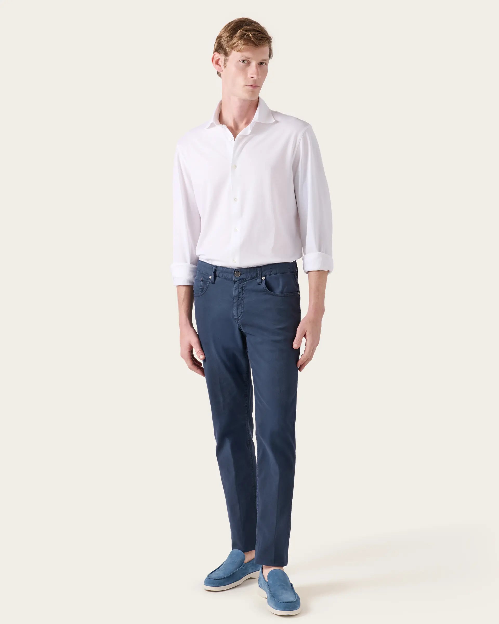 The informal and sporty character of the five-pocket trousers is enriched by the value and charm of sartorial care. The structure of the fabric guarantees the garment a high resistance to wear and washing while the garment dyeing process guarantees unique shades of color and gives softness to the trousers. The 5-pocket trousers are the essential garment with which to create infinite combinations of outfits ranging from refined sporty to a gritty classic with strong style characteristics.