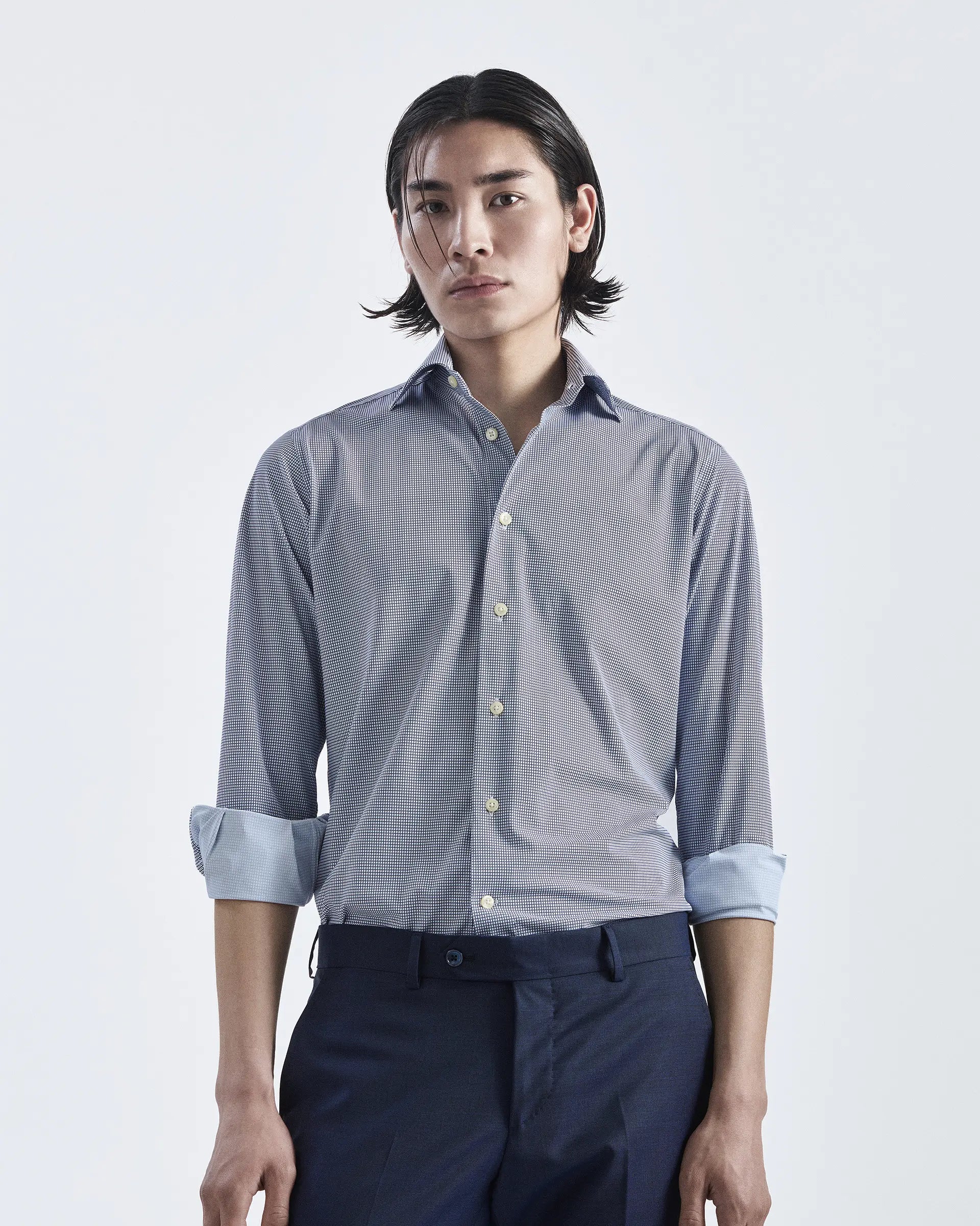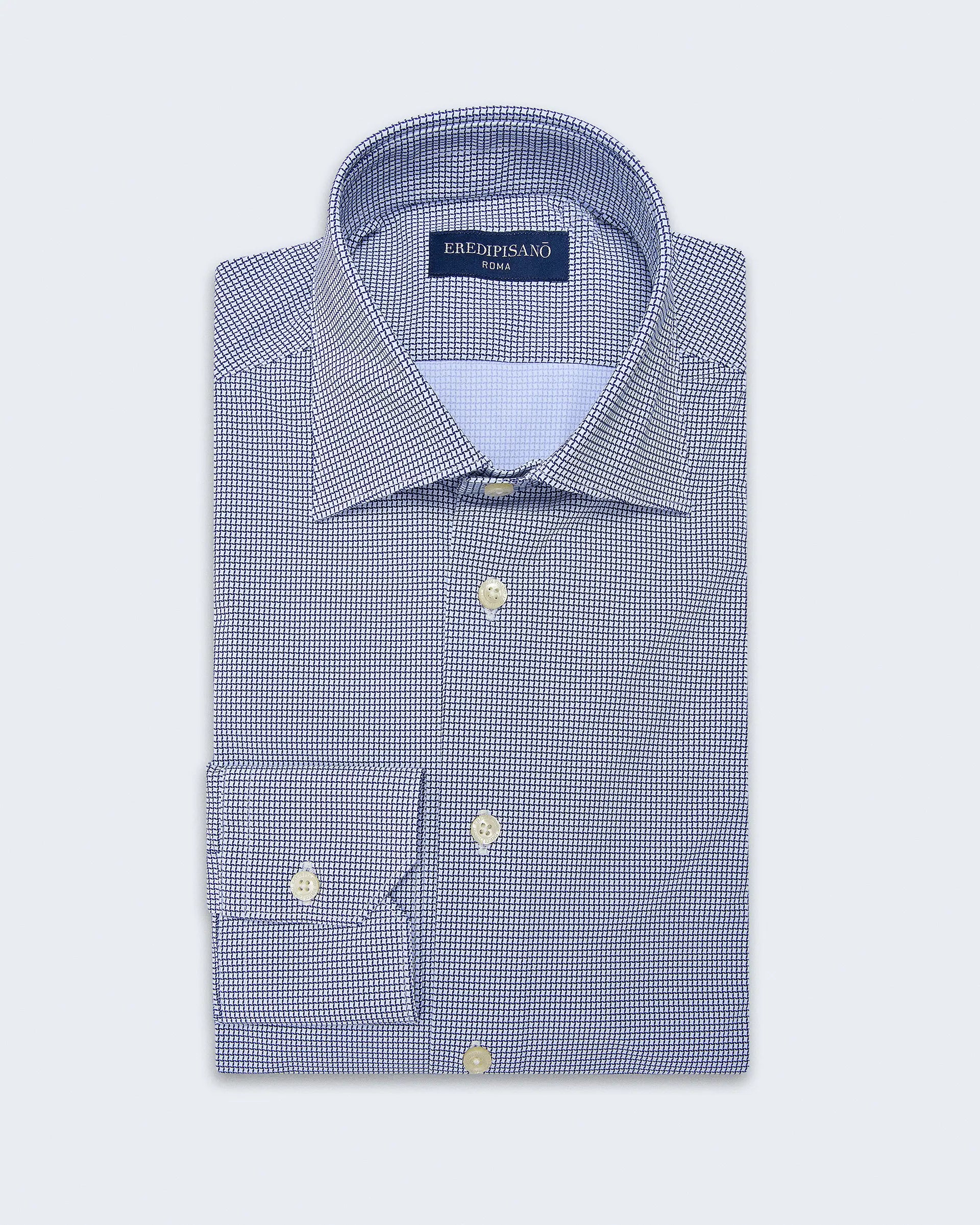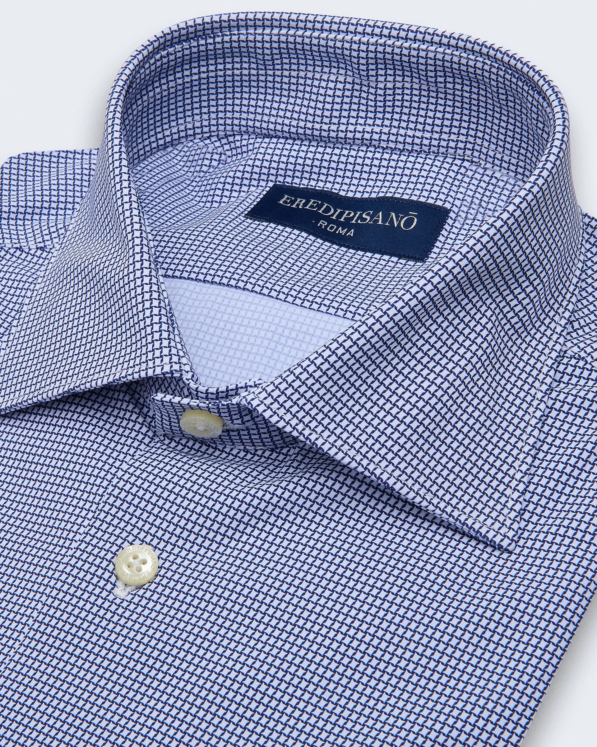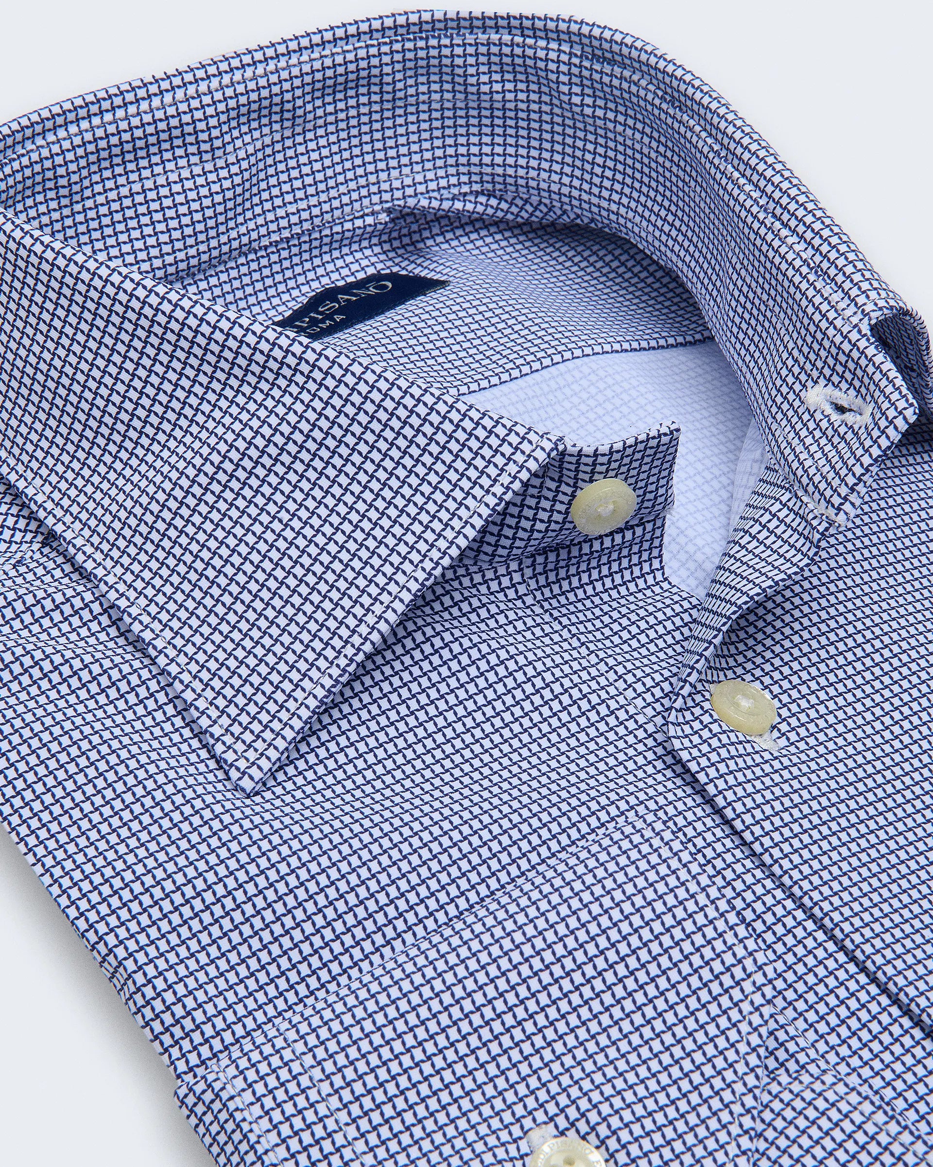Camisa azul con microestampado, fácil de planchar y de ajuste cómodo