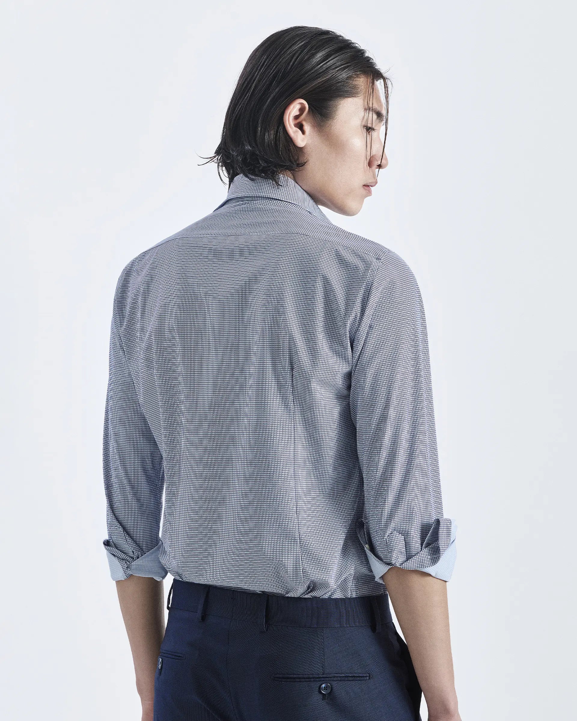 Camisa confeccionada a partir de una mezcla de hilos técnicos donde la elegancia casual de su textura deportiva se combina con el corte entallado para crear una prenda adecuada para diferentes contextos urbanos y laborales. El tejido, agradable al tacto y al uso, ofrece todo el confort y la libertad de movimientos de una camiseta deportiva manteniendo un refinamiento discreto. Perfecto para quienes buscan una prenda versátil que pueda usarse con facilidad en diferentes contextos.