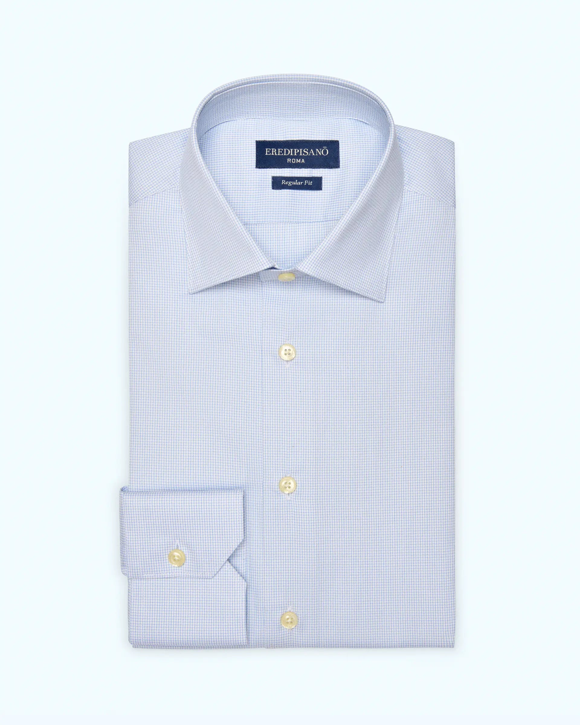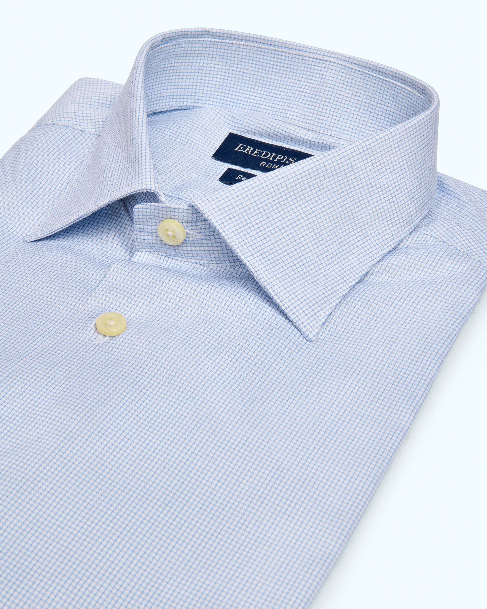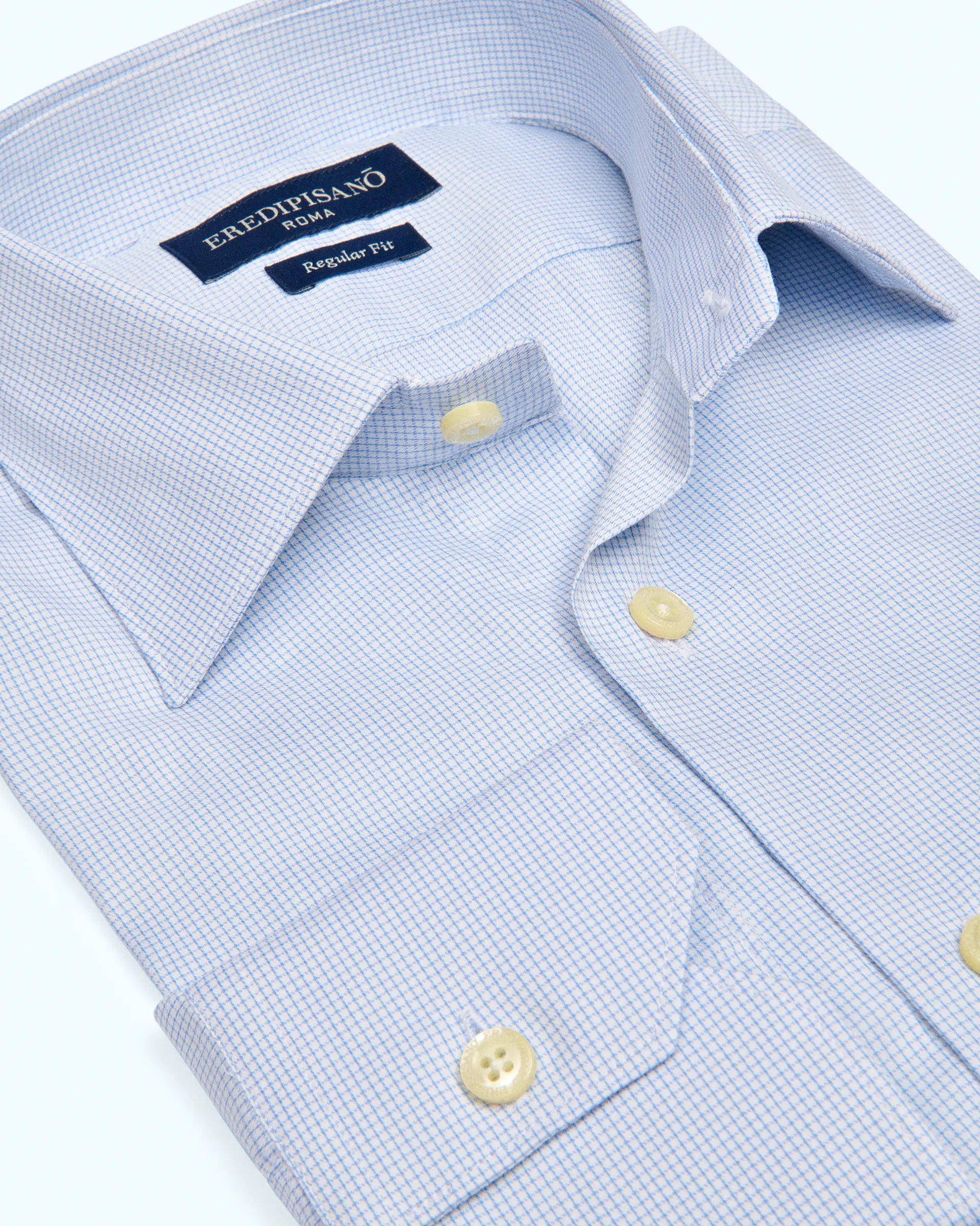 Camisa de cuadros azul claro en algodón elástico confort de corte regular con cuello Milán