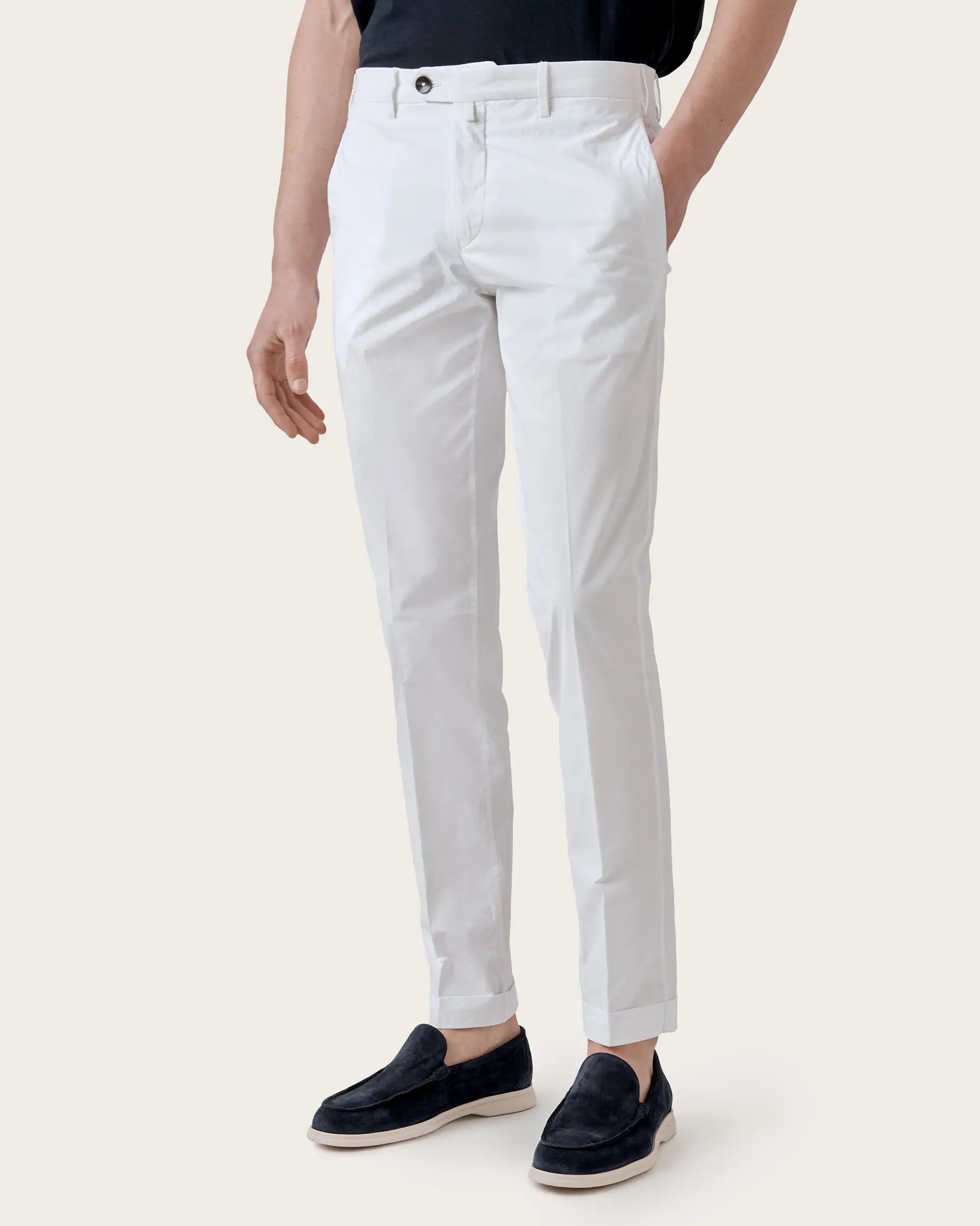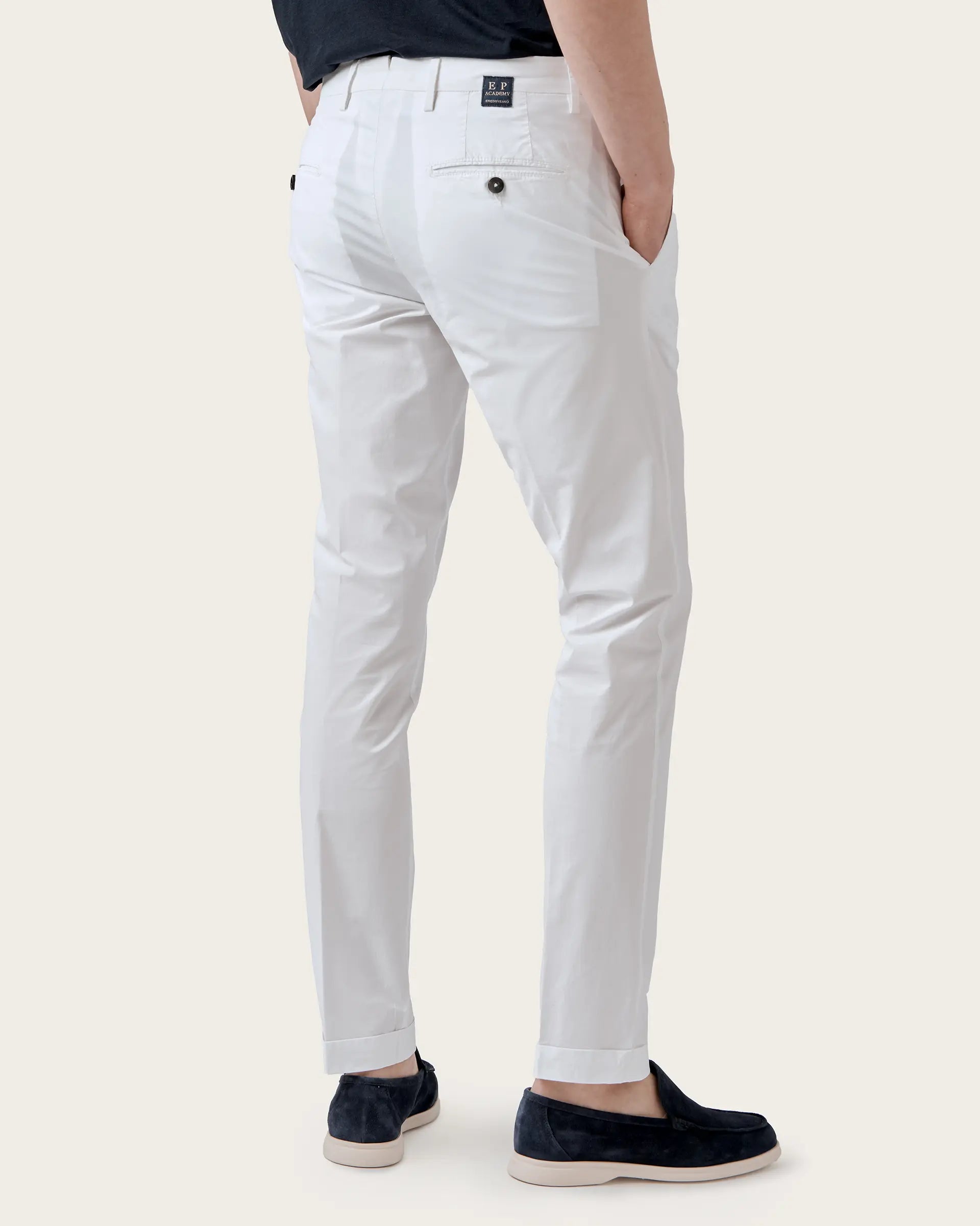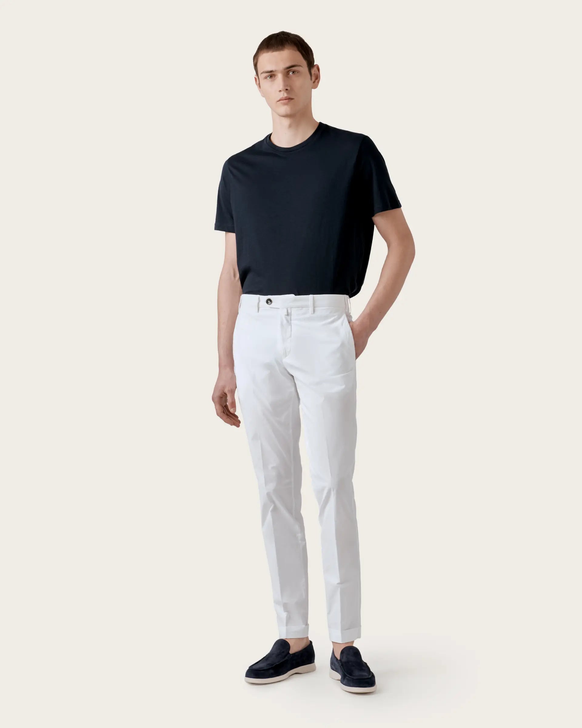 Chino trousers in stretch cotton herringbone, garment-dyed, featuring a texture with a delicate tone-on-tone design. A garment made of stretch cotton, to ensure that elegance and comfortable fit required by today's men's wardrobe. The garment dyeing adds a pleasant chromatic effect to a smart casual garment, enhancing your outfits with sobriety and elegance.