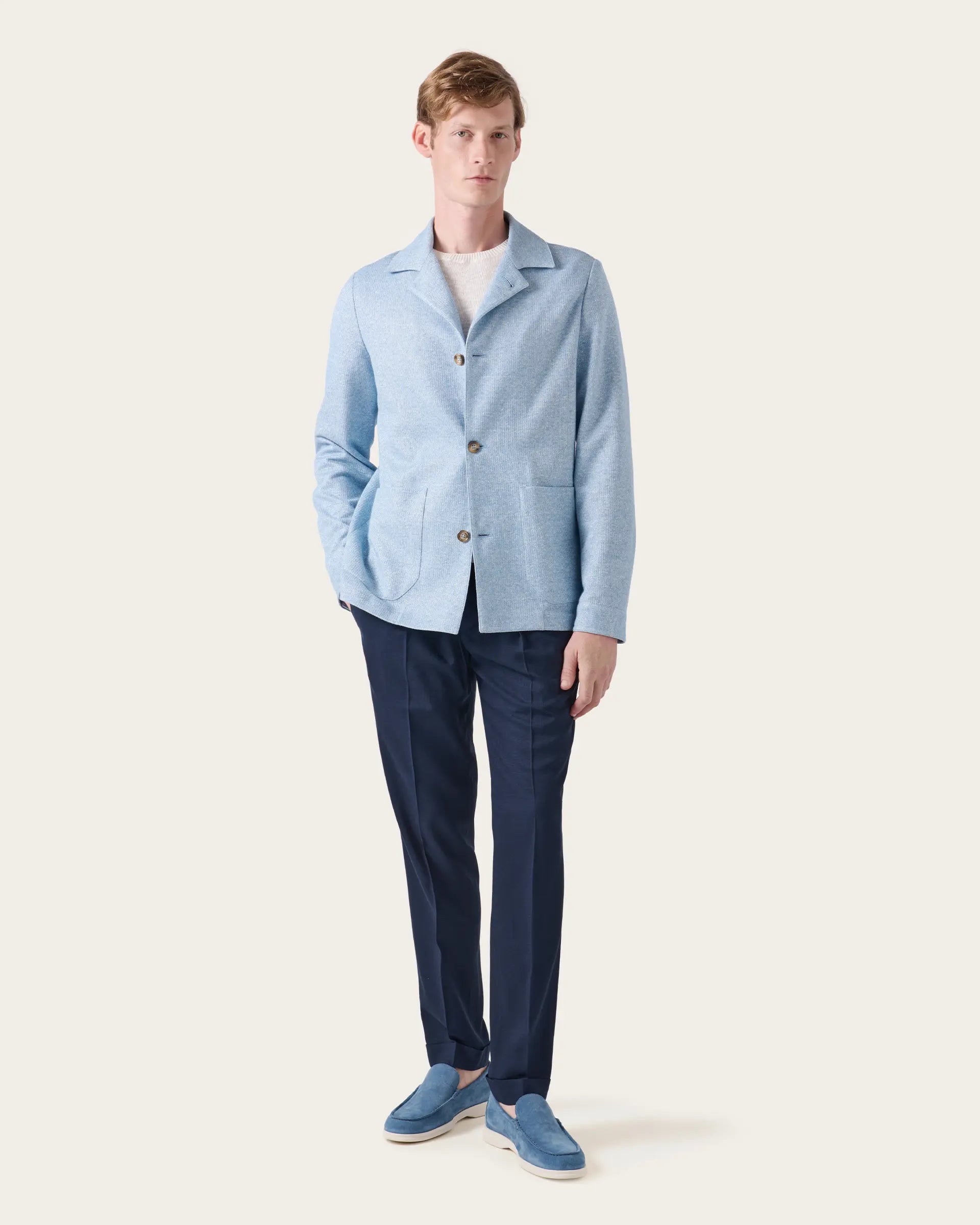 The shirt jacket is the proposal that responds to the needs of the modern man; a functional urban garment, easy to wear and that lends itself to different combinations and in which the sartorial mold of our jackets echoes. Perfect to be used both as a light blouson and as layering for the start of the season, it is presented in a linen and cotton fabric with a two-tone effect that gives the garment refined glamour.