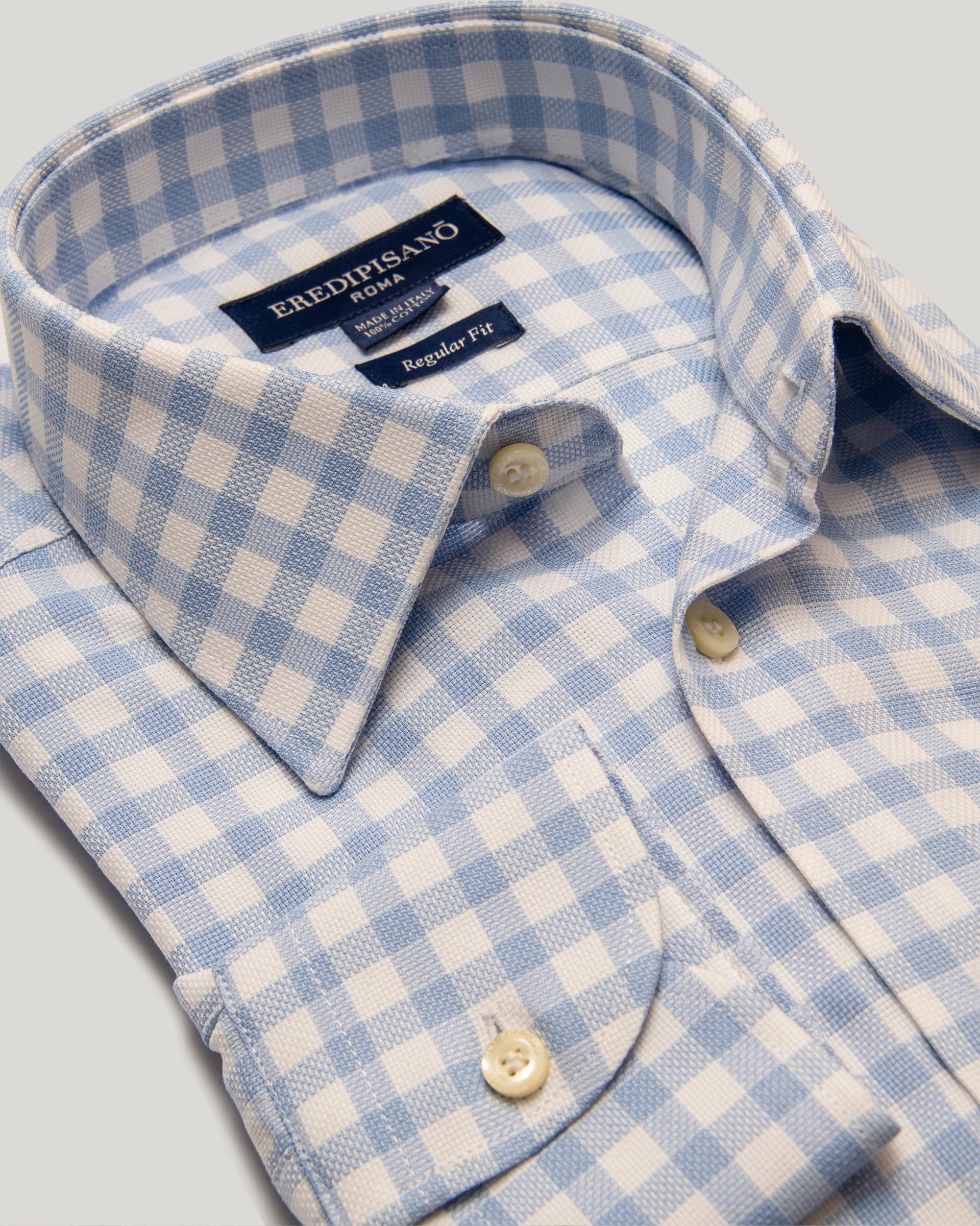 Light blue soft touch checked shirt in pure cotton regular fit Canclini fabric