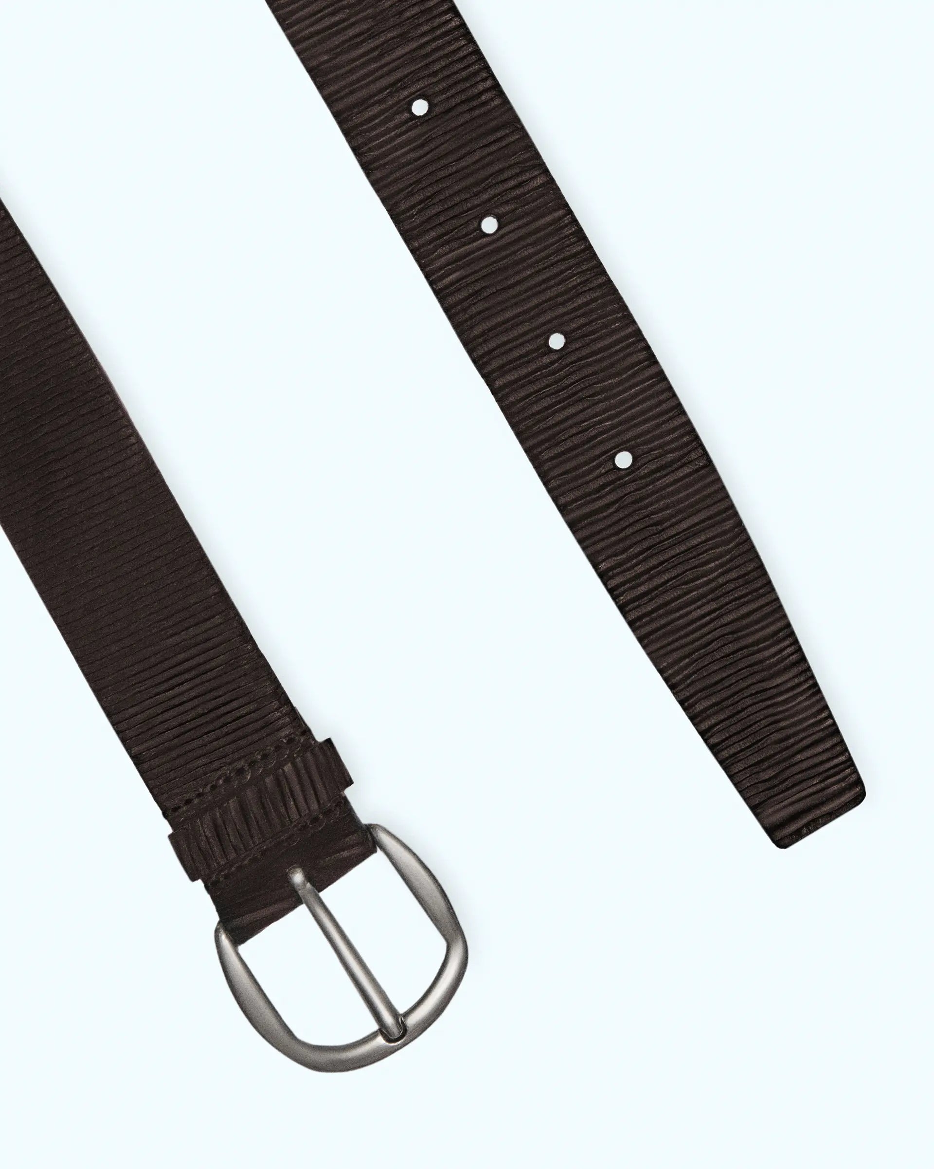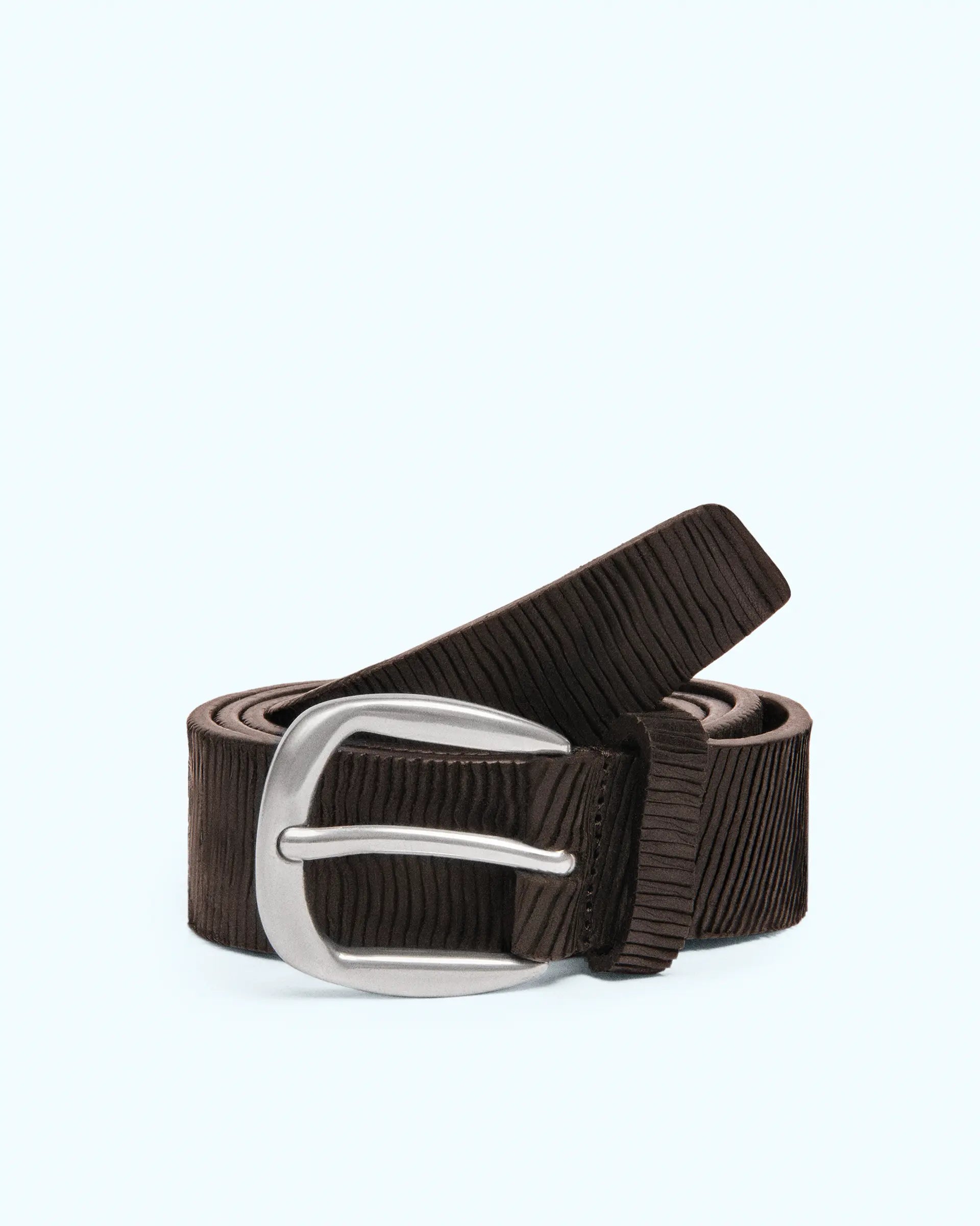 Cinturón de piel marrón con estampado de corteza de árbol