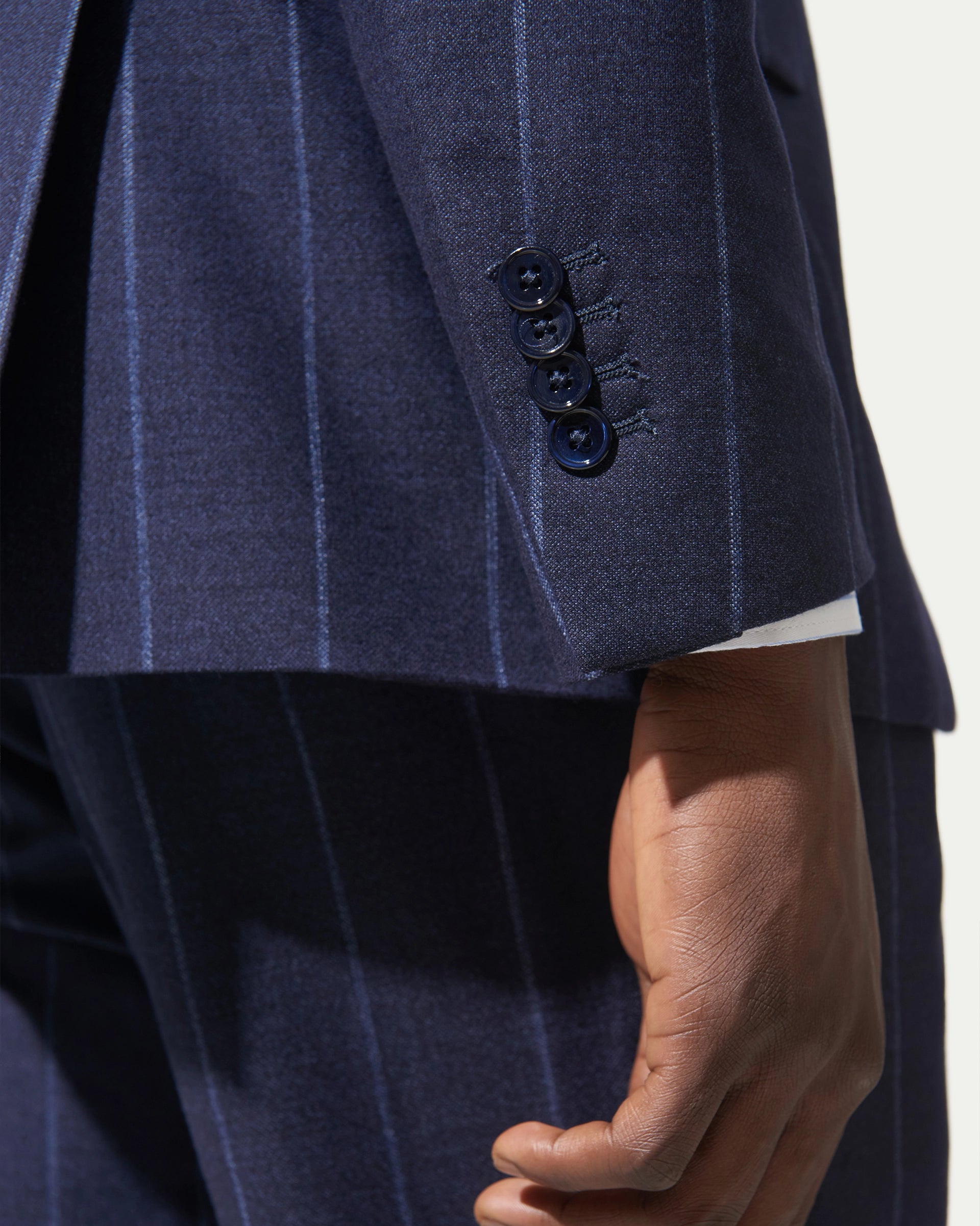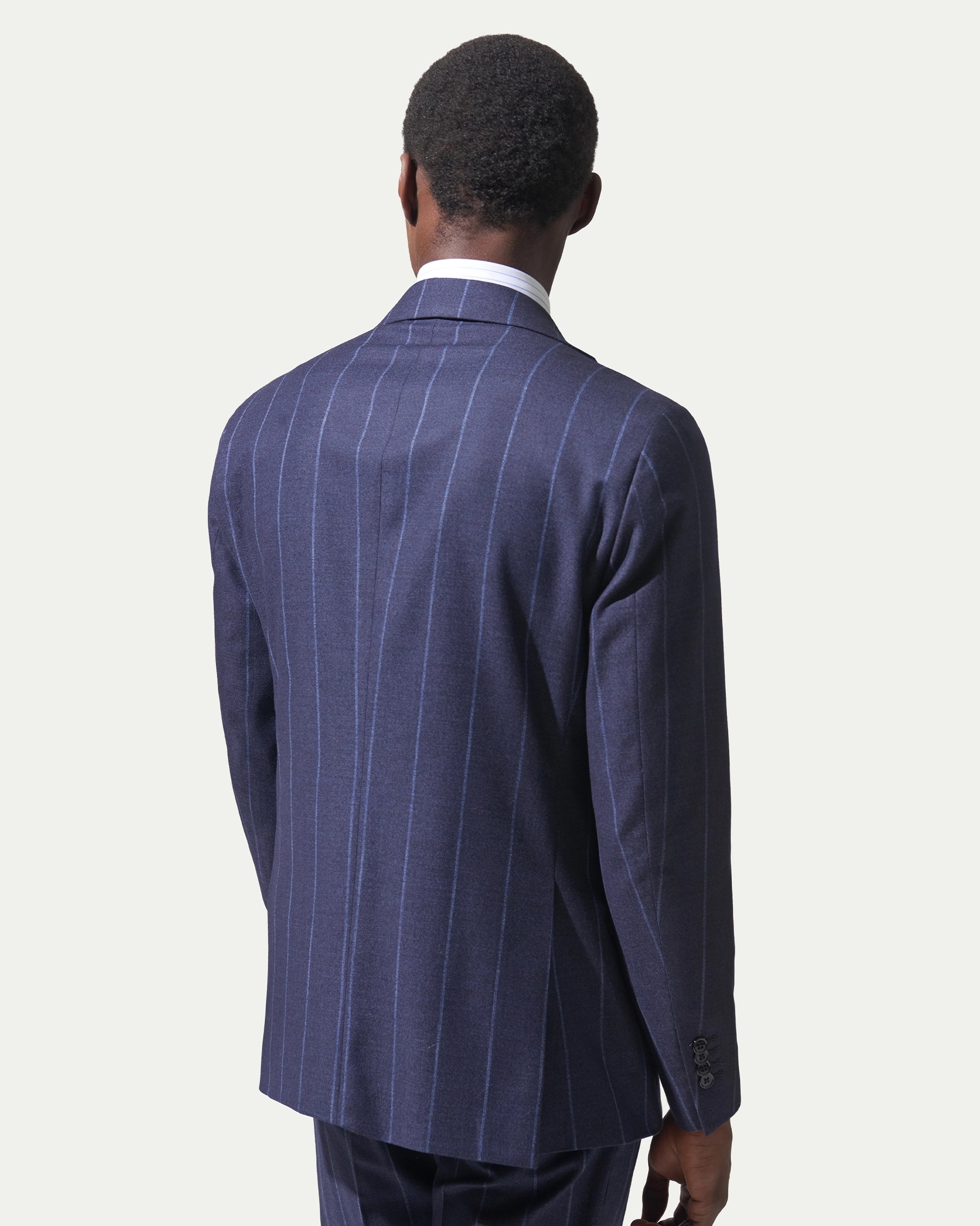 Blue pinstriped suit in wool and cotton fabric by Vitale Barberis & Canonico