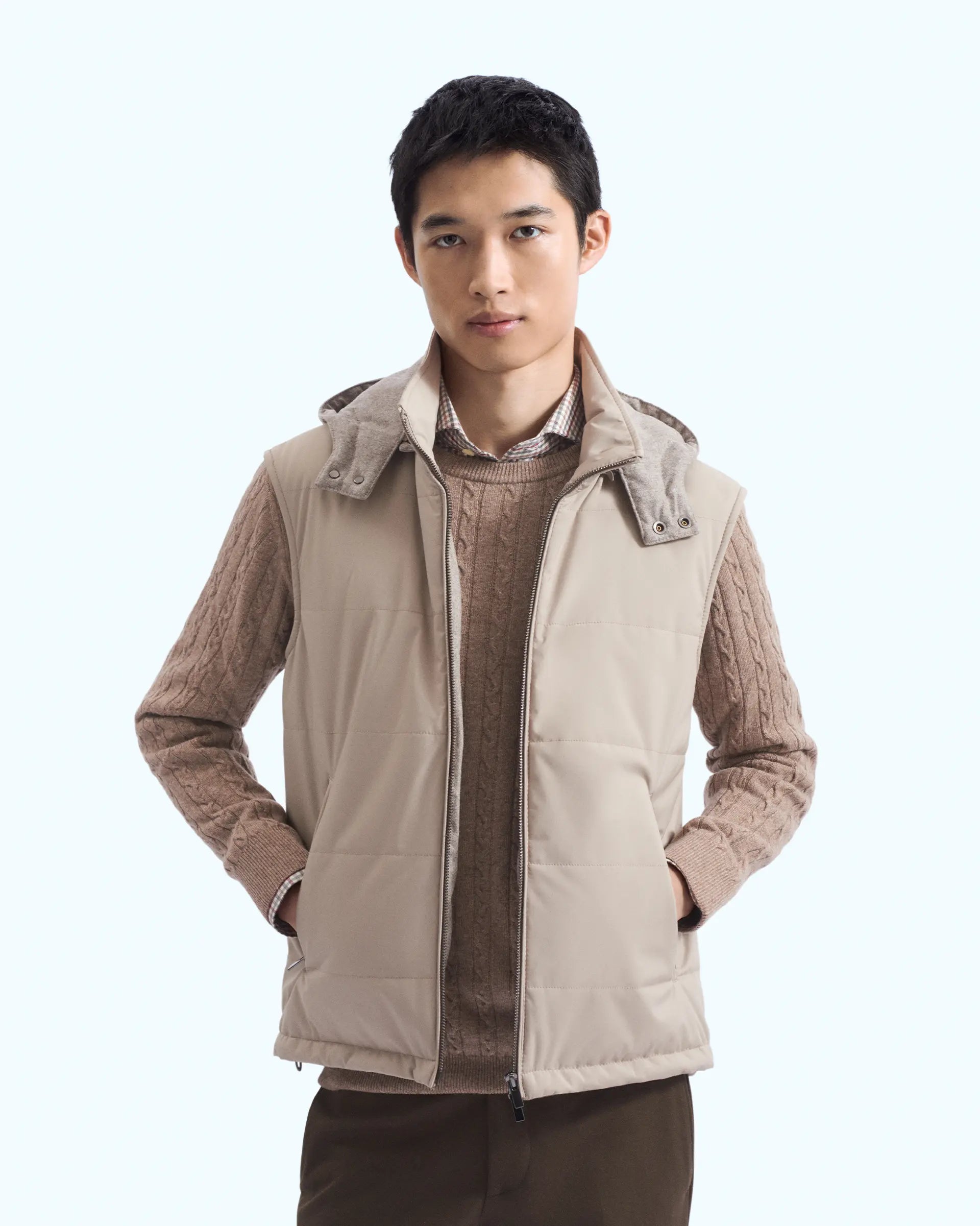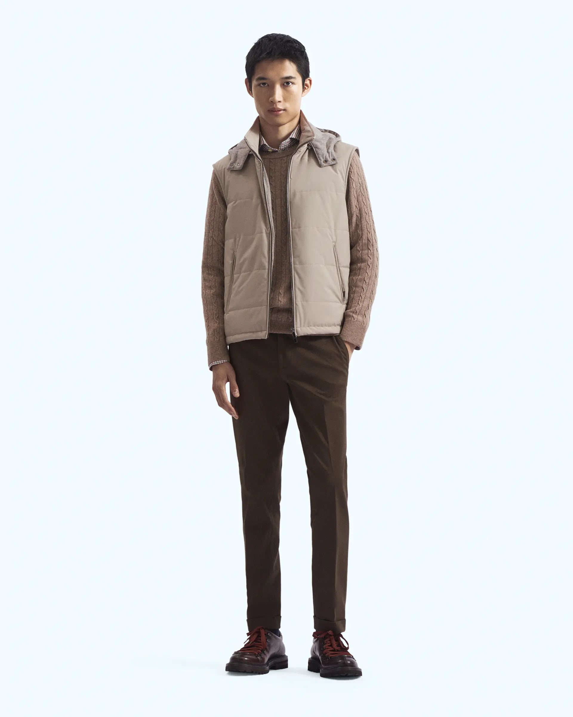 Capo outdoor impreziosito da un tessuto tecnico, innovativo e sostenibile di alta qualità traspirante e water repellent con fodera in lana. La texture compatta dal gusto classico e sartoriale si rinnova grazie alle linee sportive e confortevoli del capo. Si completa di dettagli ricercati come la zip a doppio cursore, tasche oblique con zip a scomparsa e il cappuccio staccabile. Perfetto per creare raffinate sovrapposizioni con maglieria e giacche.