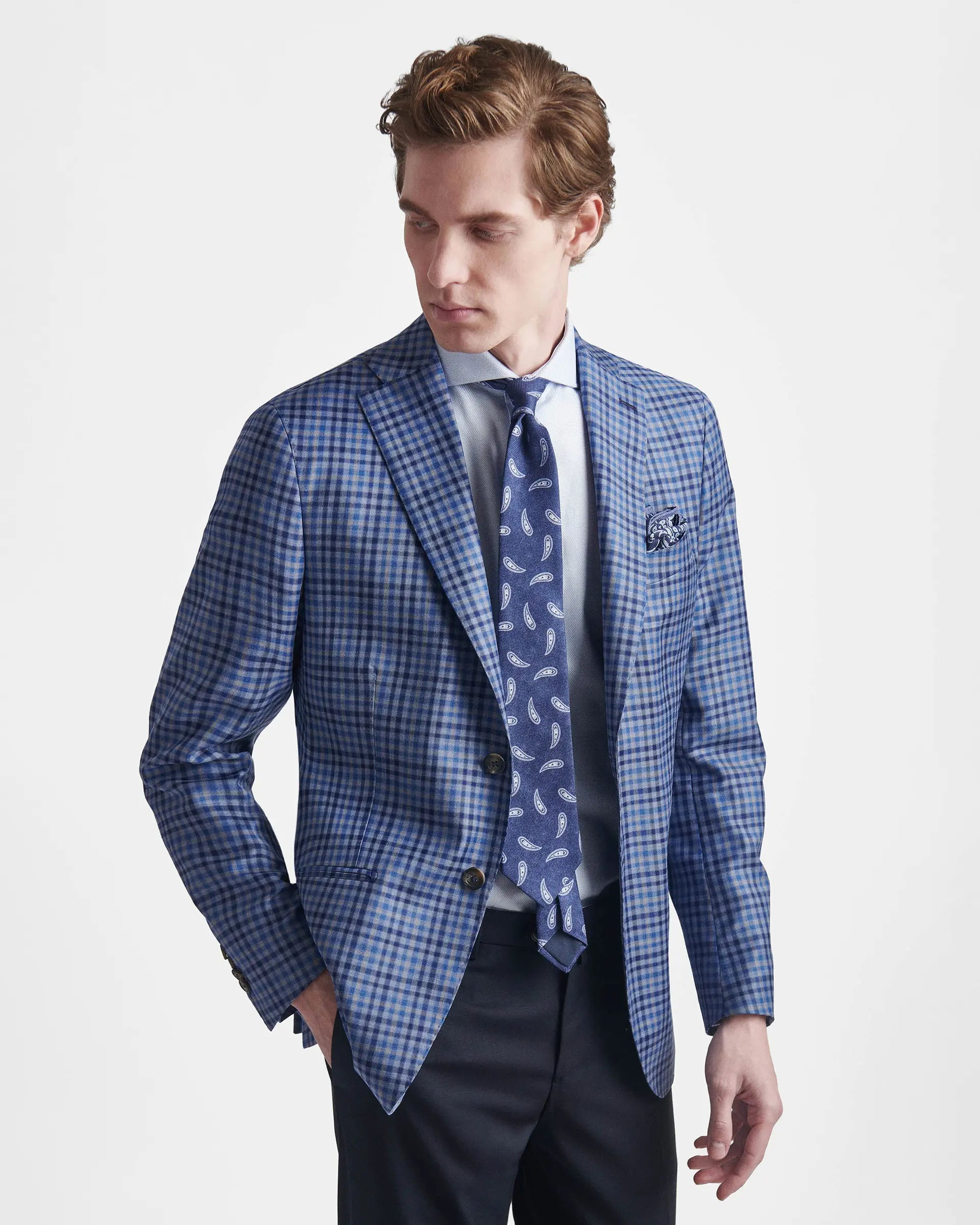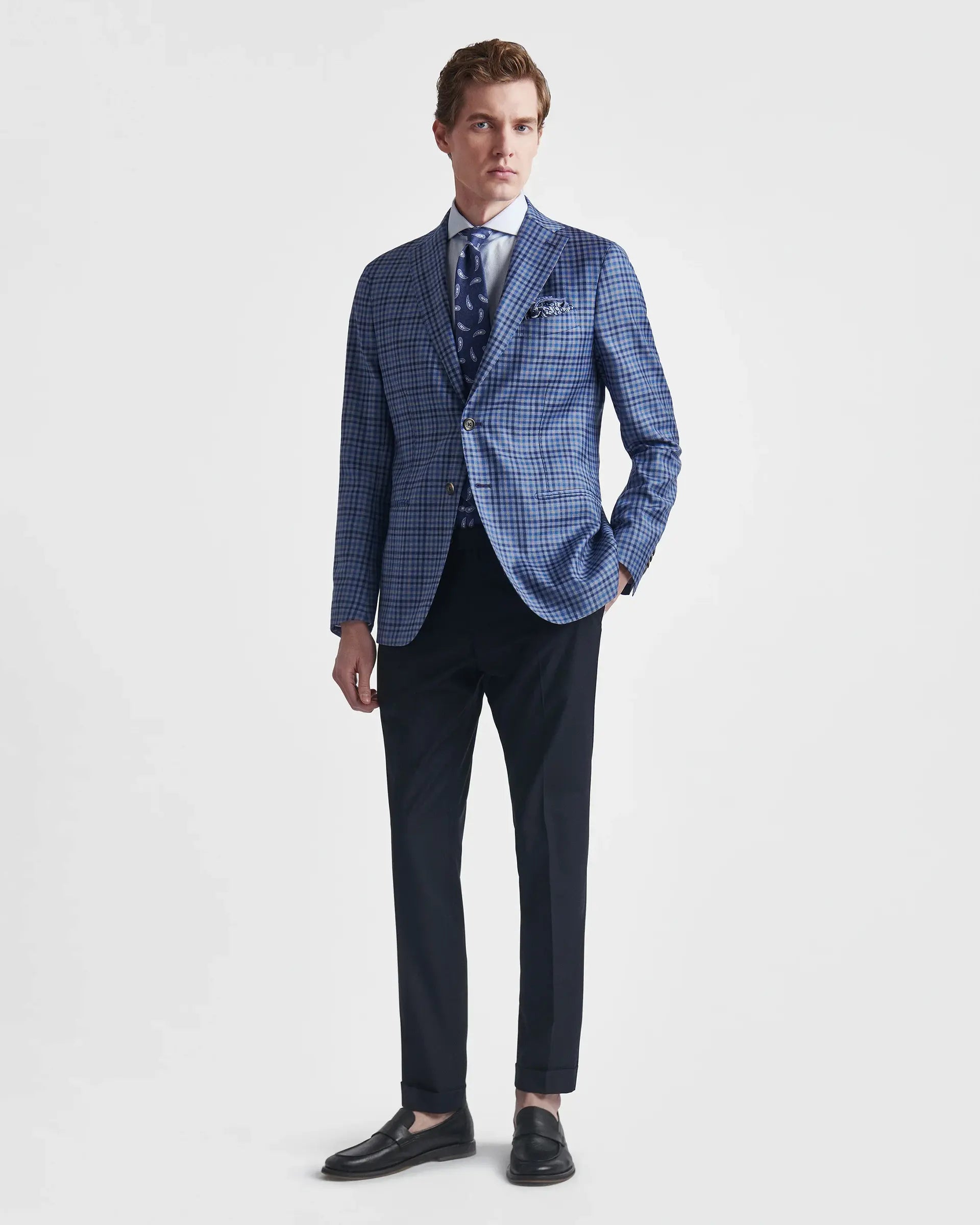 Il gusto moderno della fantasia a quadri declinato nelle cromie di stagione esalta la linea classica della giacca destrutturata caratterizzata da una vestibilità contemporanea e confortevole. Una scelta versatile e ricercata per i tuoi outfit business ed informali.