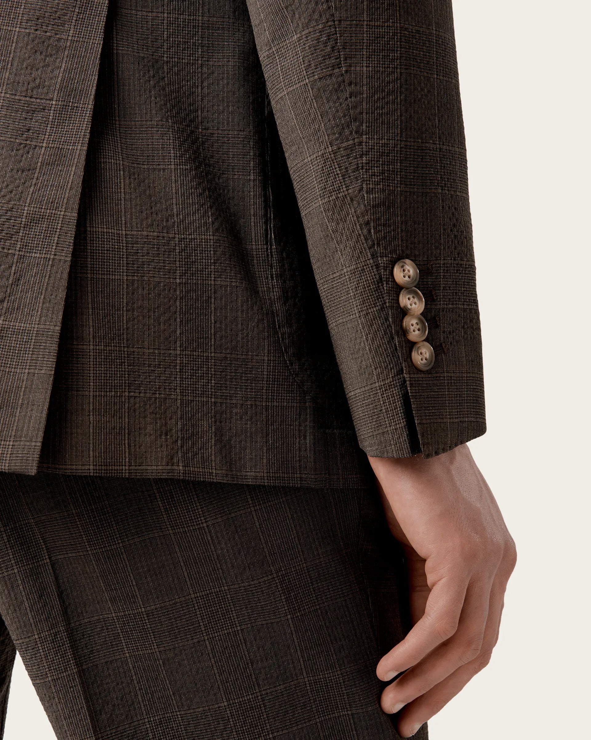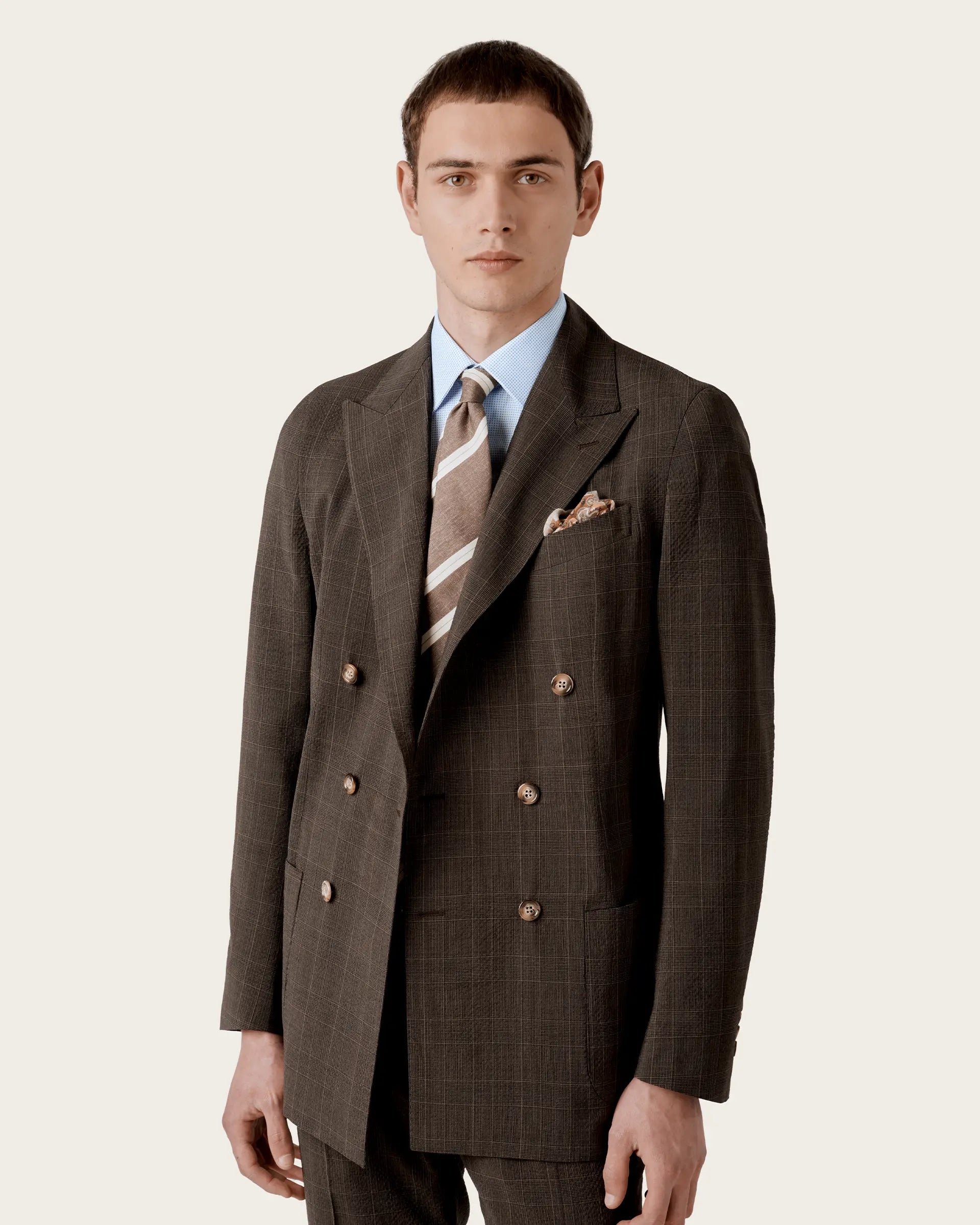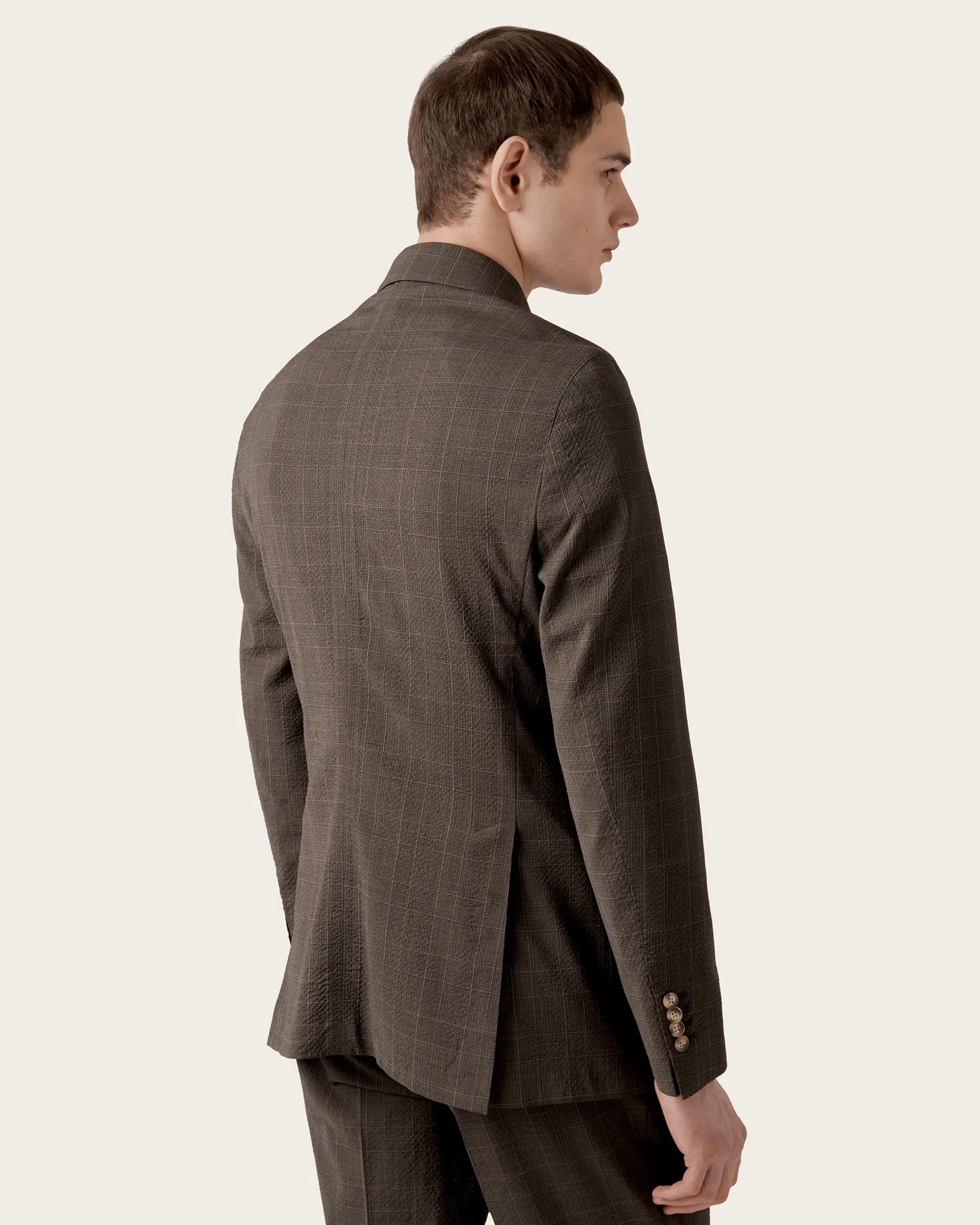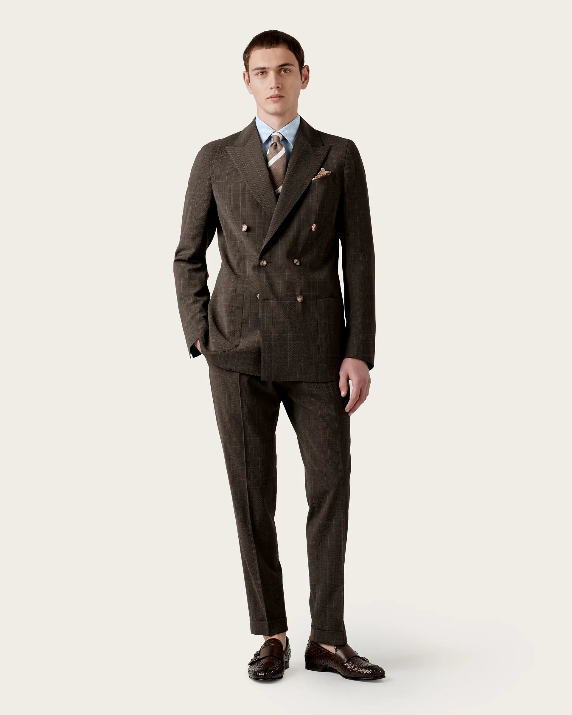 Giacca doppiopetto Principe di Galles marrone in lana stretch del lanificio Zignone