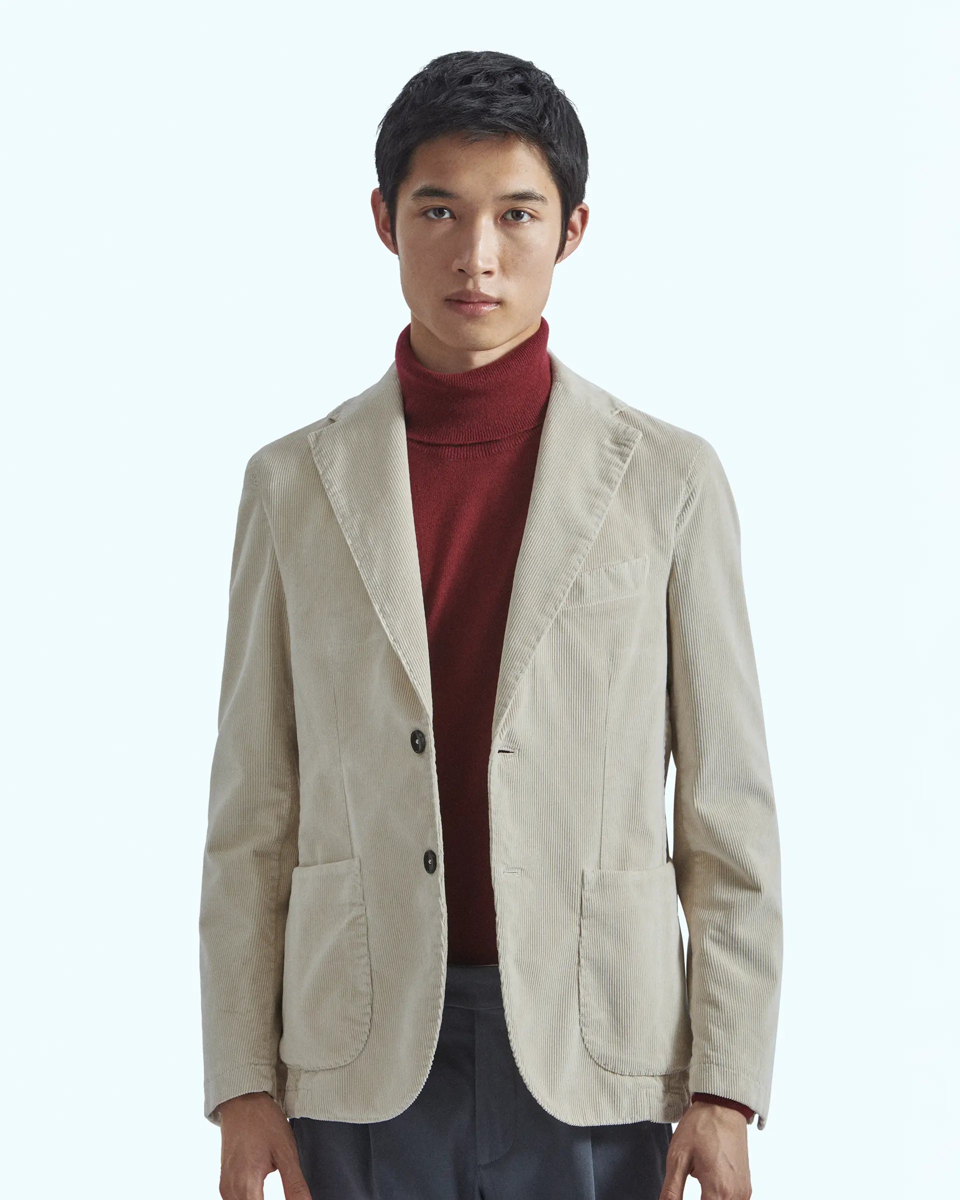 Giacca panna In velluto 1000 righe in cotone e tencel stretch