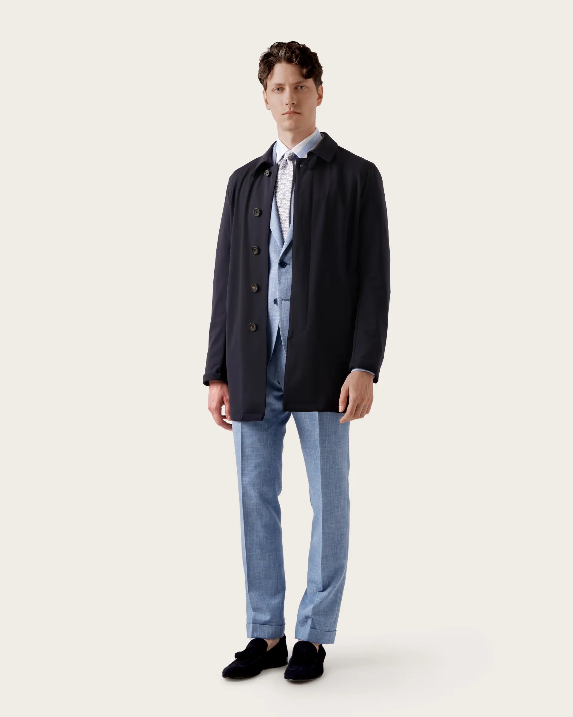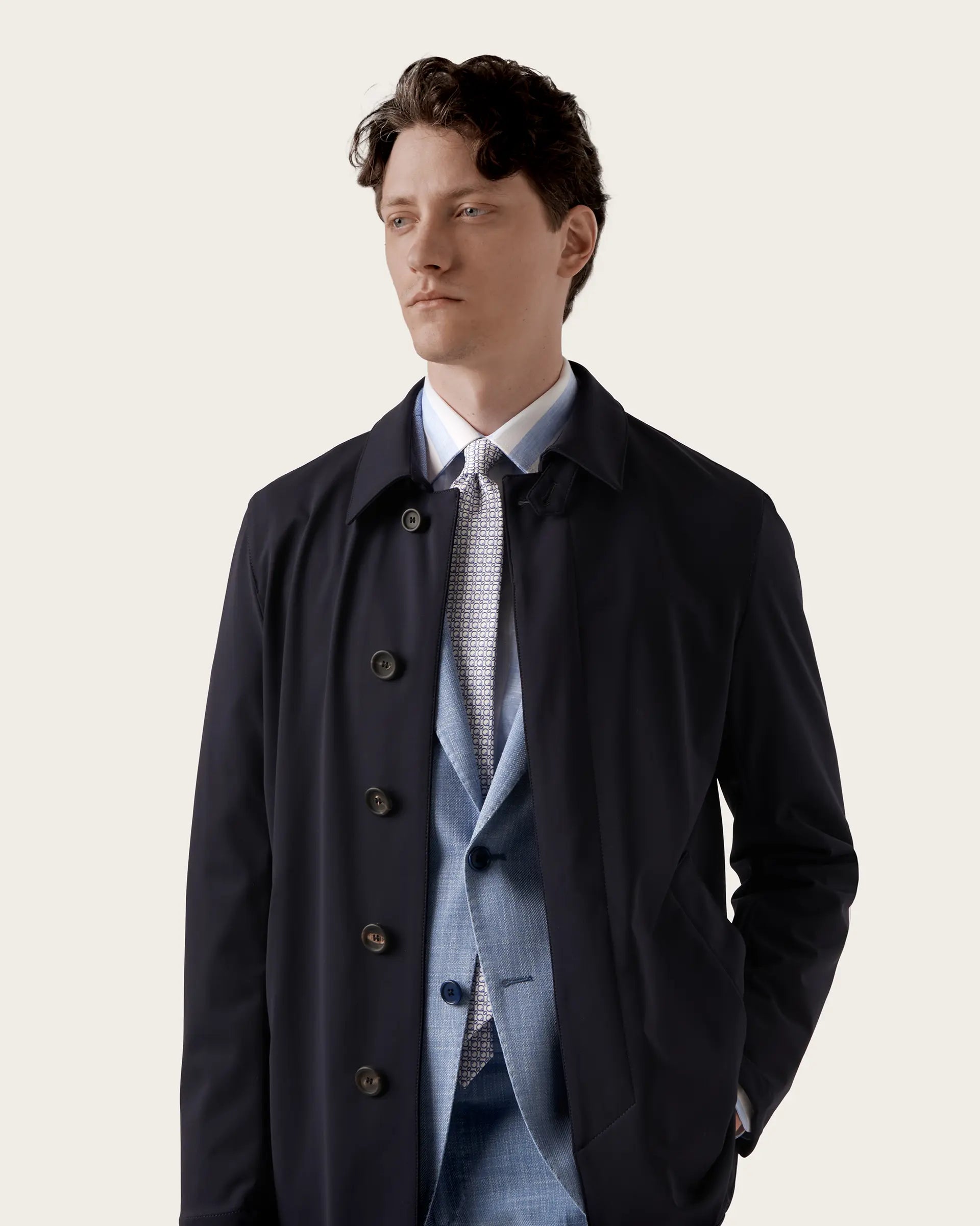 Impermeabile caratterizzato da uno stile versatile e raffinato, perfetto connubio tra eleganza, stile e confort. Si indossa con giacca oppure con un look casual per aggiungere un tocco di classe. Tessuto traspirante isolante da pioggia e vento chiusura con bottoni a scomparsa. Un must have del cambio di stagione.