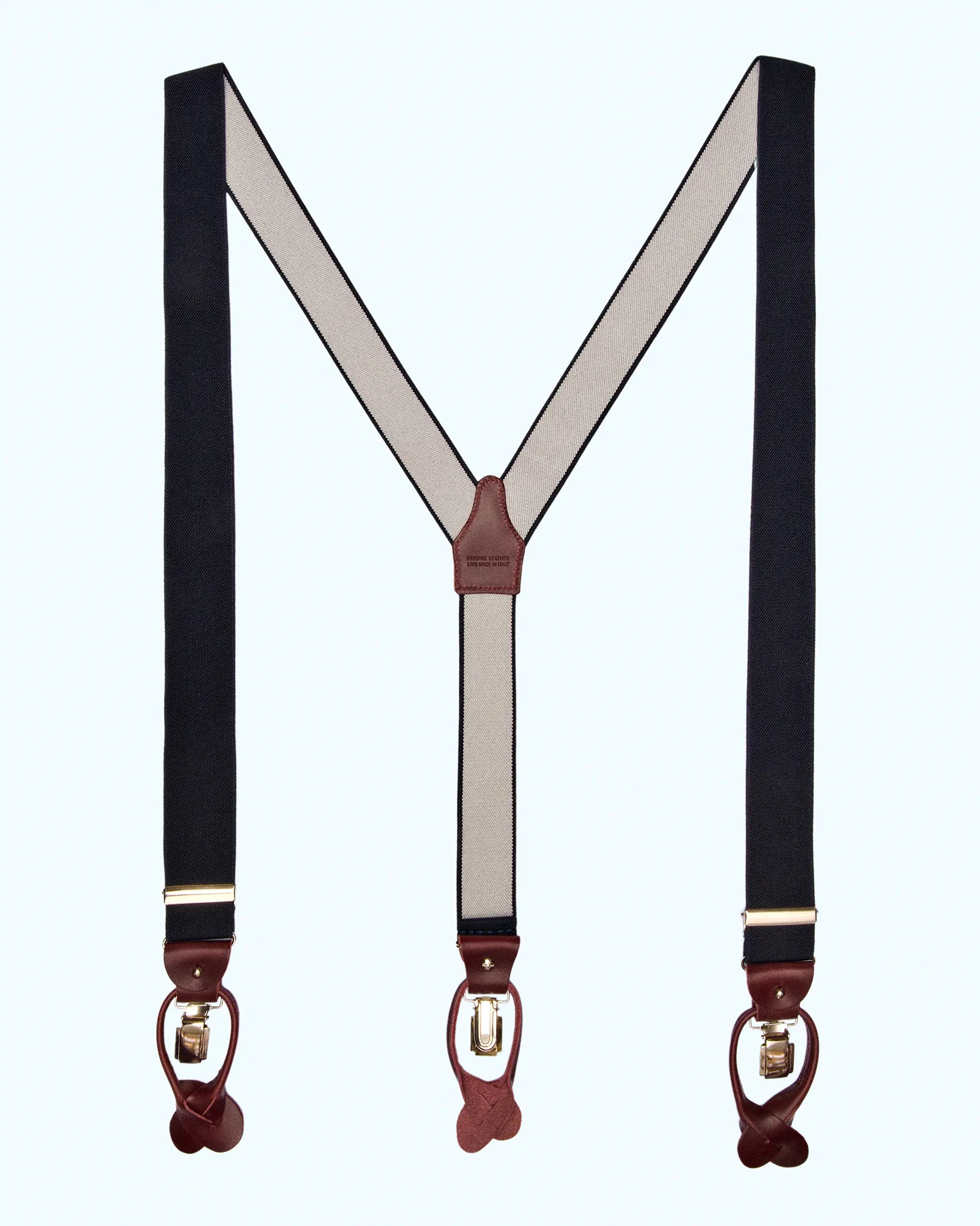 Accessorio di tradizione sartoriale, utile alternativa alla cintura, indossabile sia con l’attacco a clip che con i bottoni. Un modello senza tempo che dona al look maschile stile e personalità senza rinunciale alla comodità della spallina regolabile e dell’elastico.