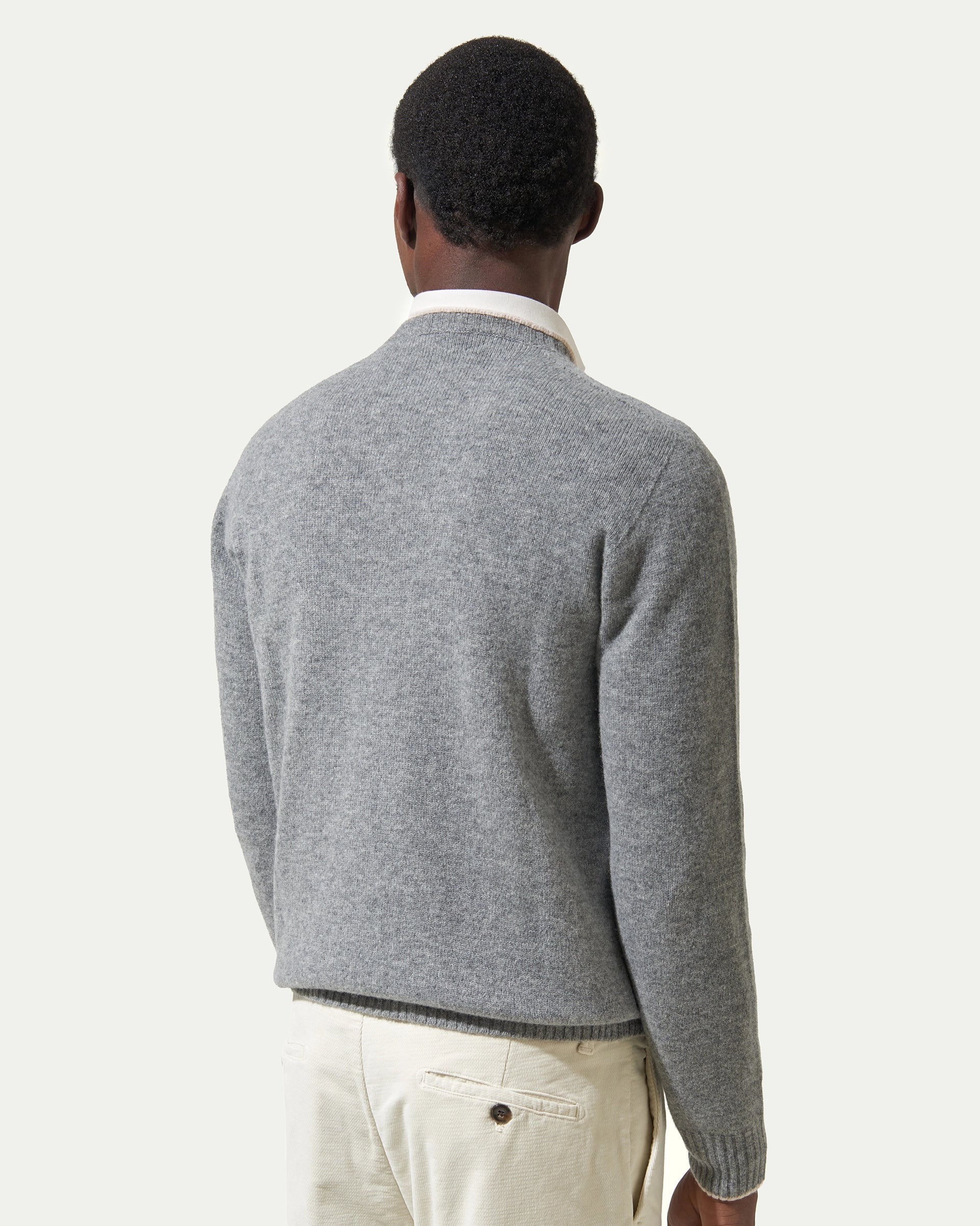 Girocollo profilato grigio finezza 7 in pura lana merinos extrafine