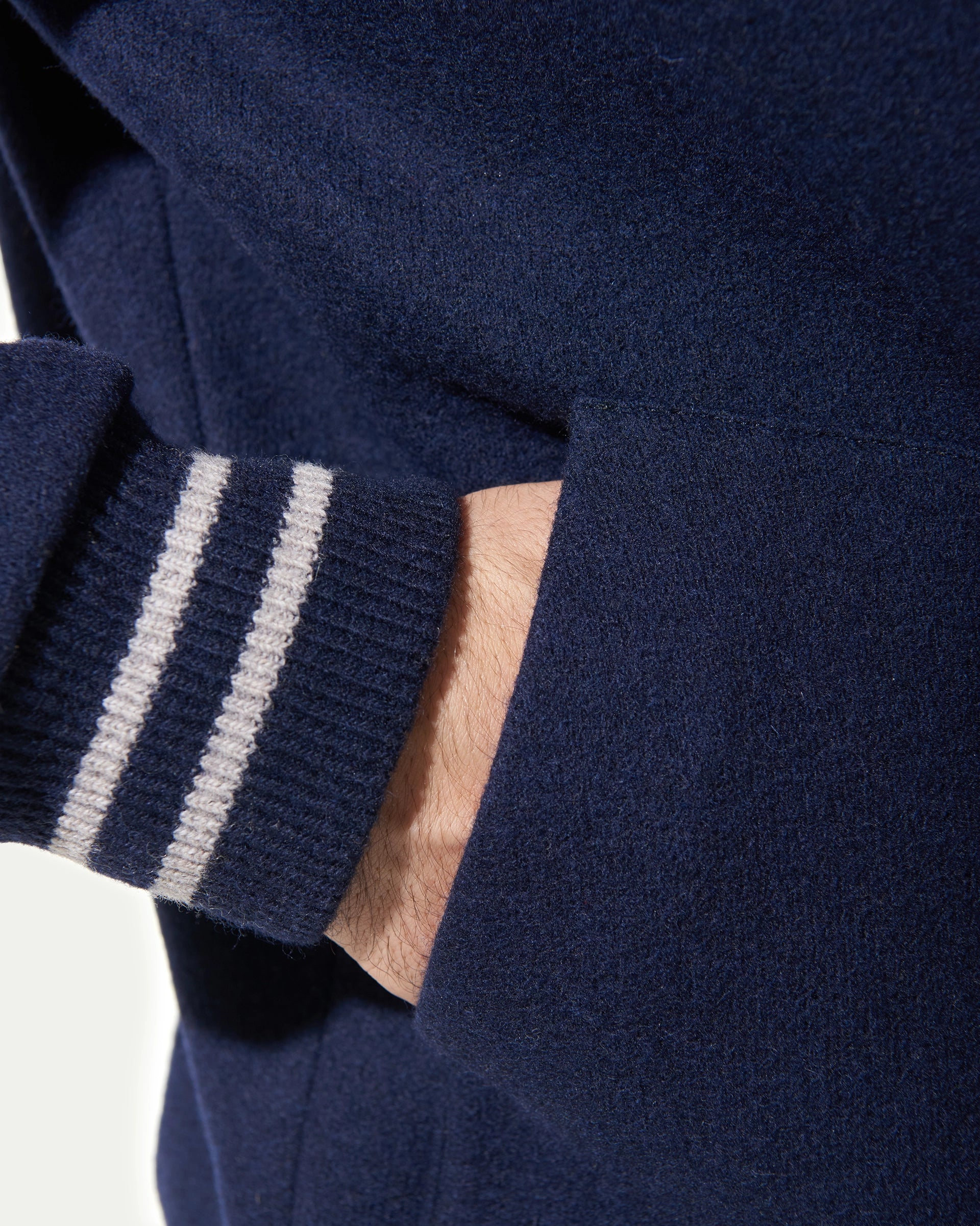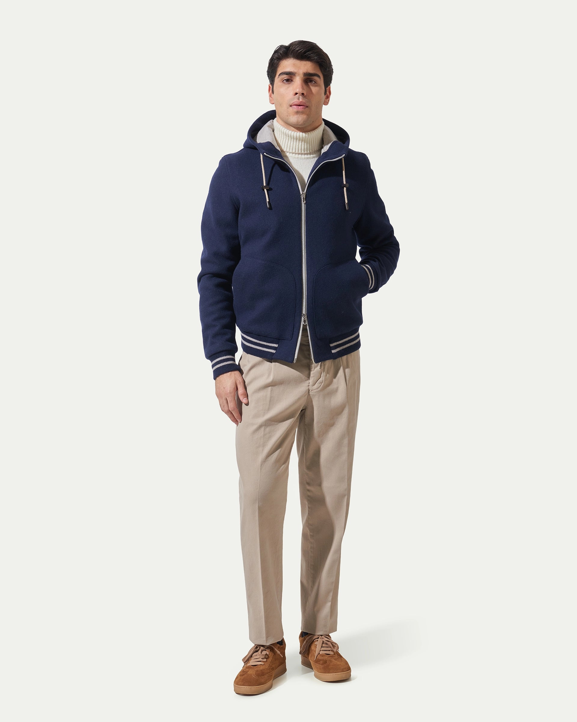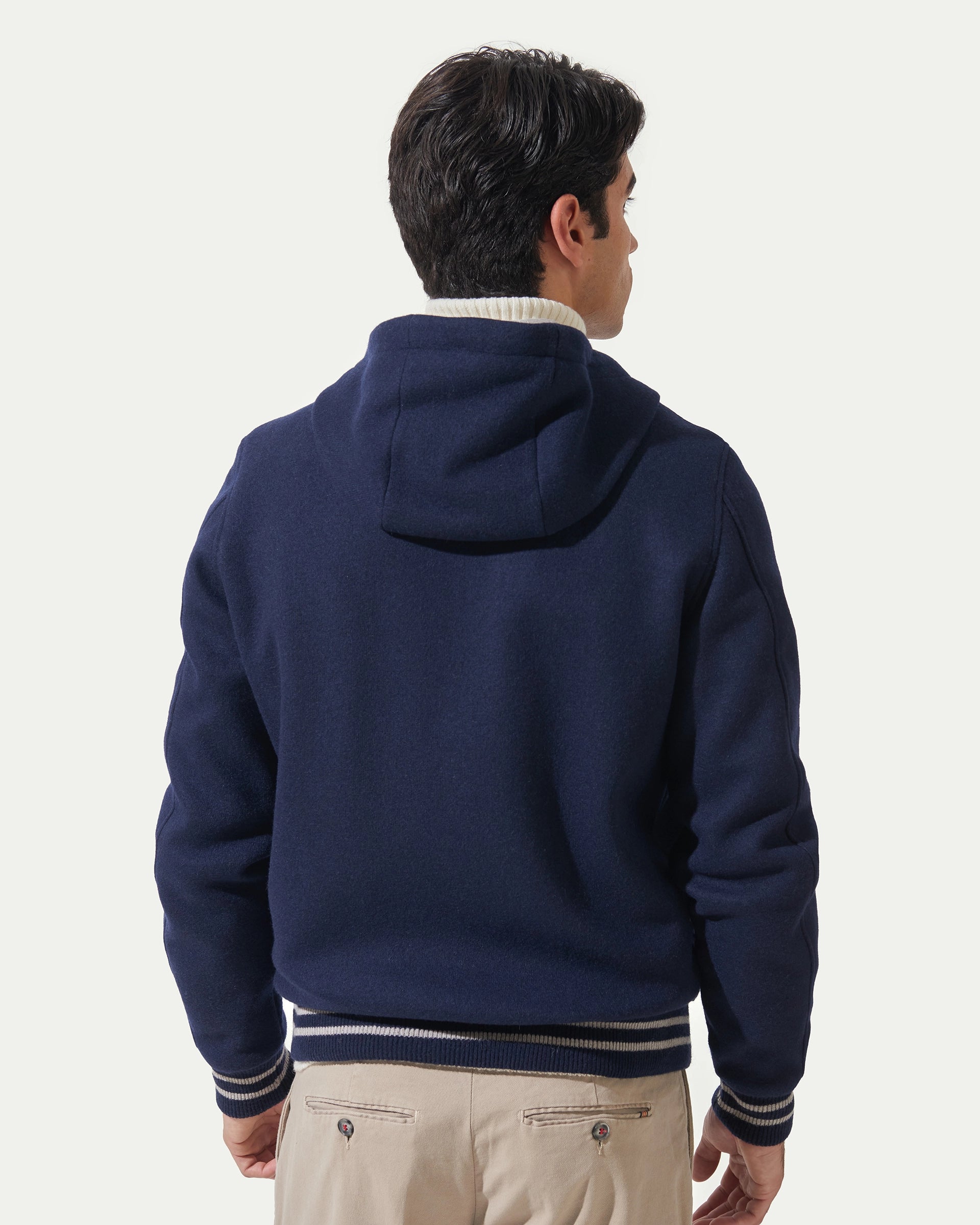 Bomber blu tipo felpa in lana stretch.