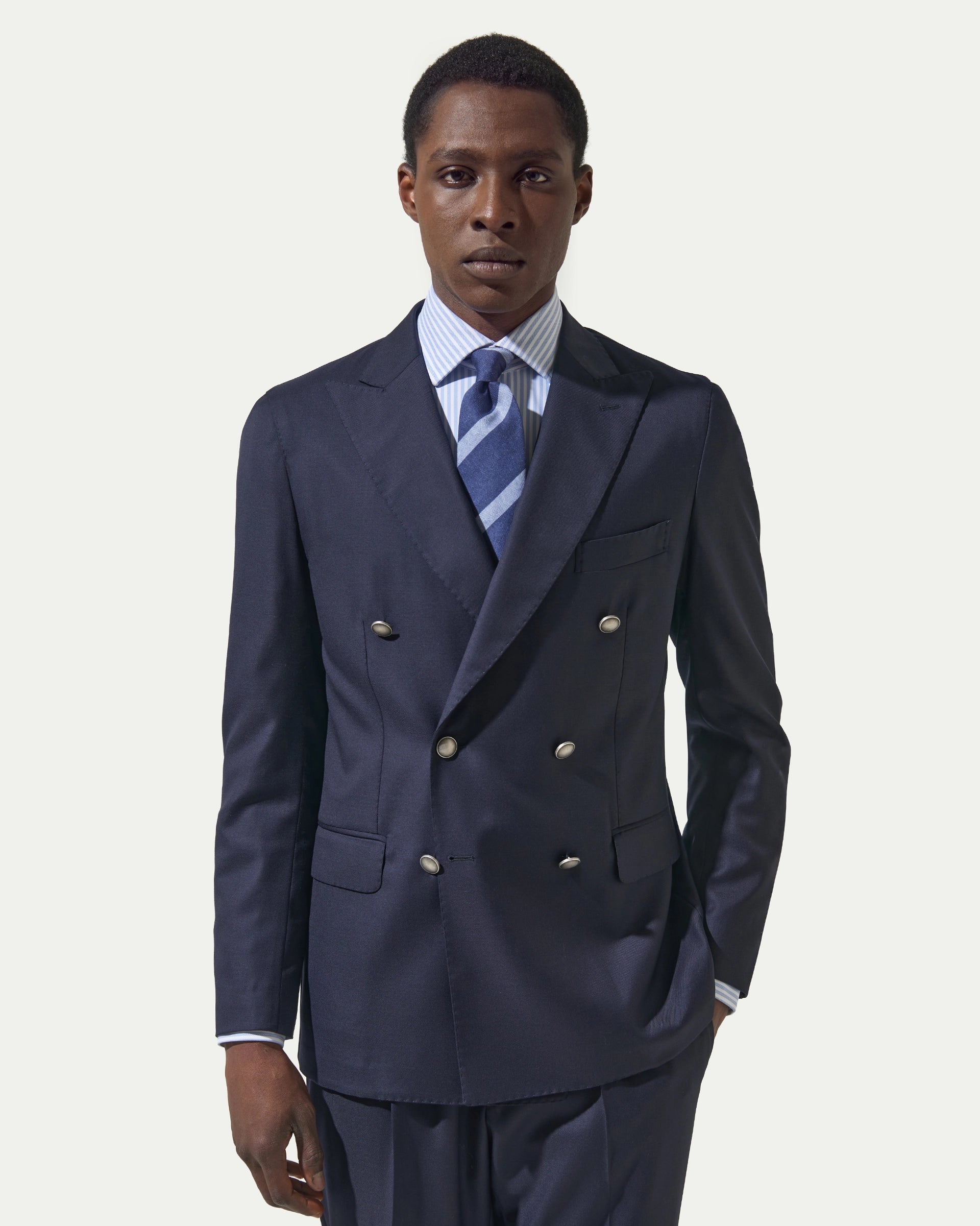 Abito Doppiopetto Blu in pura lana tessuto Loro Piana Zelander